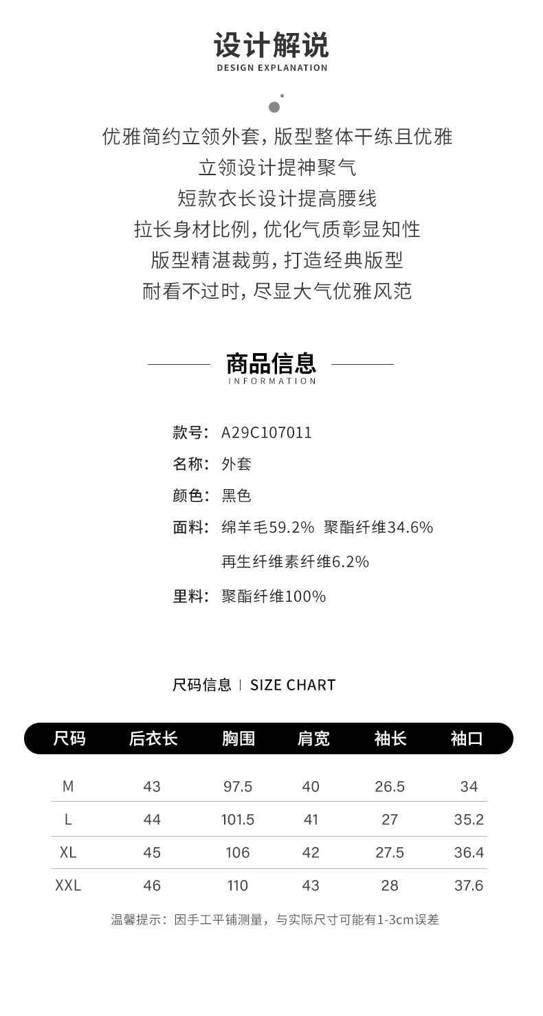 【商场同款】阿菁娜2024春季新款优雅简约立领外套A29C107011