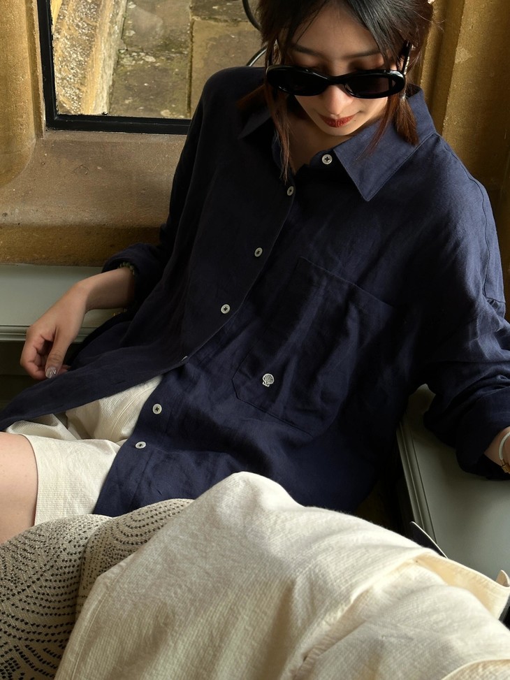 ✨早秋福利❗️百搭不厌❗️ 显瘦显薄💝【老钱风纯棉贝壳刺绣衬衫】 😎专柜同款售价💰1000+ 团购只要💰69 ✅面料100%新疆长绒棉!柔软舒适透气
