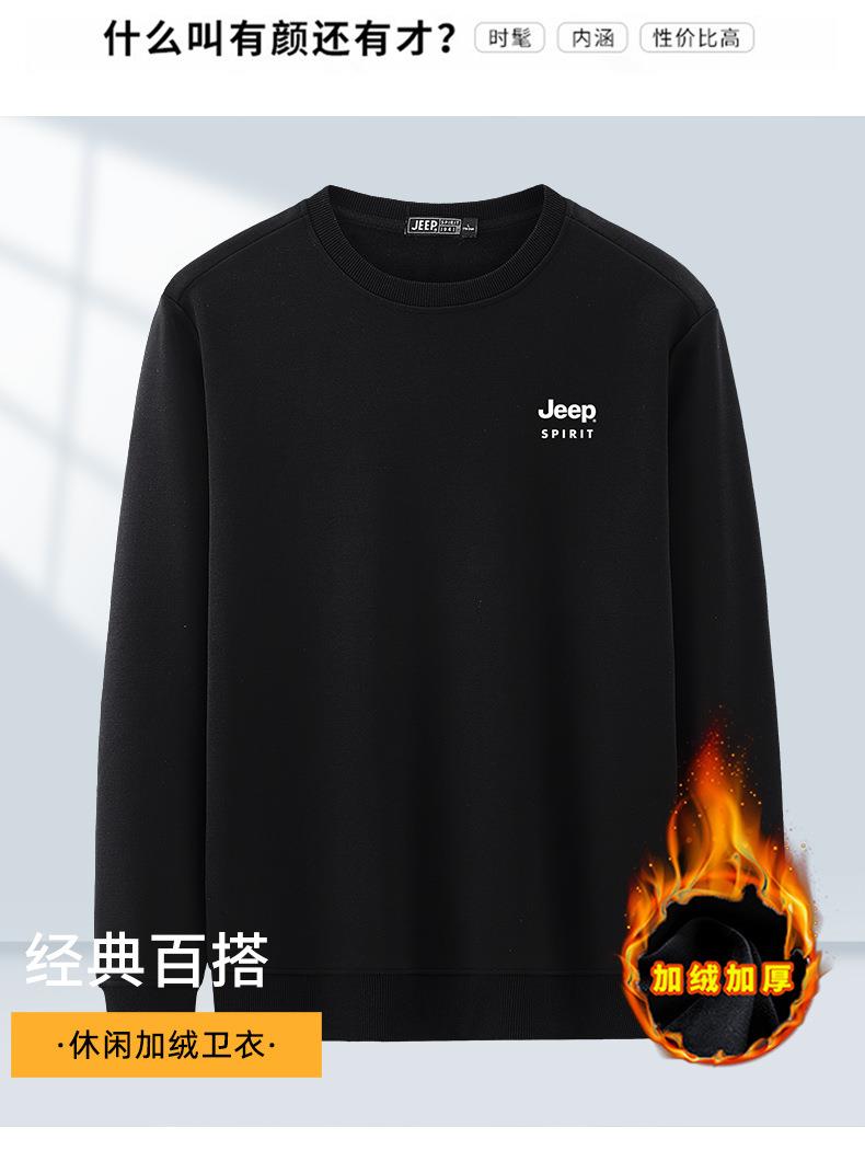 JEEP SPIRIT长袖卫衣男大码宽松加绒衣服潮流男装保暖外套HL6555B