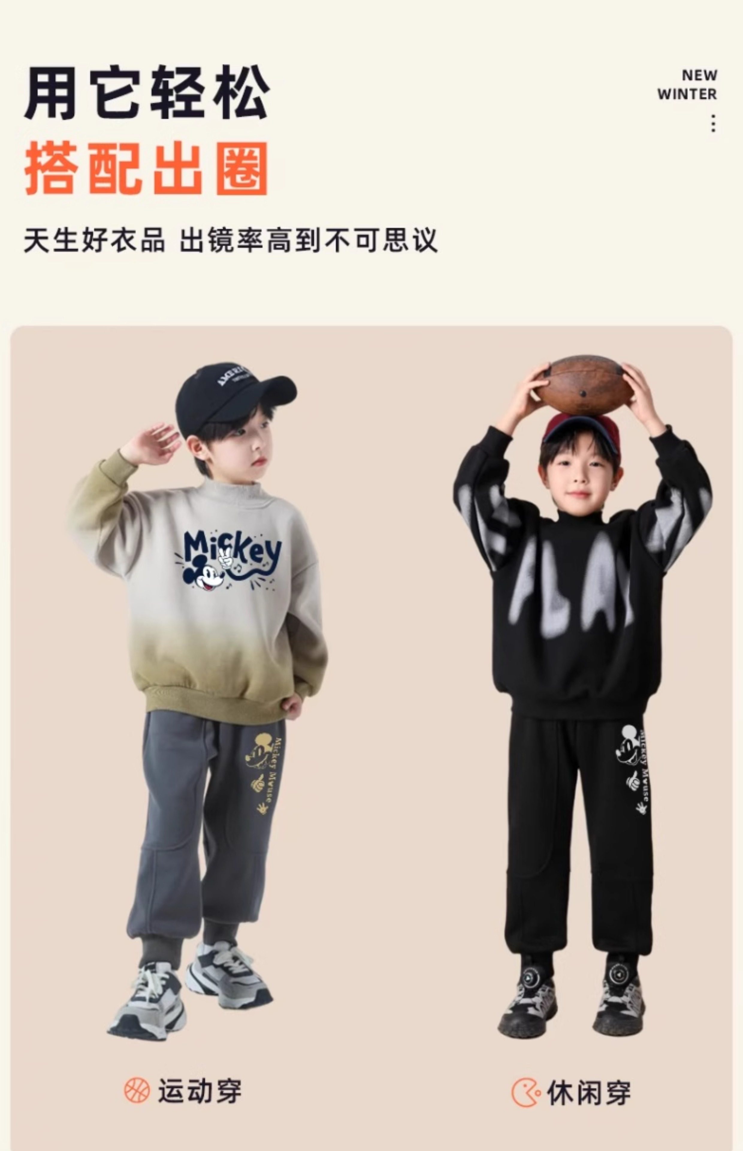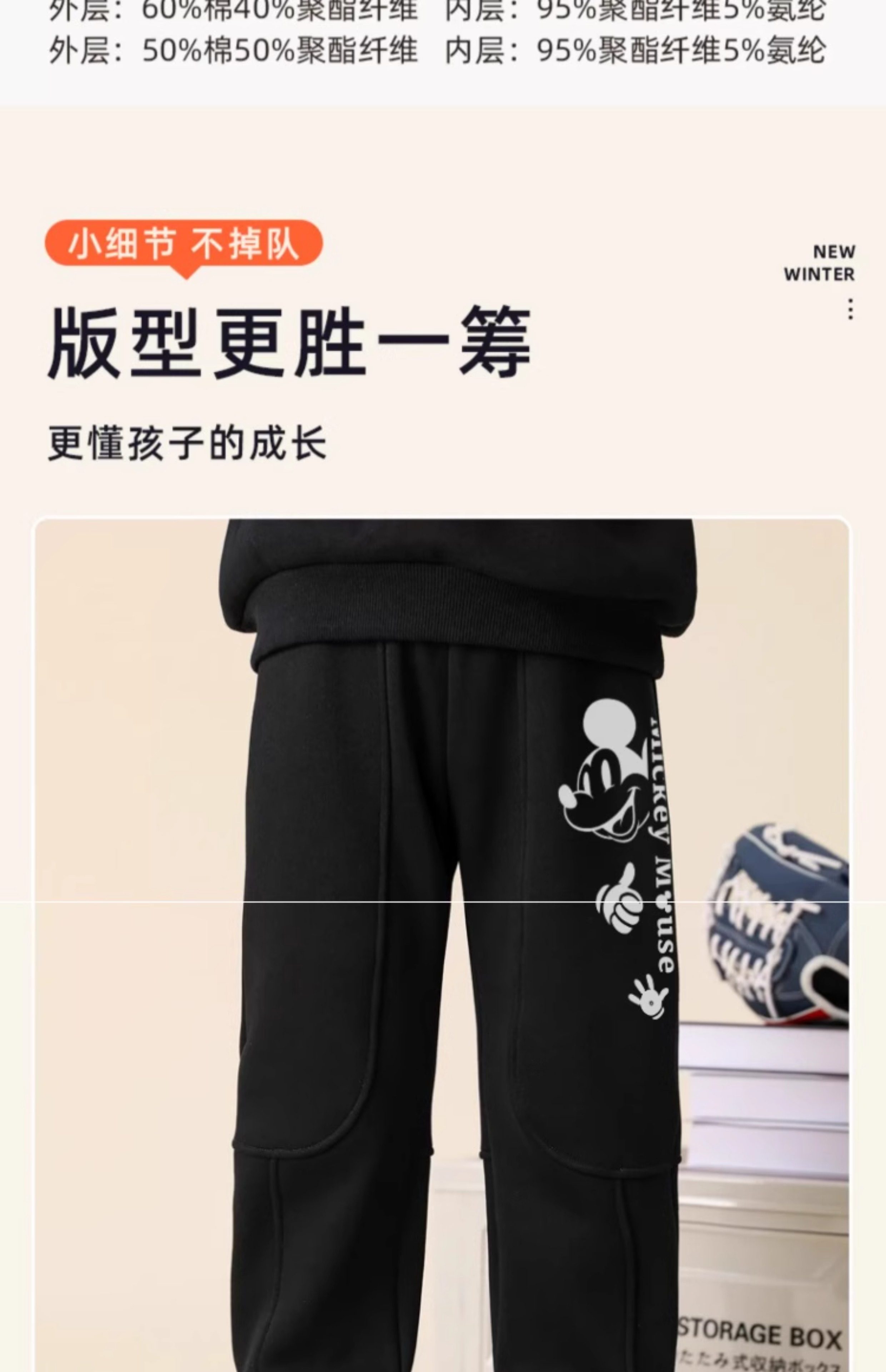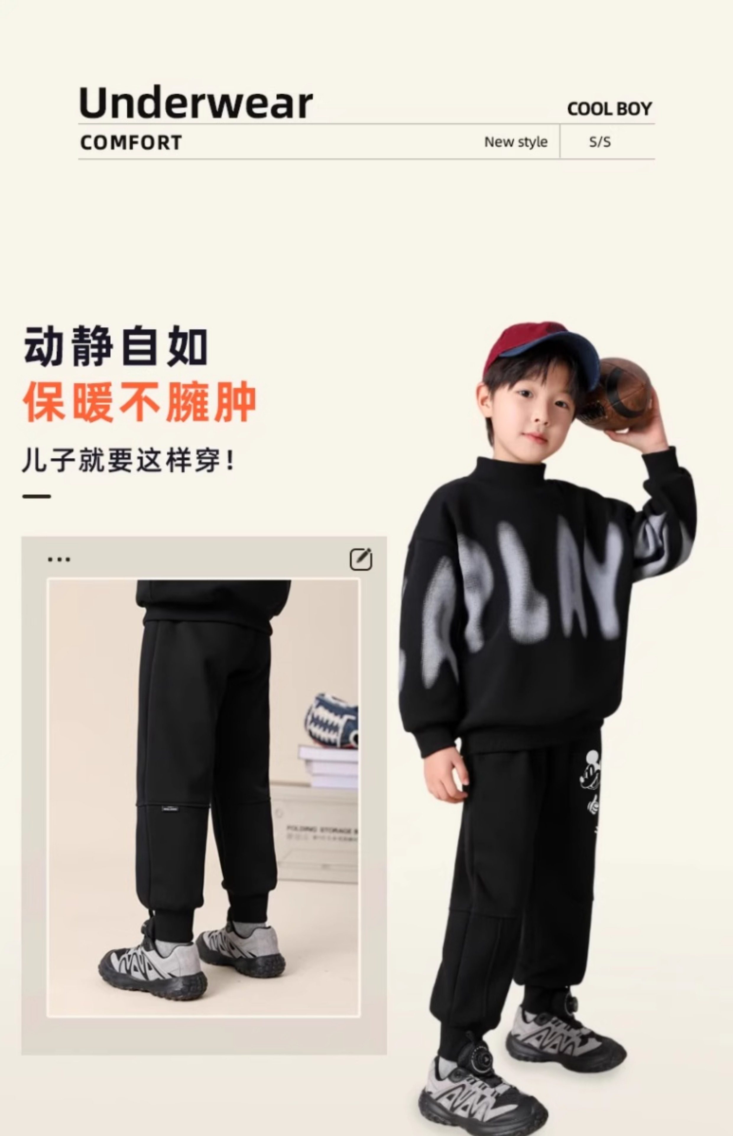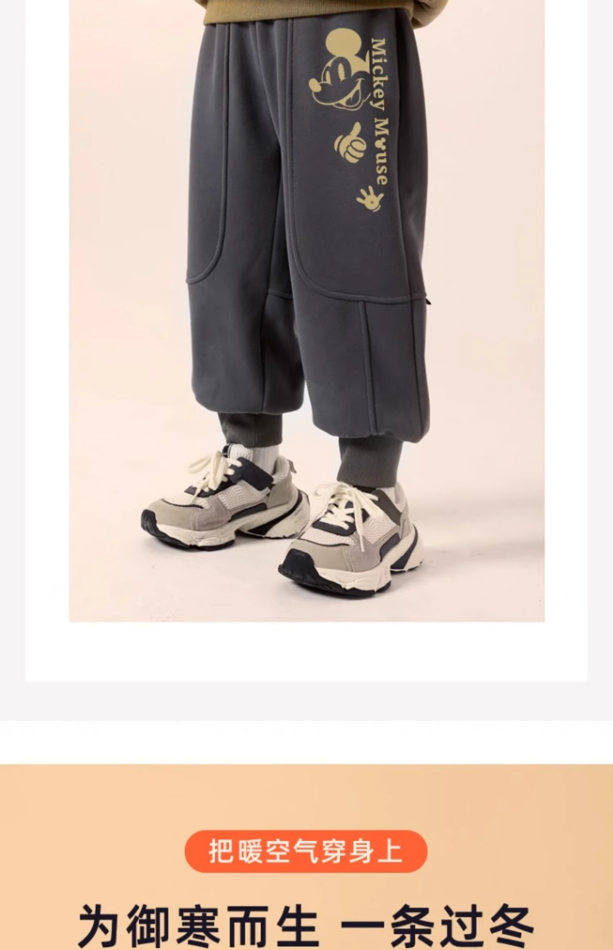 贝田2024新款冬季男童加绒裤子秋冬款儿童运动裤加厚男孩保暖卫裤
