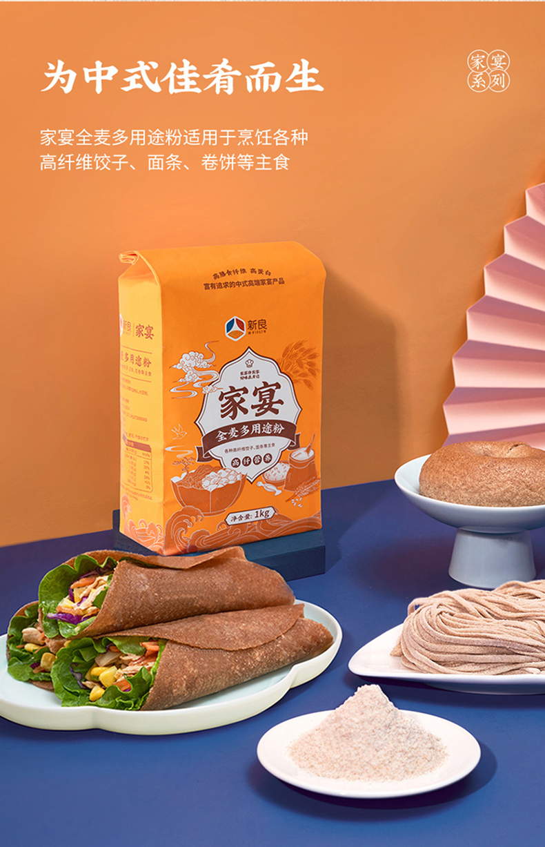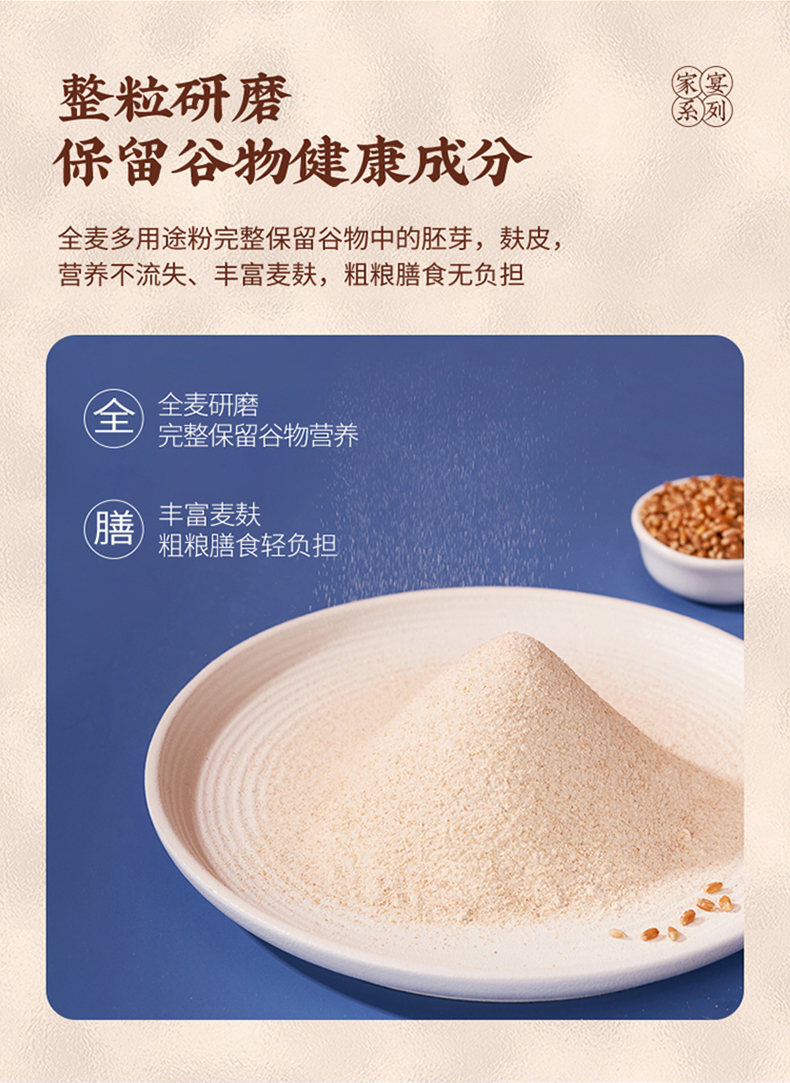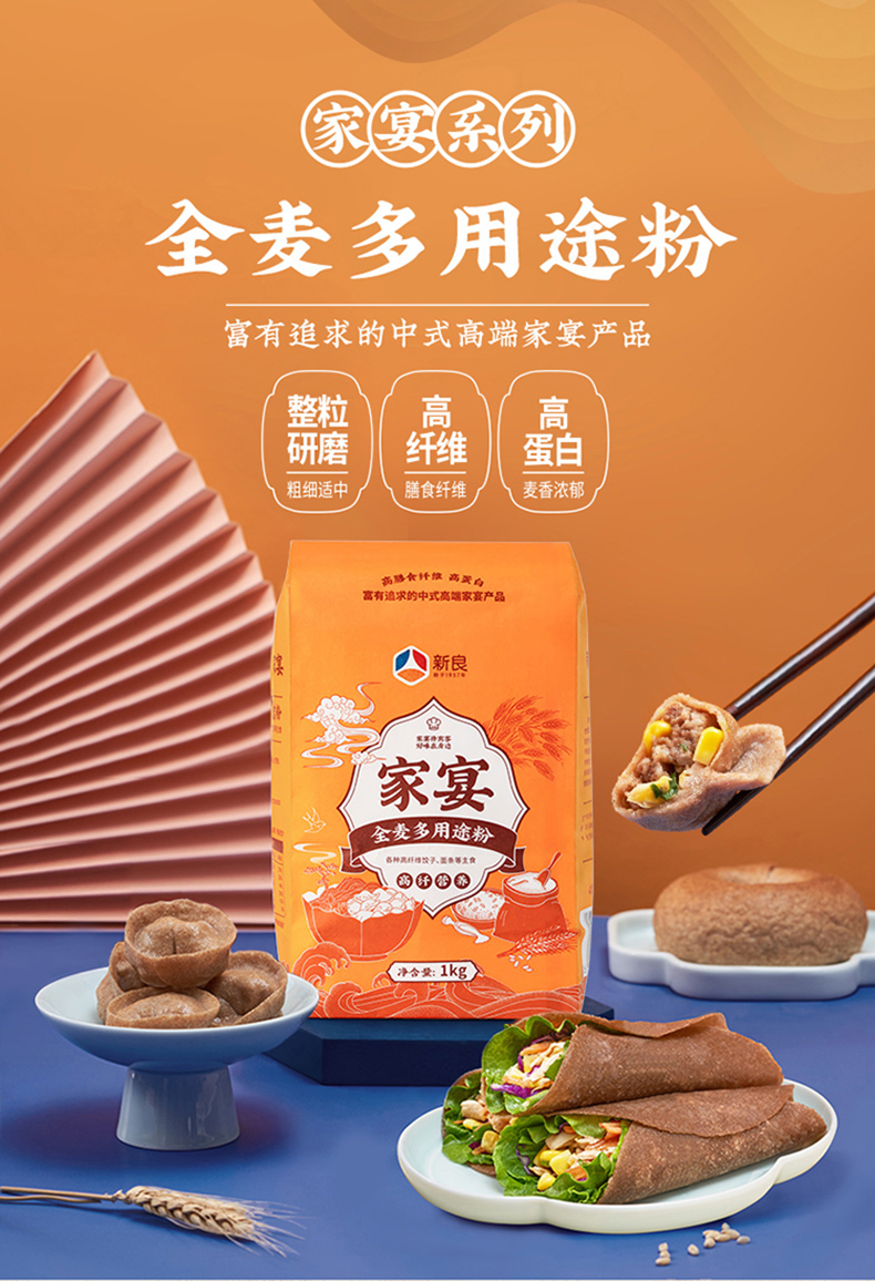 新良家宴全麦多用途小麦粉1kg杂粮馒头包子面条用全麦面粉含麦麸