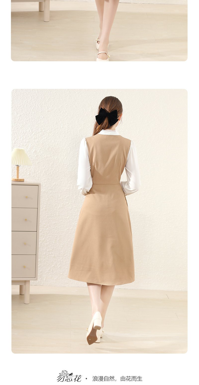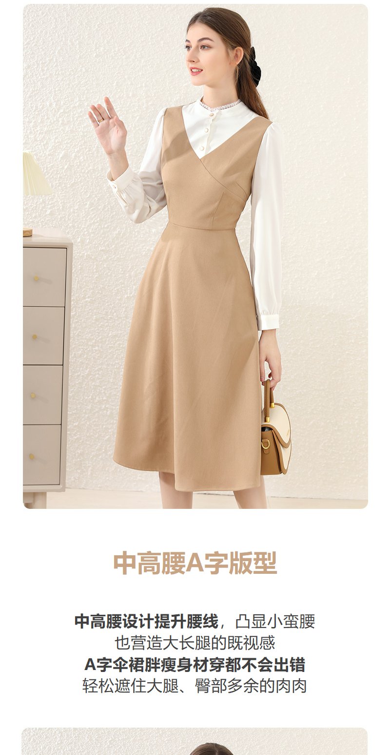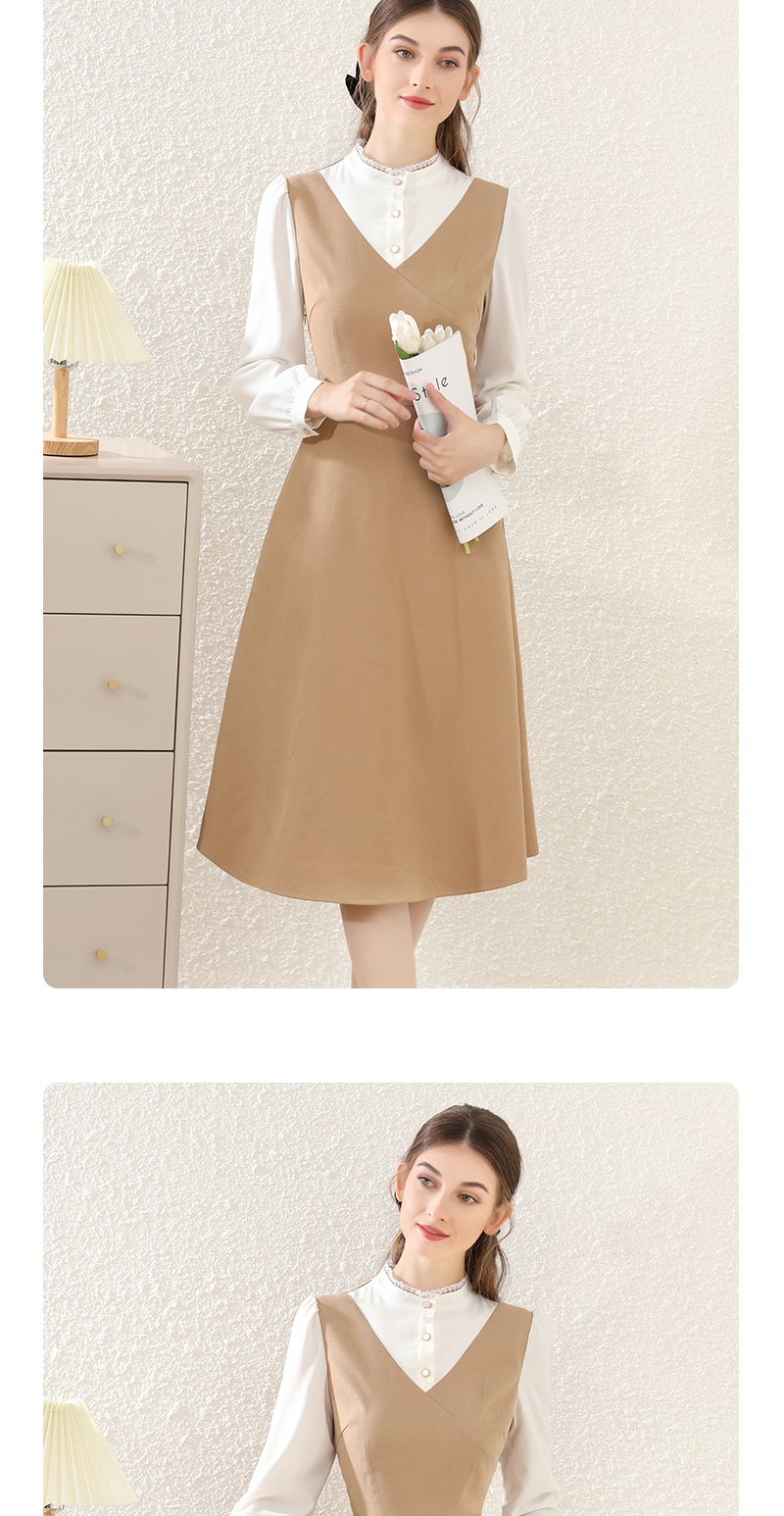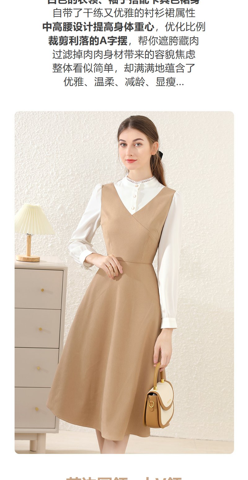 勿忘花卡其色法式减龄连衣裙女装2025春季新款背心裙气质打底裙子