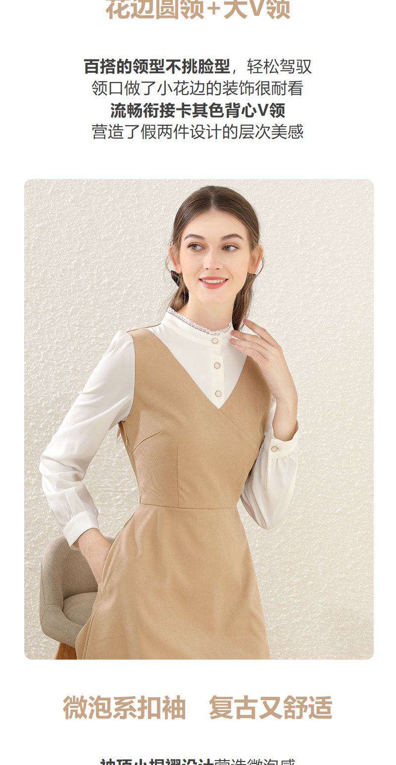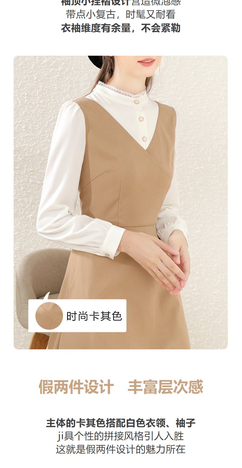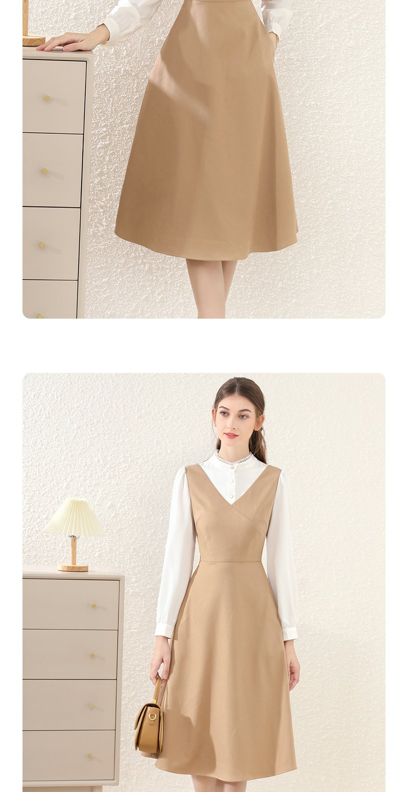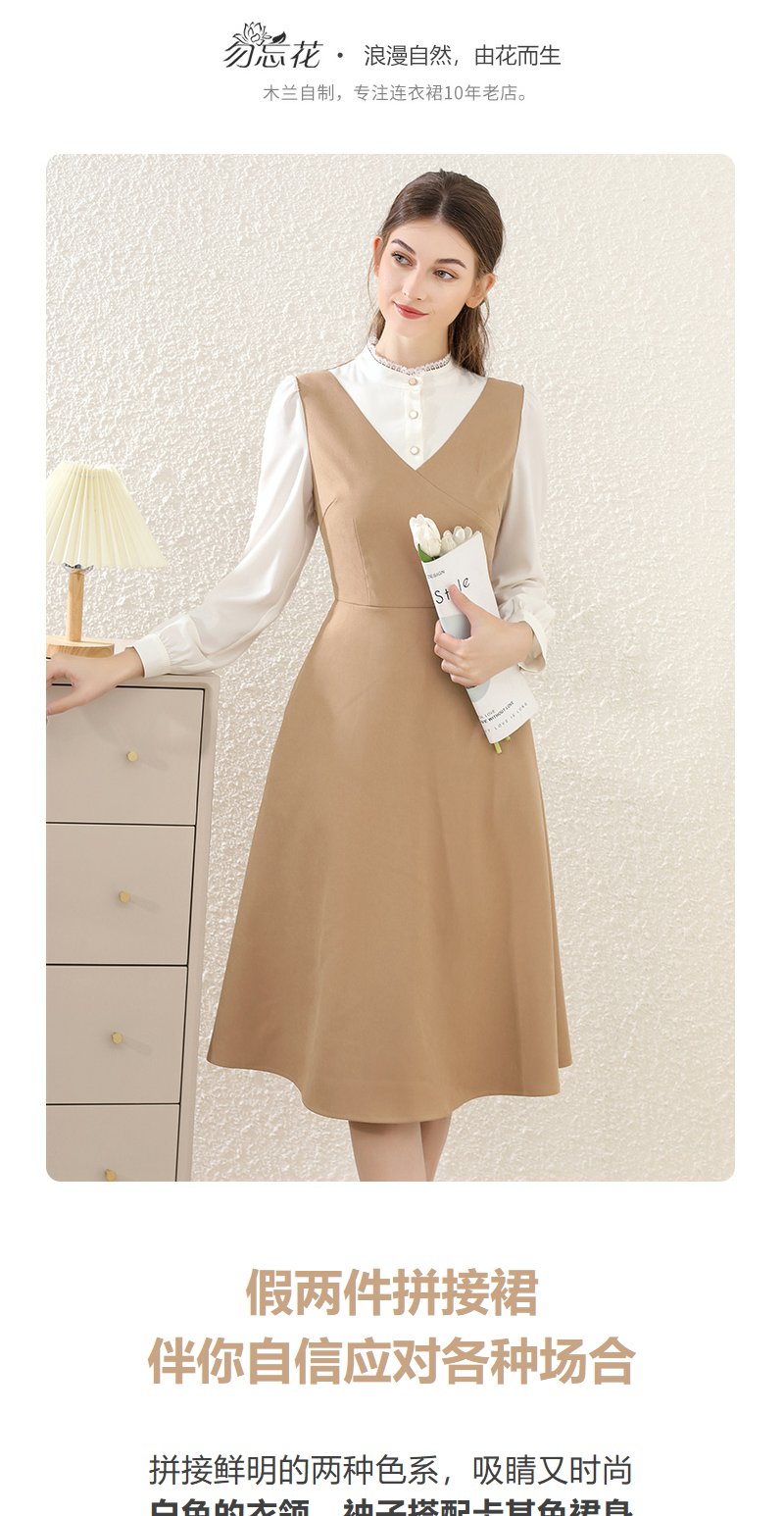 勿忘花卡其色法式减龄连衣裙女装2025春季新款背心裙气质打底裙子