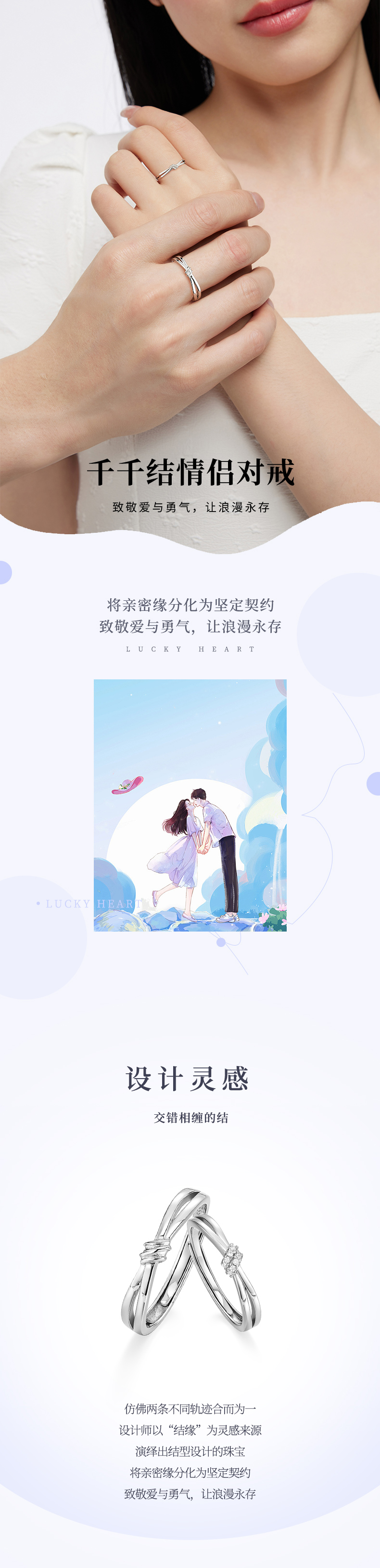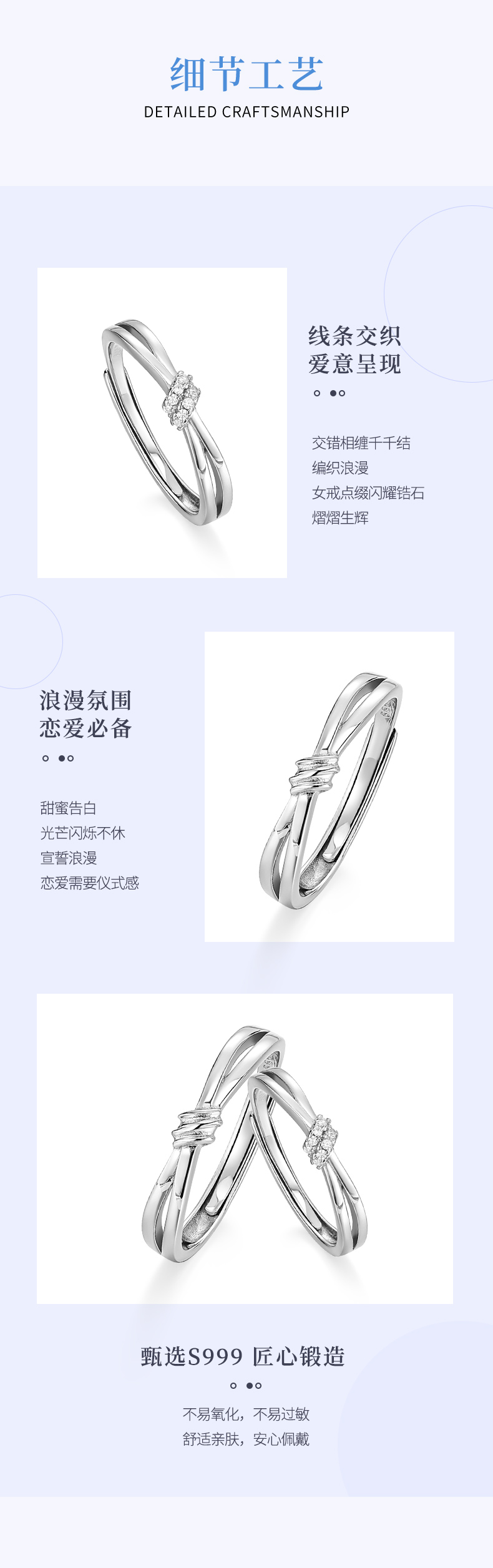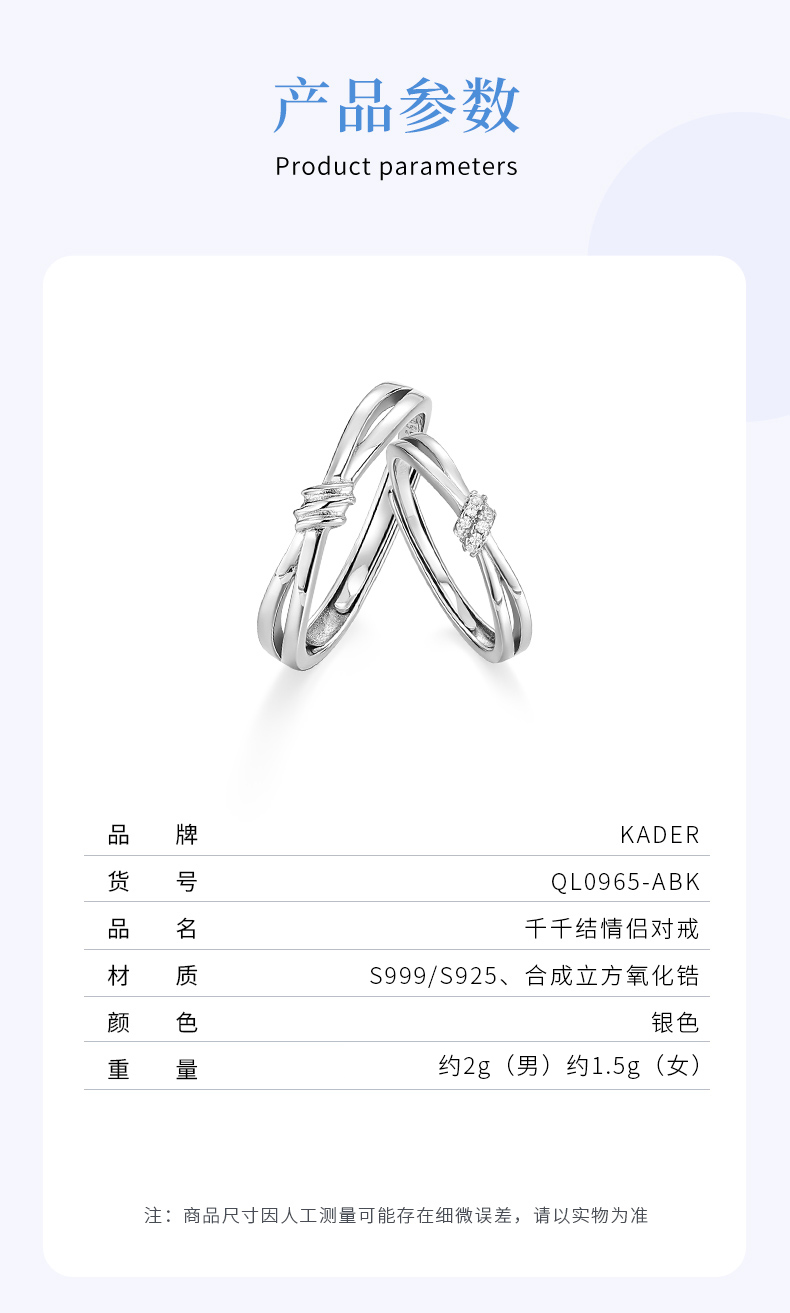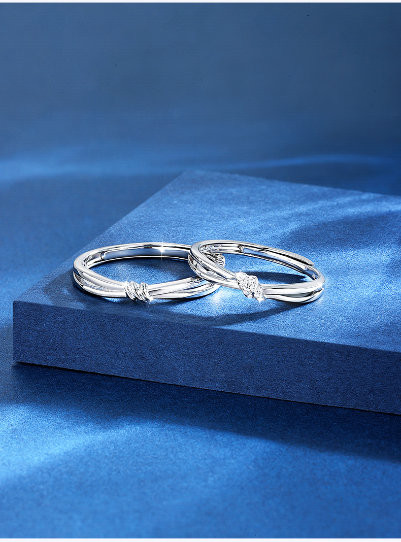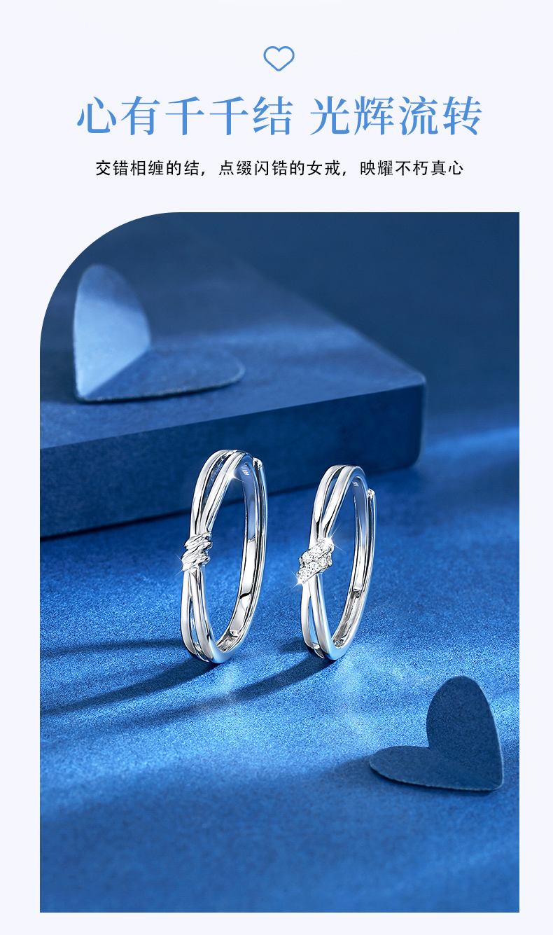 卡蒂罗千千结情侣对戒999银小众设计素圈戒指一对指环礼物送女友