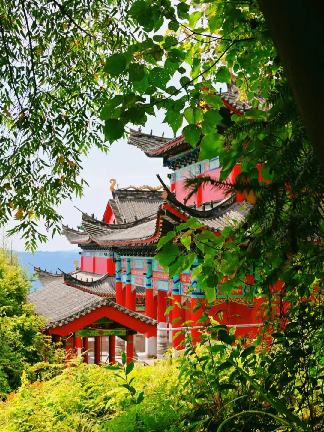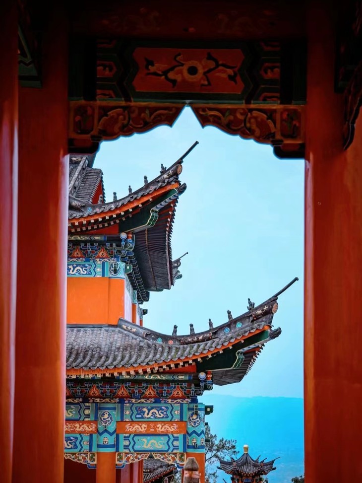 道明寺经历了多次毁坏和重建,目前道明寺还在修缮中。道明寺被分成老庙和新庙两部分。老庙位于一座墙砌的农房里,旁边新庙就是个大工地,三座大殿宏伟庄严,彩绘鲜艳,顺着山坡往下一字排开。