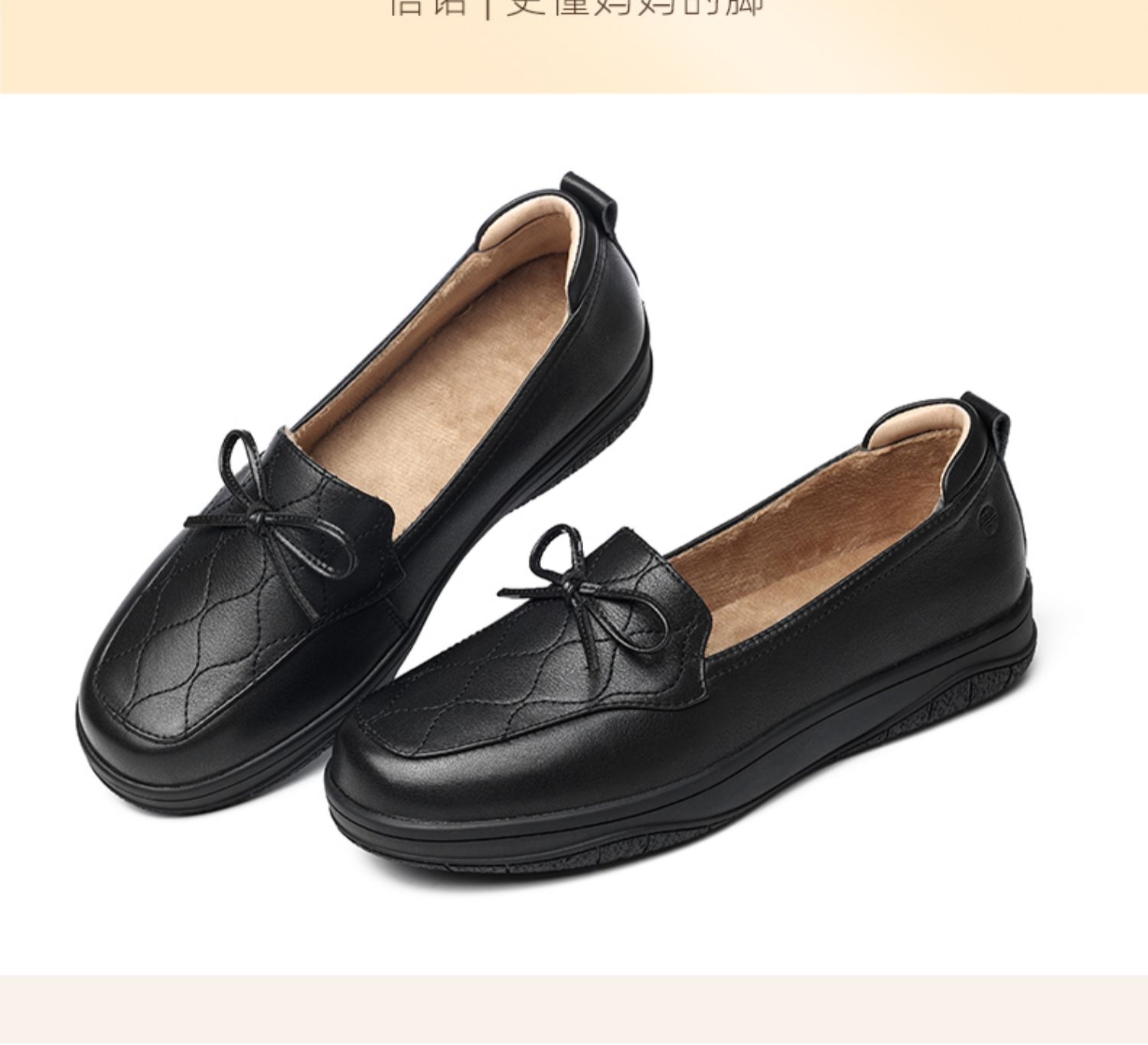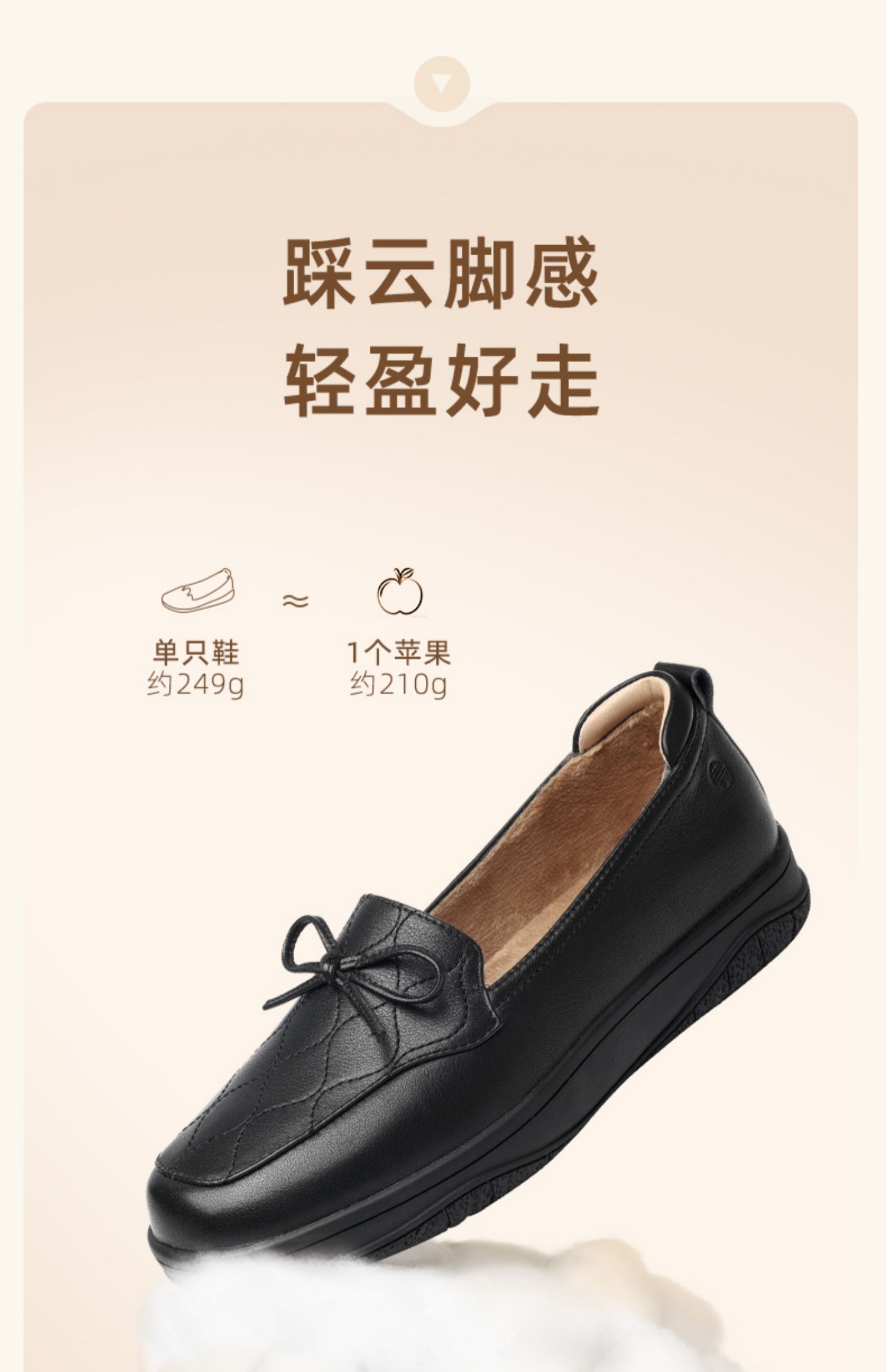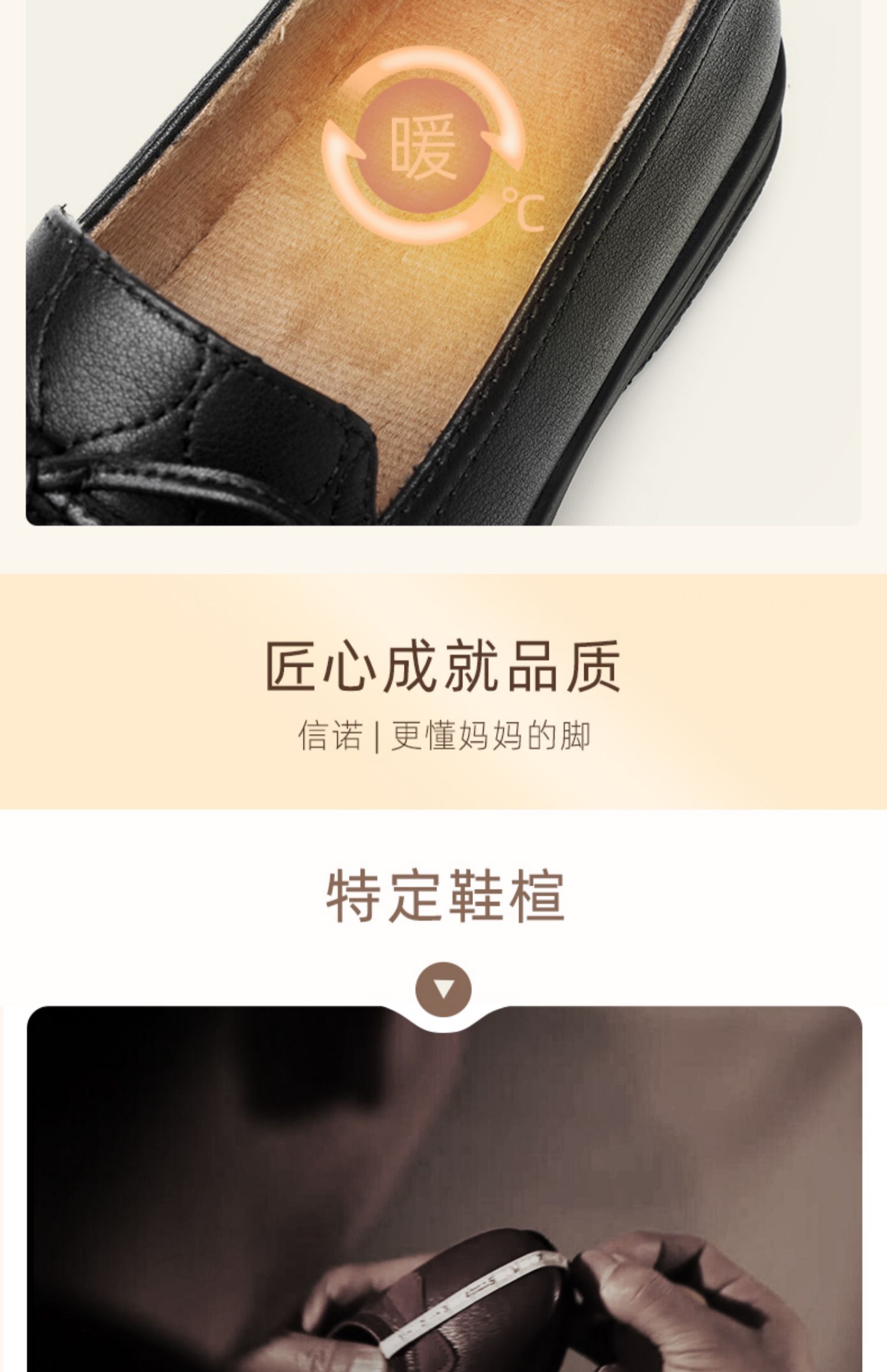 信诺真皮舒适女鞋秋冬新款加绒妈妈棉鞋中老年平底乐福鞋软底单鞋