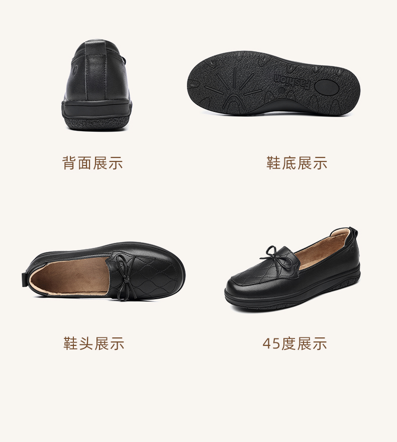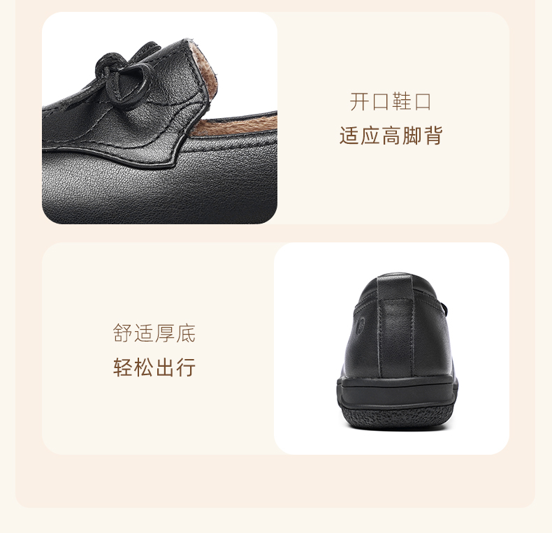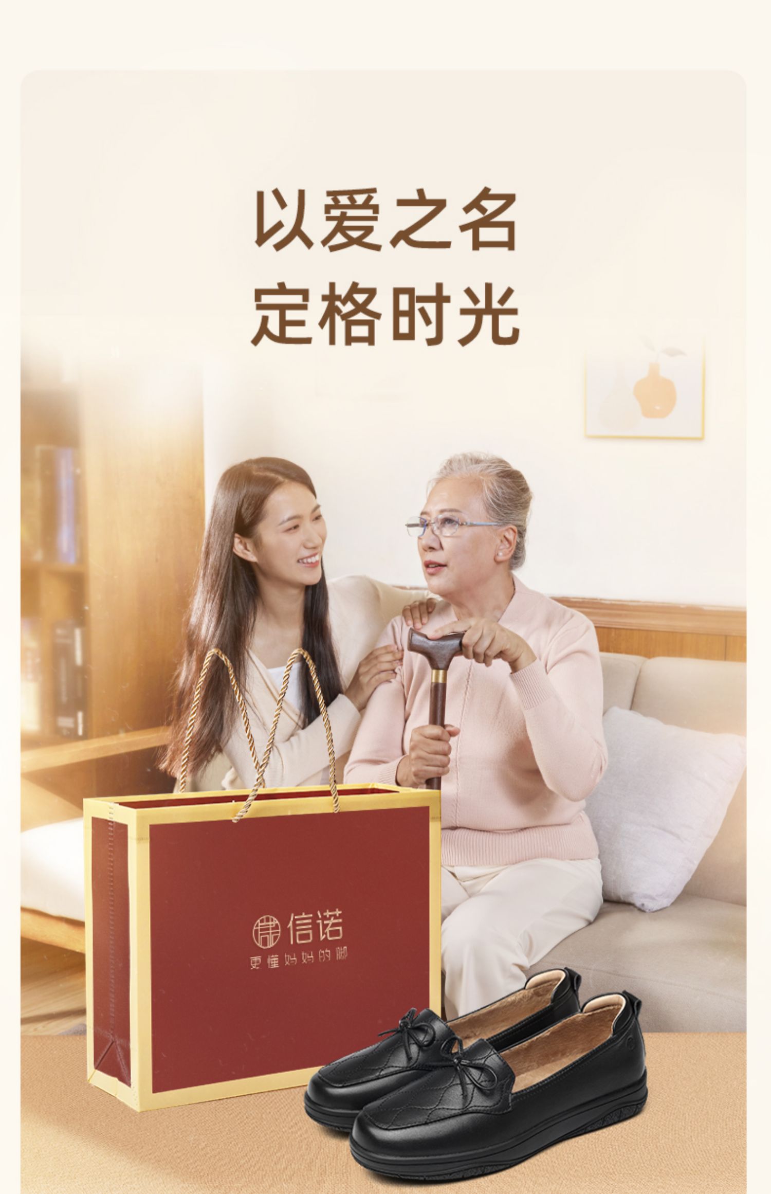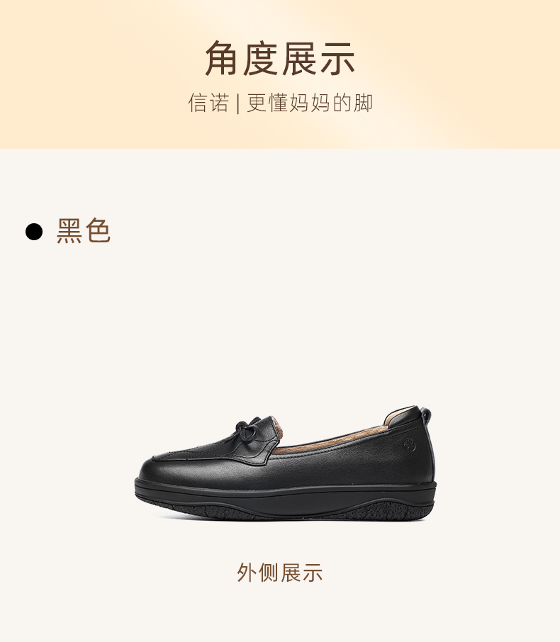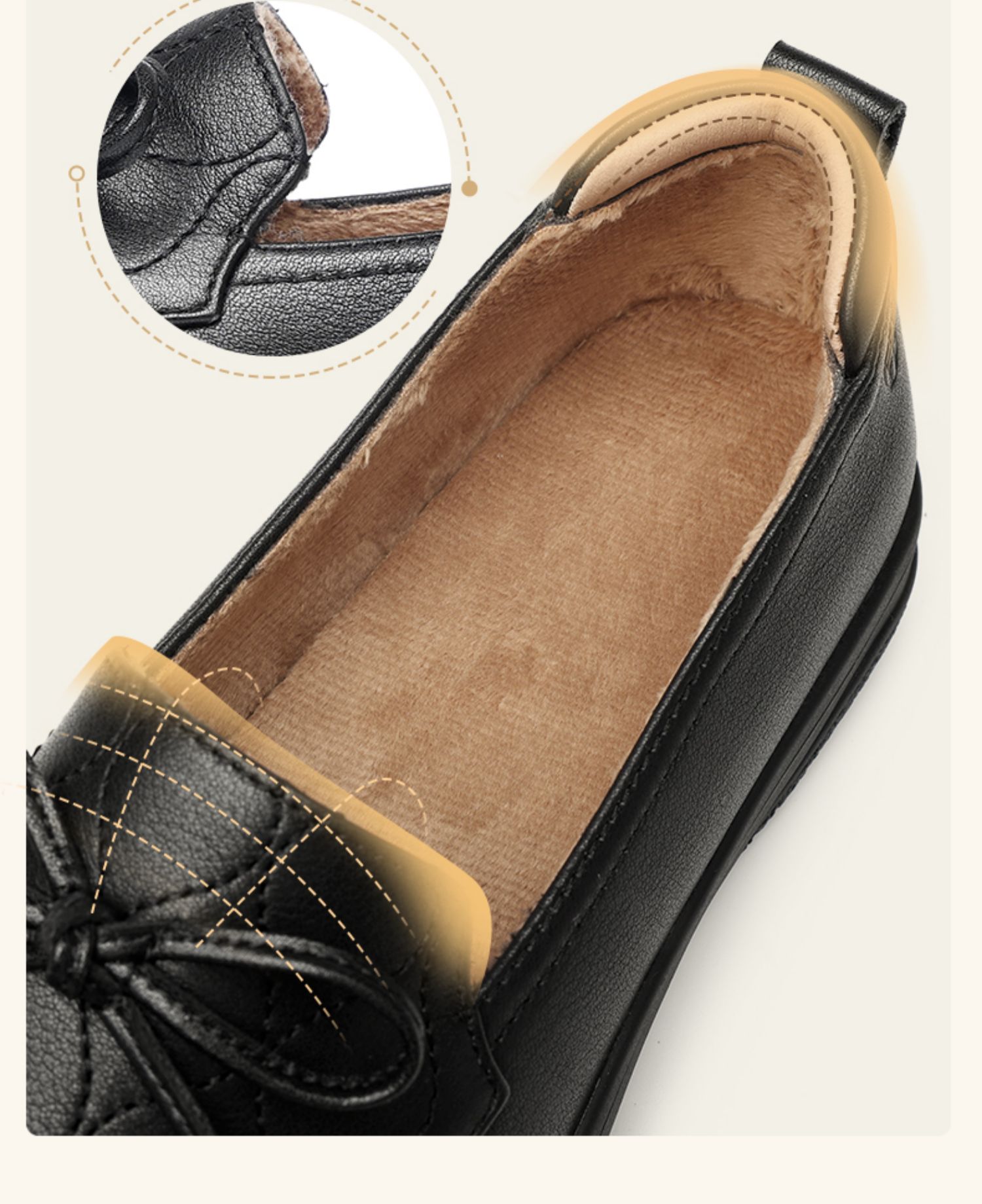 信诺真皮舒适女鞋秋冬新款加绒妈妈棉鞋中老年平底乐福鞋软底单鞋