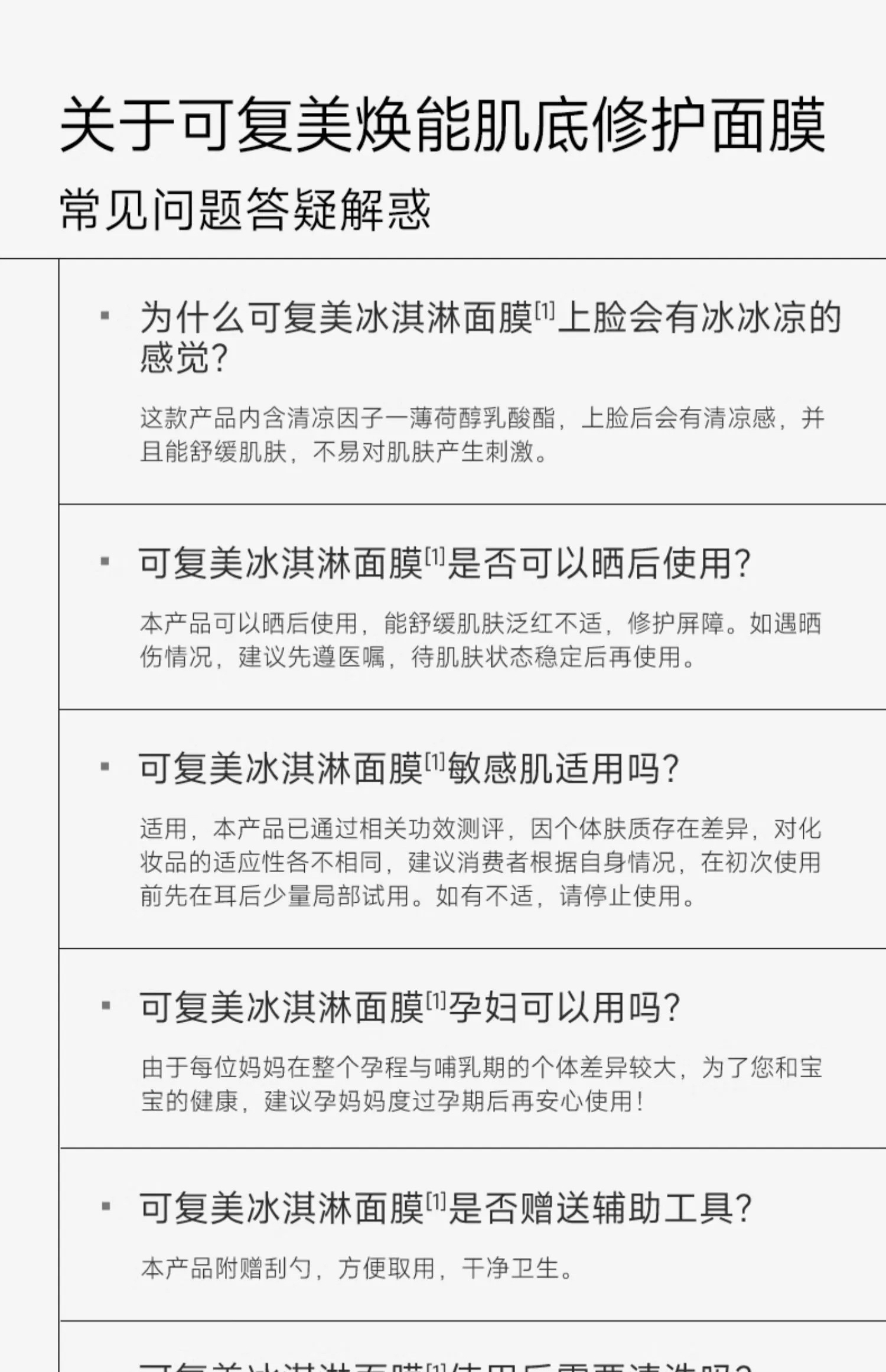【敏感肌首选】可复美 冰淇淋焕能保湿肌底修复涂抹面膜 165g