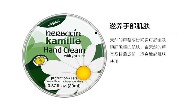 德国小甘菊贺本清Herbacin经典护手霜20ml 圆罐 便携滋润 补水保湿 预防干裂