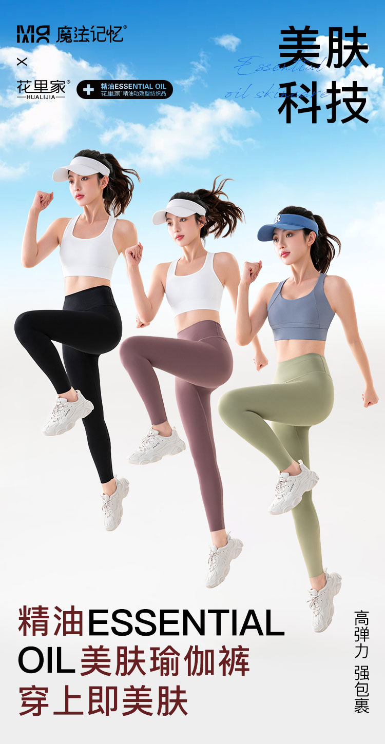 花里家高腰瑜伽裤女健身跑步紧身运动裤子精油美肤润肤提臀弹力裤
