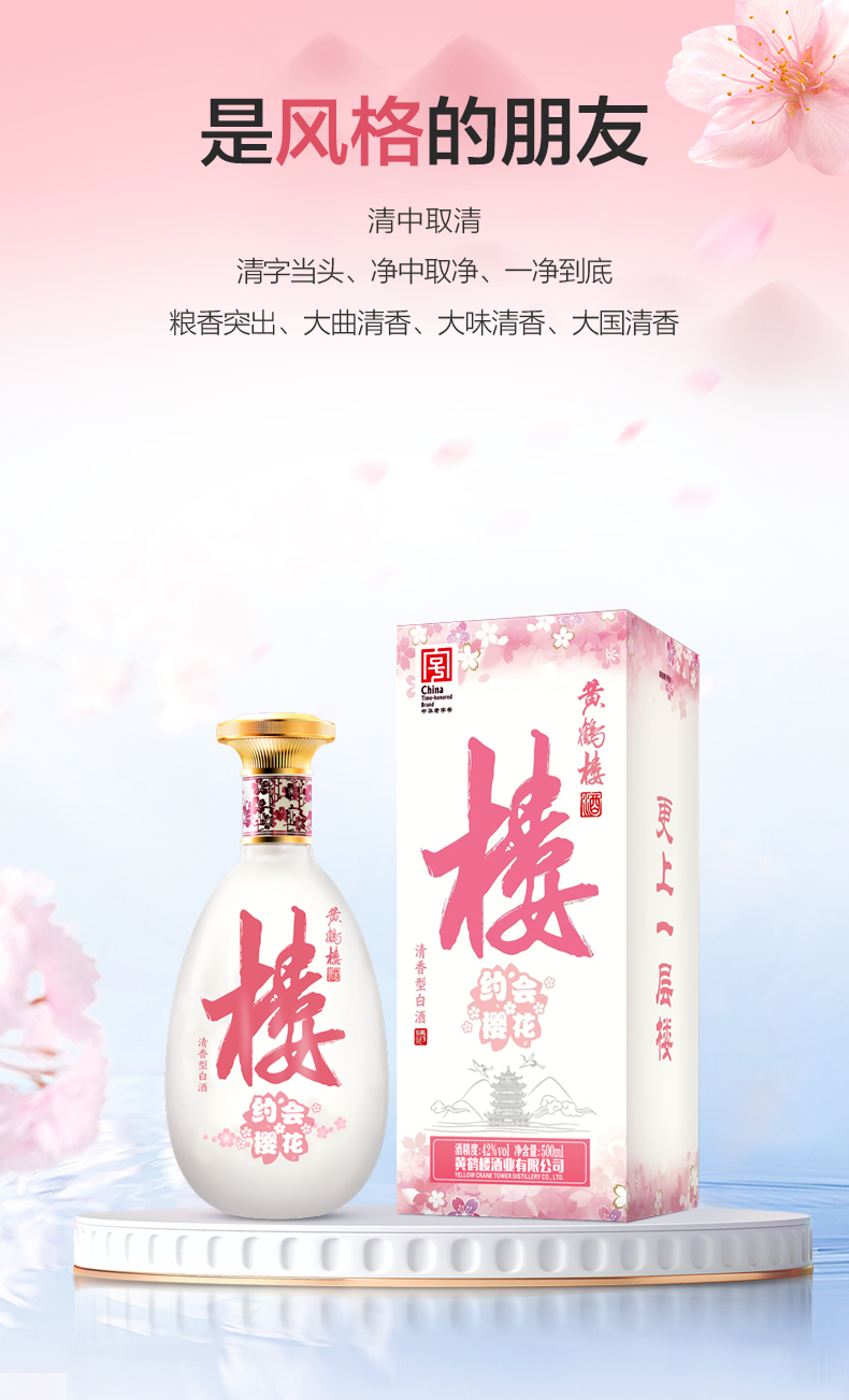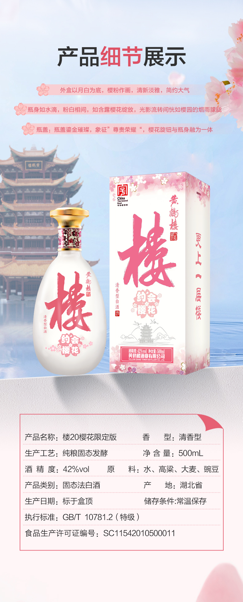 黄鹤楼酒武汉礼物樱花版楼20大瓶500ml