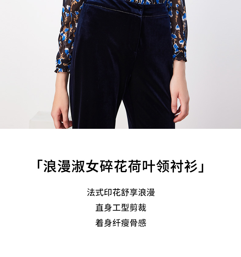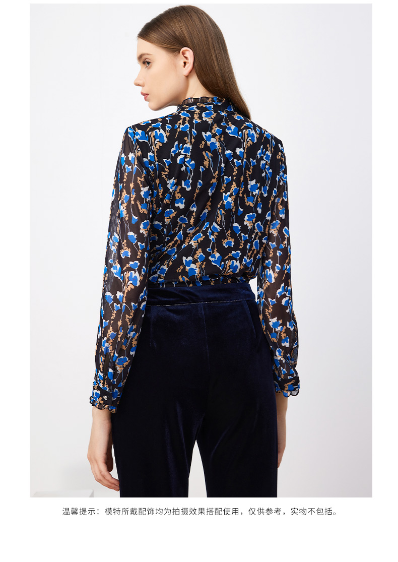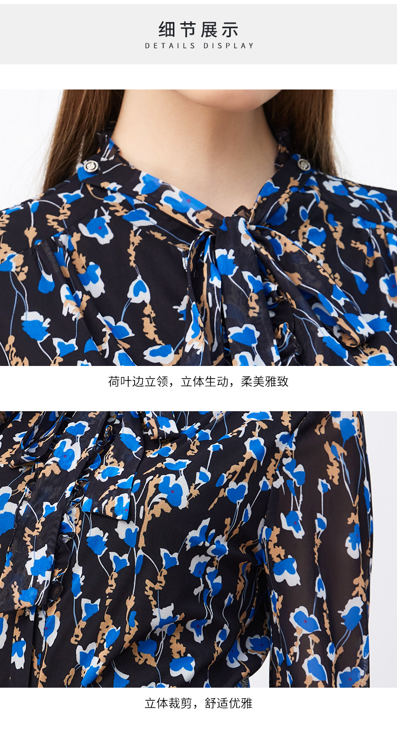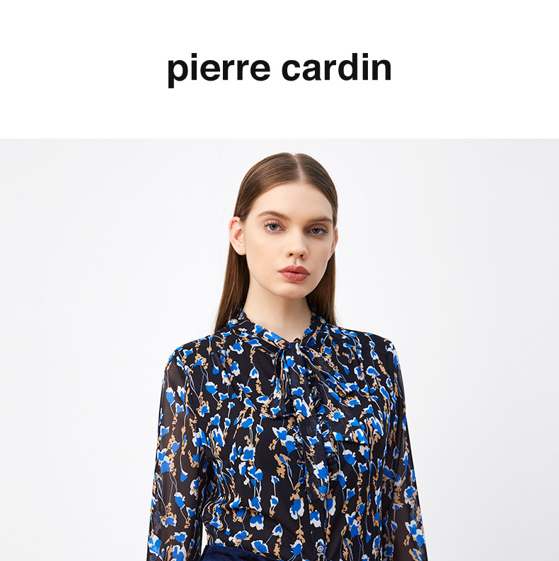 皮尔卡丹女装衬衫法式气质浪漫淑女印花荷叶领衬衣P3336B3988N3