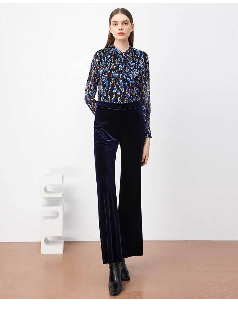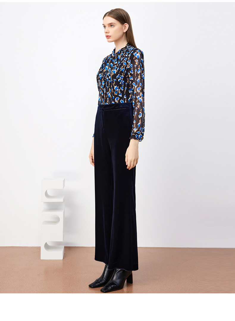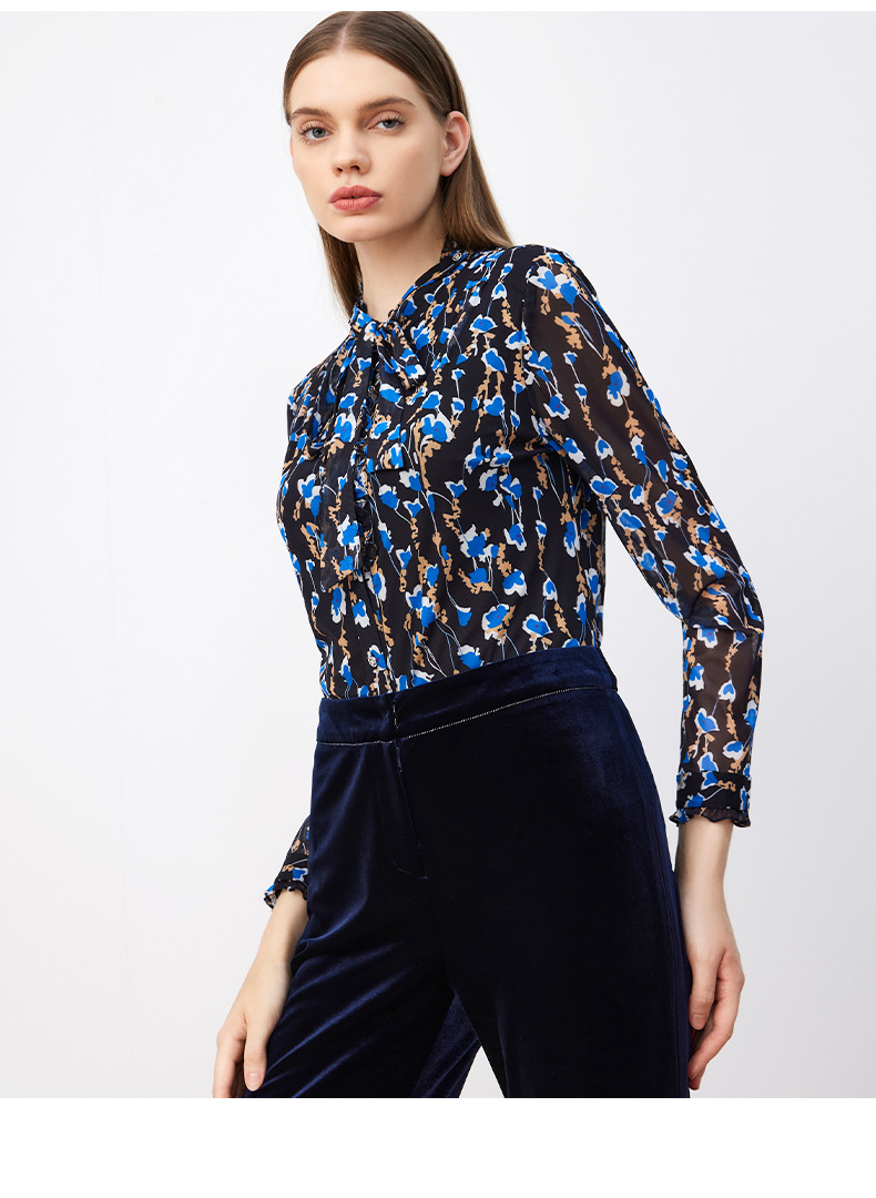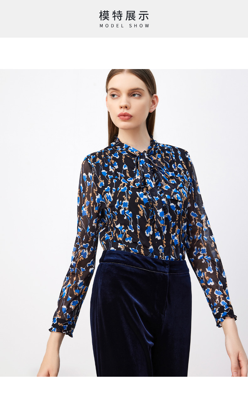 皮尔卡丹女装衬衫法式气质浪漫淑女印花荷叶领衬衣P3336B3988N3
