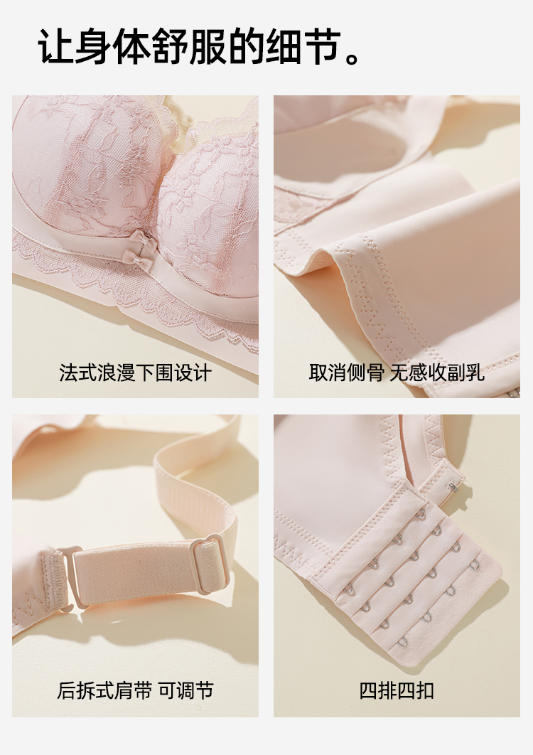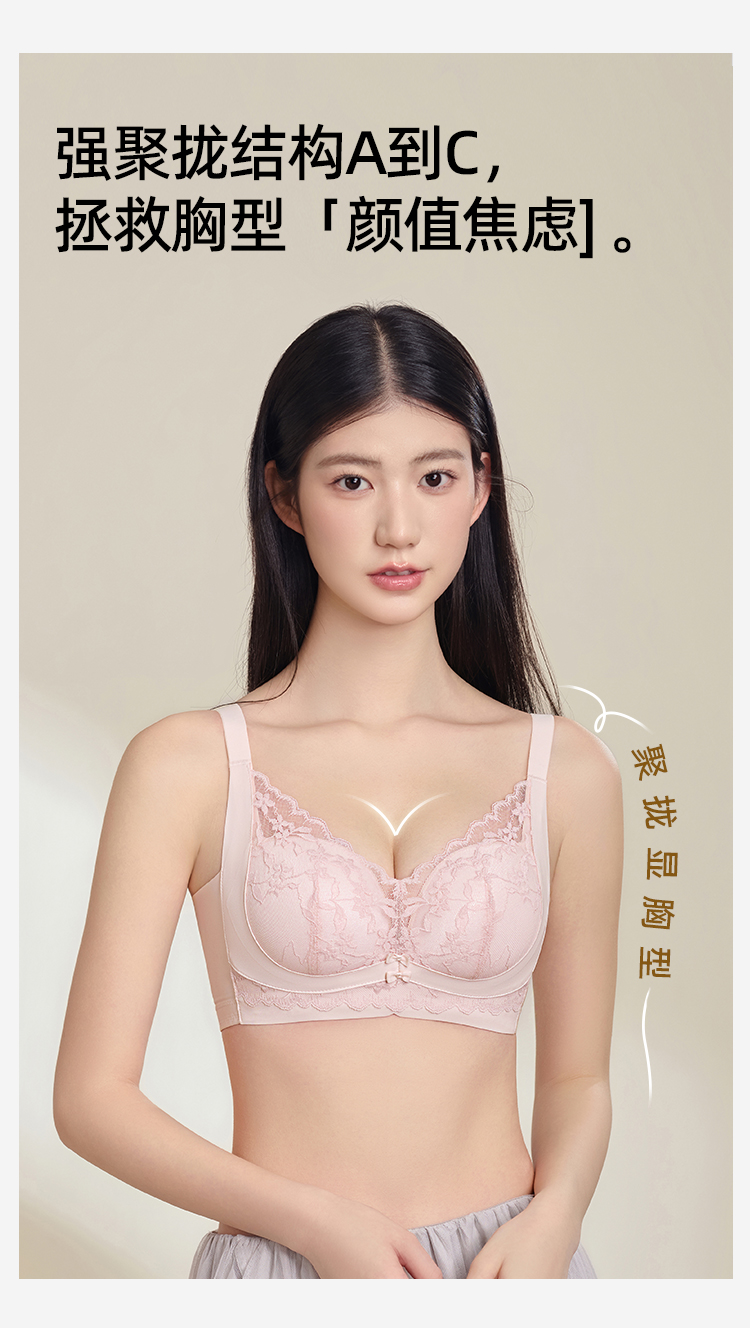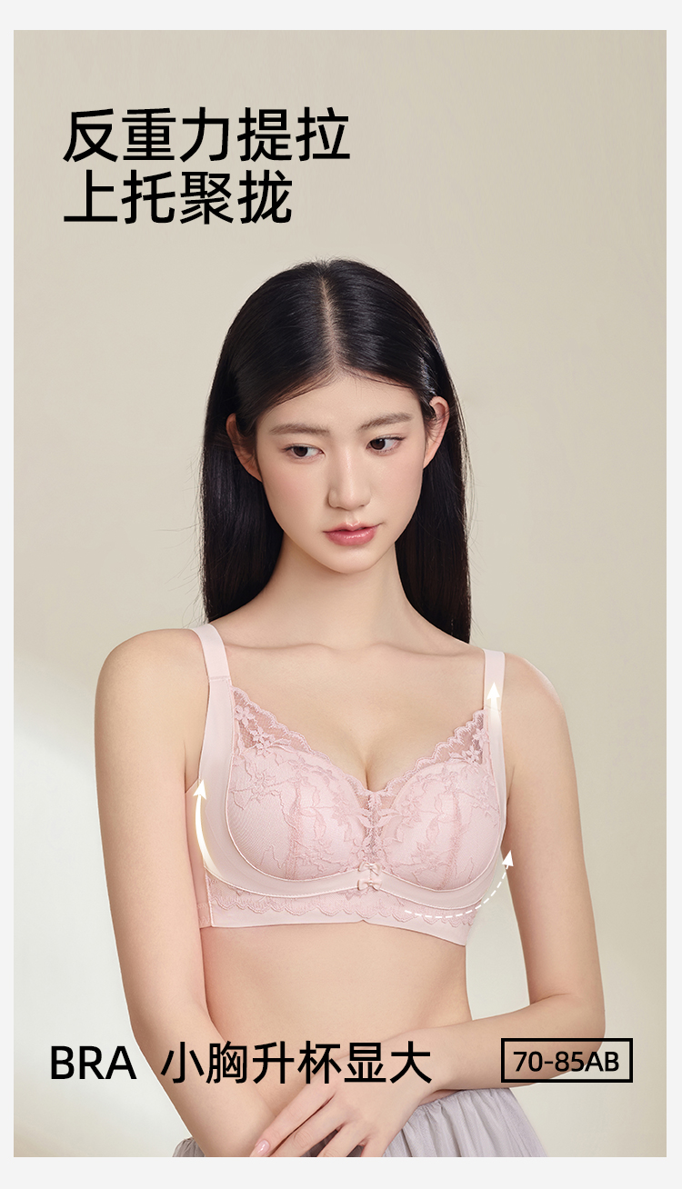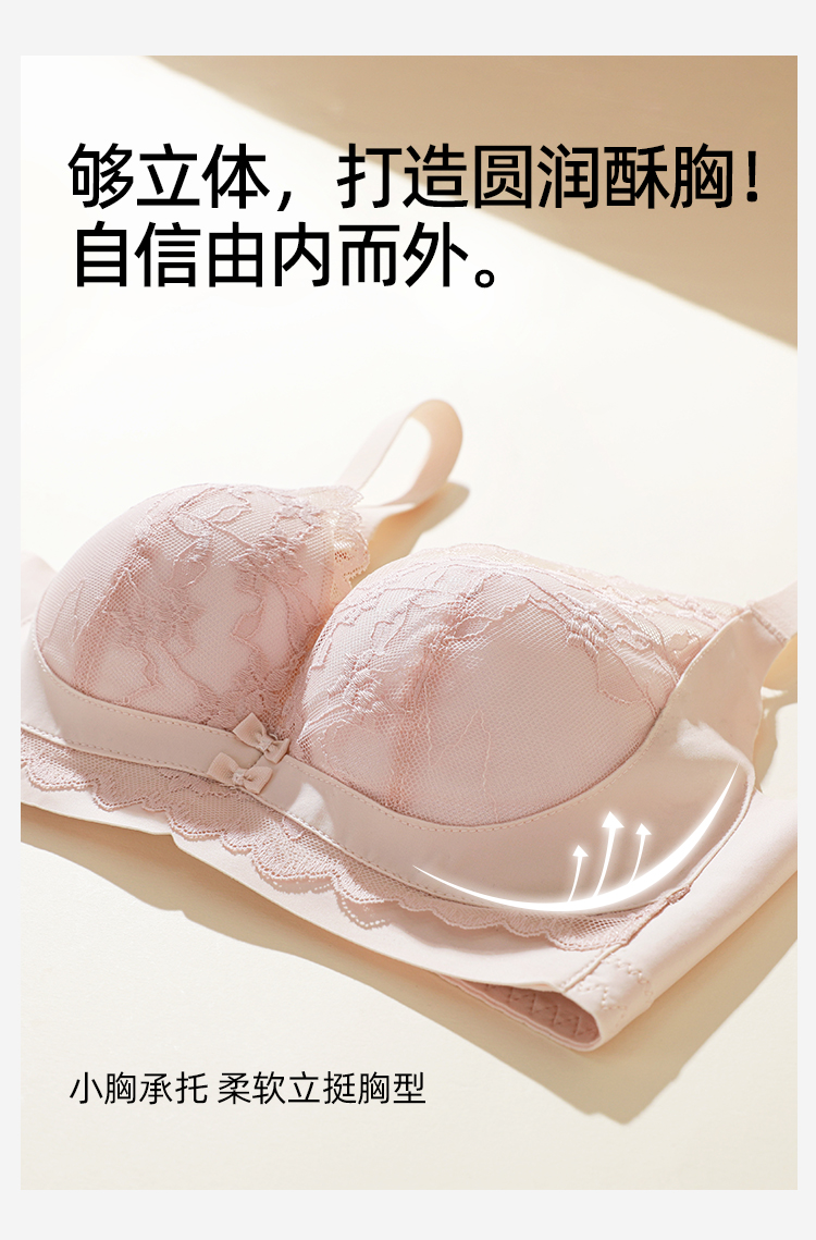 熳洁儿 小胸聚拢文胸双重反重力提拉无侧骨法式花卉蕾丝文胸25261513