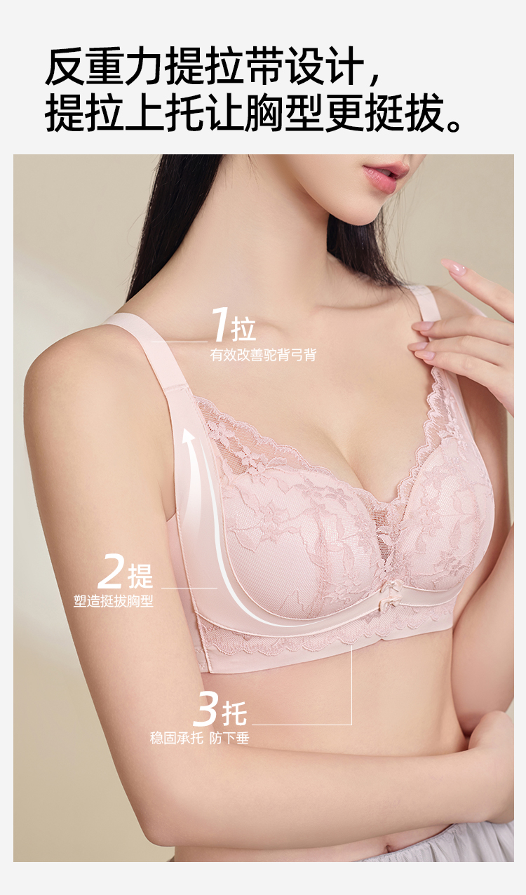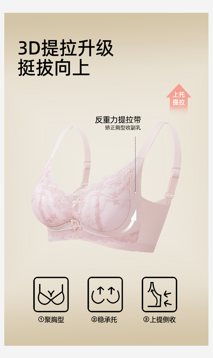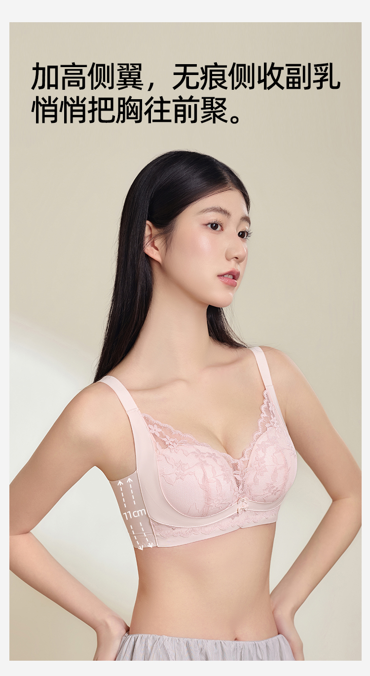 熳洁儿 小胸聚拢文胸双重反重力提拉无侧骨法式花卉蕾丝文胸25261513