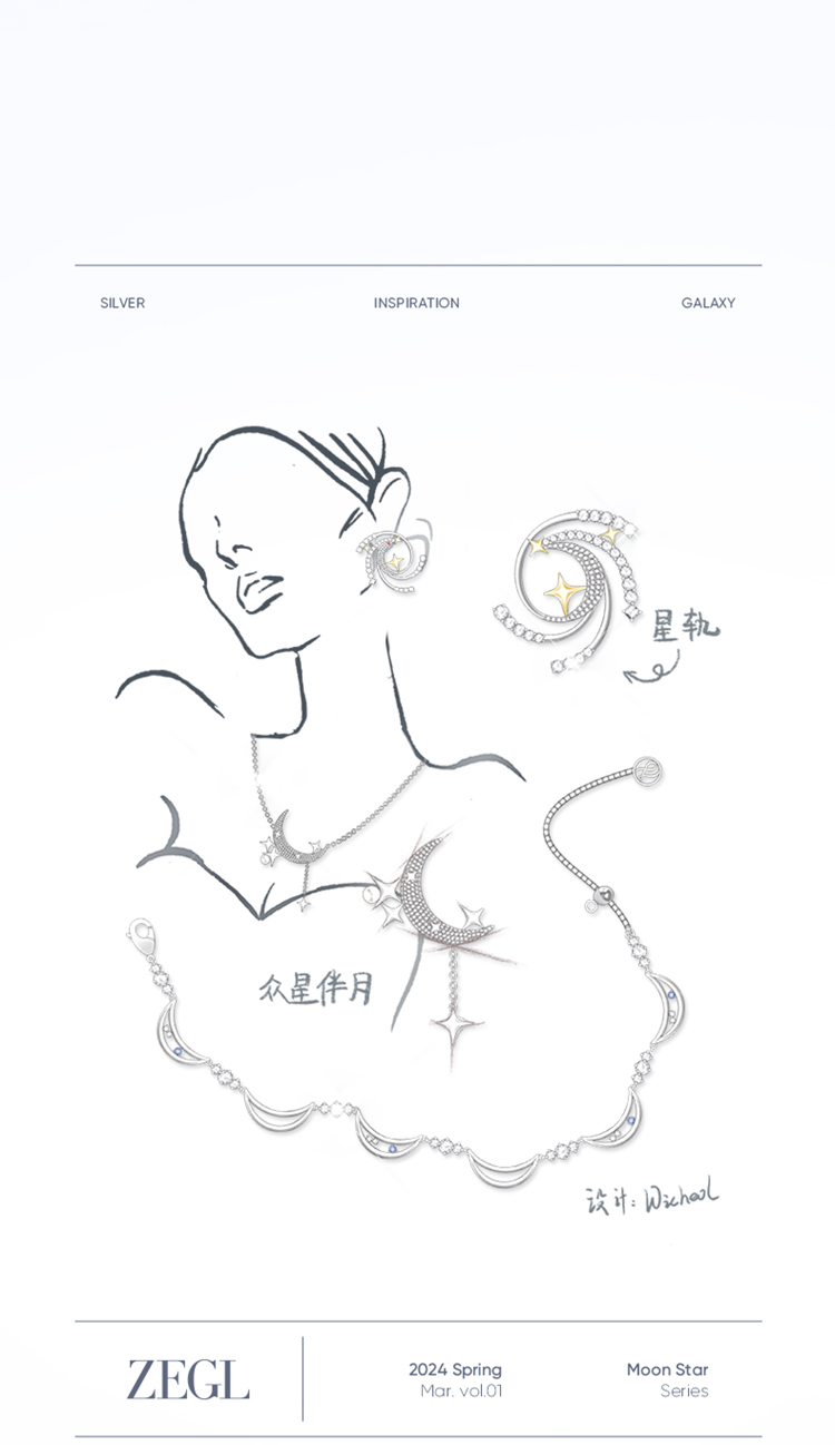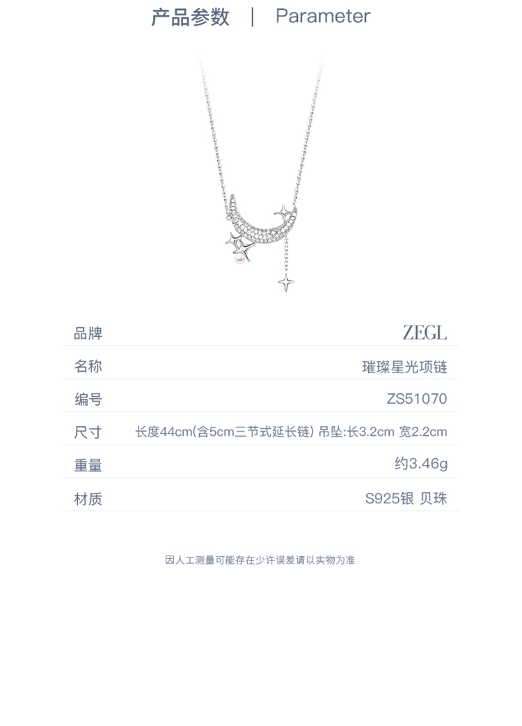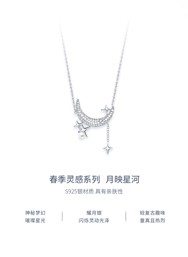 ZEGL设计师月映星河系列925银月亮项链女2024新款星星锁骨链饰品