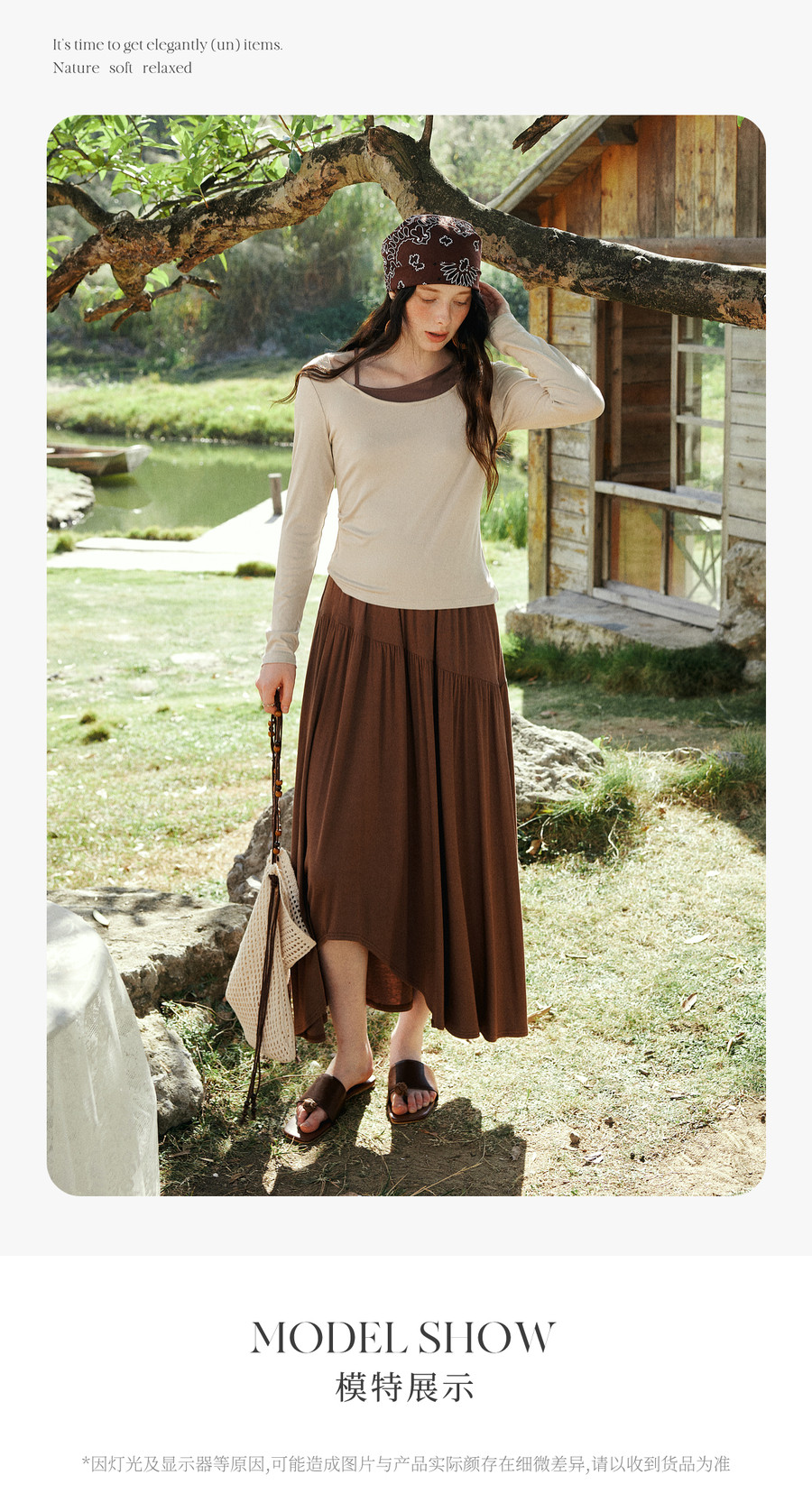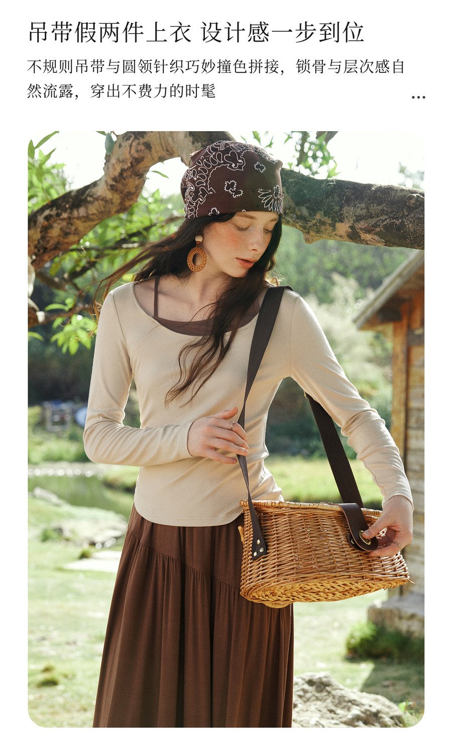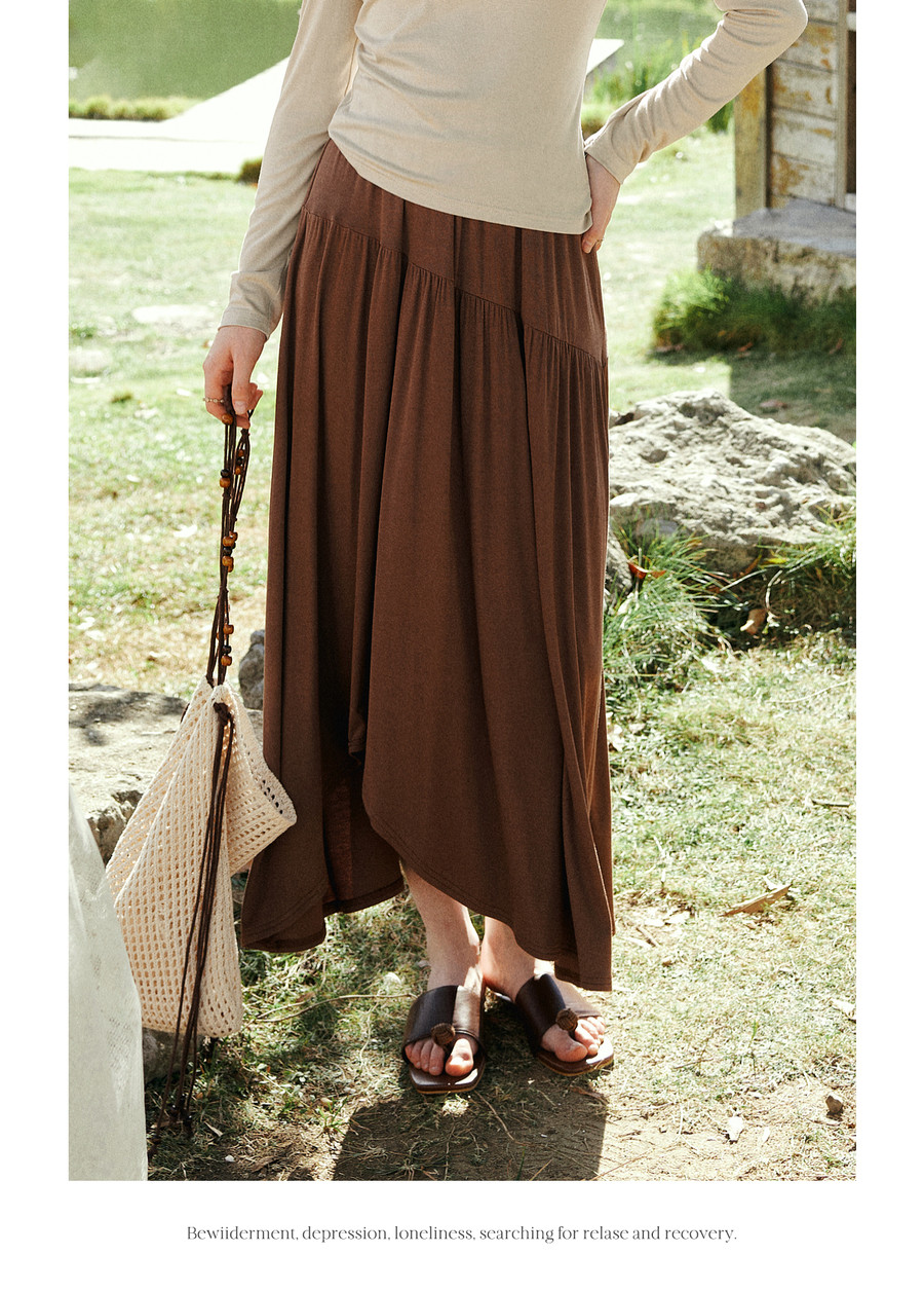 OLrain欧芮儿2026新款女春季撞色假两件长袖T恤不规则半裙两件套