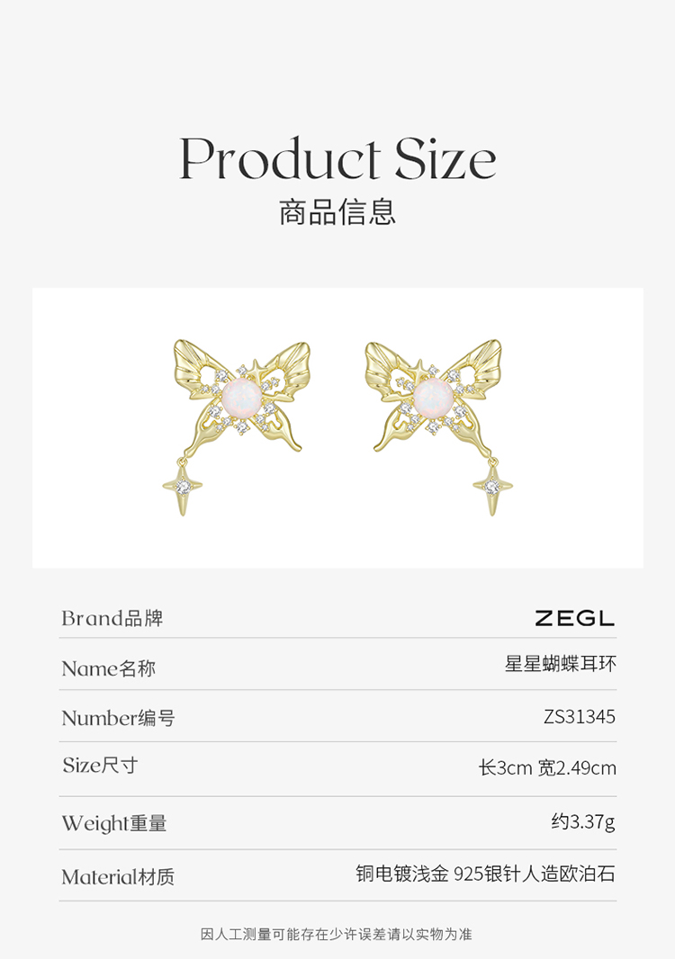 ZEGL设计师幻野系列蝴蝶耳环女小众设计感高级耳钉925银针夏耳饰
