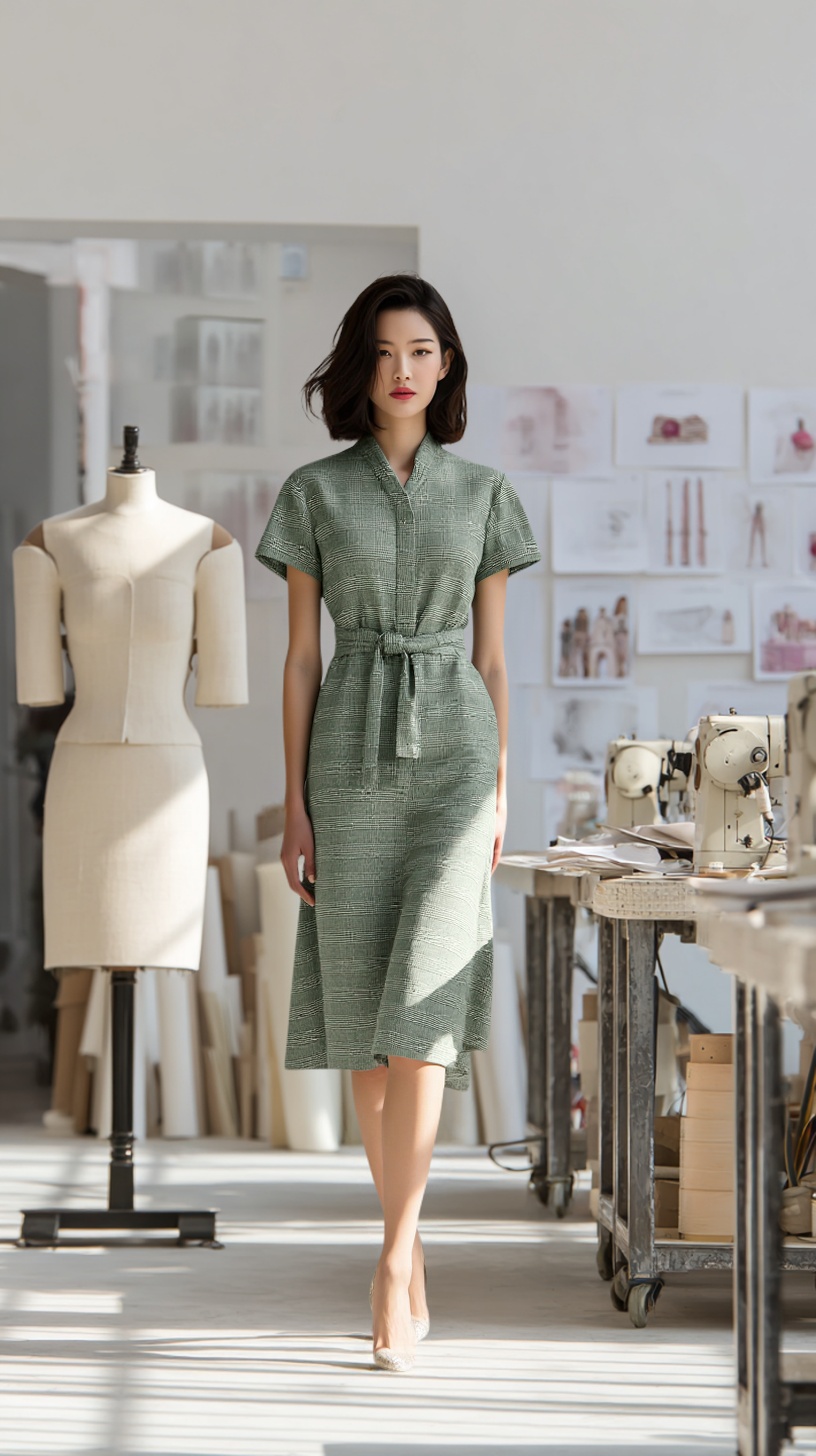 面料:豆绿色1.3条纹醋酸麻感320克套装TR(59202-11)