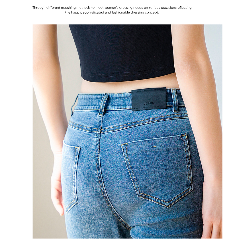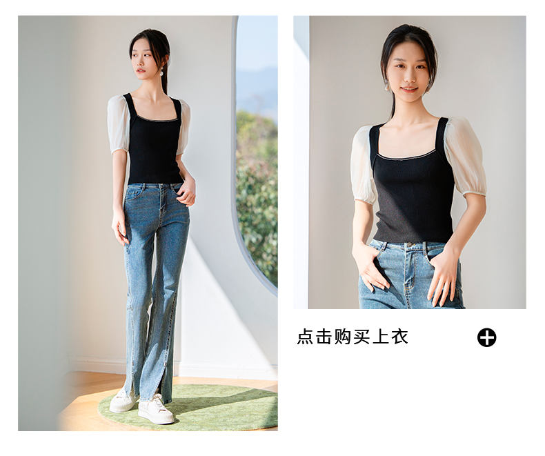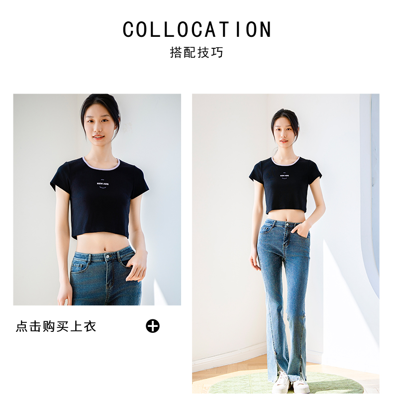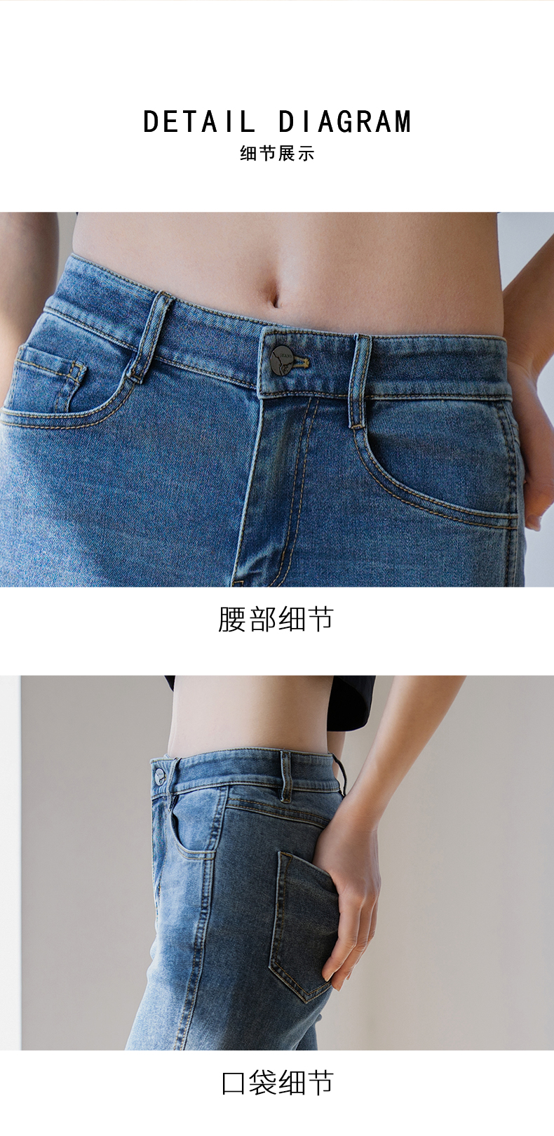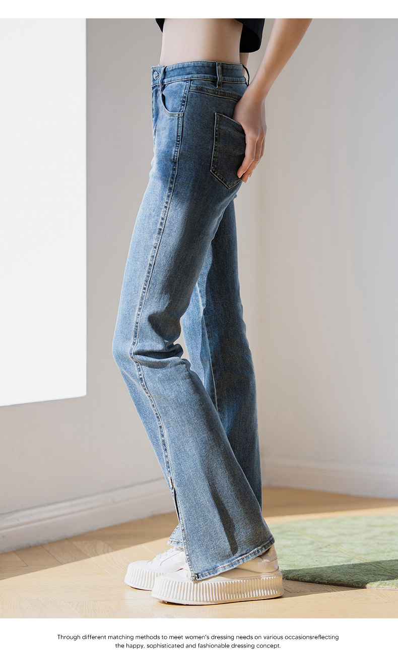 oldcolour蓝色牛仔裤夏季新款高腰显瘦时尚开叉微喇裤女P21113176