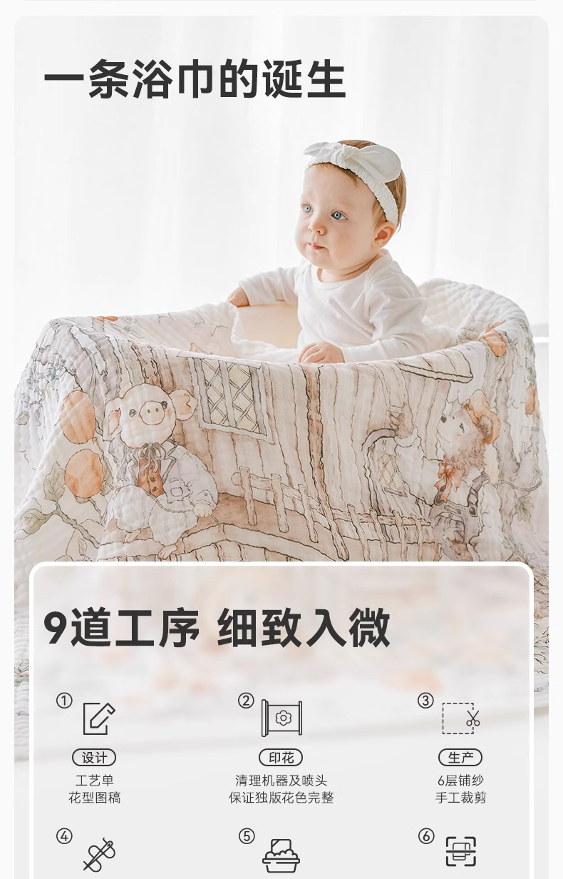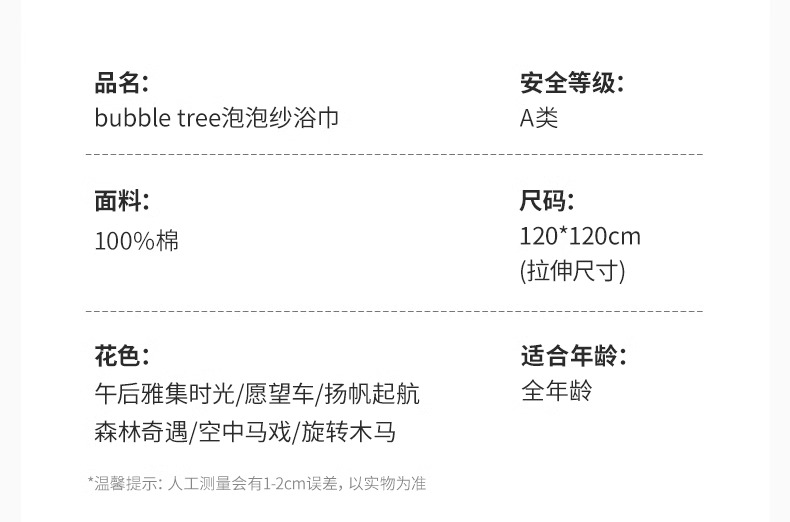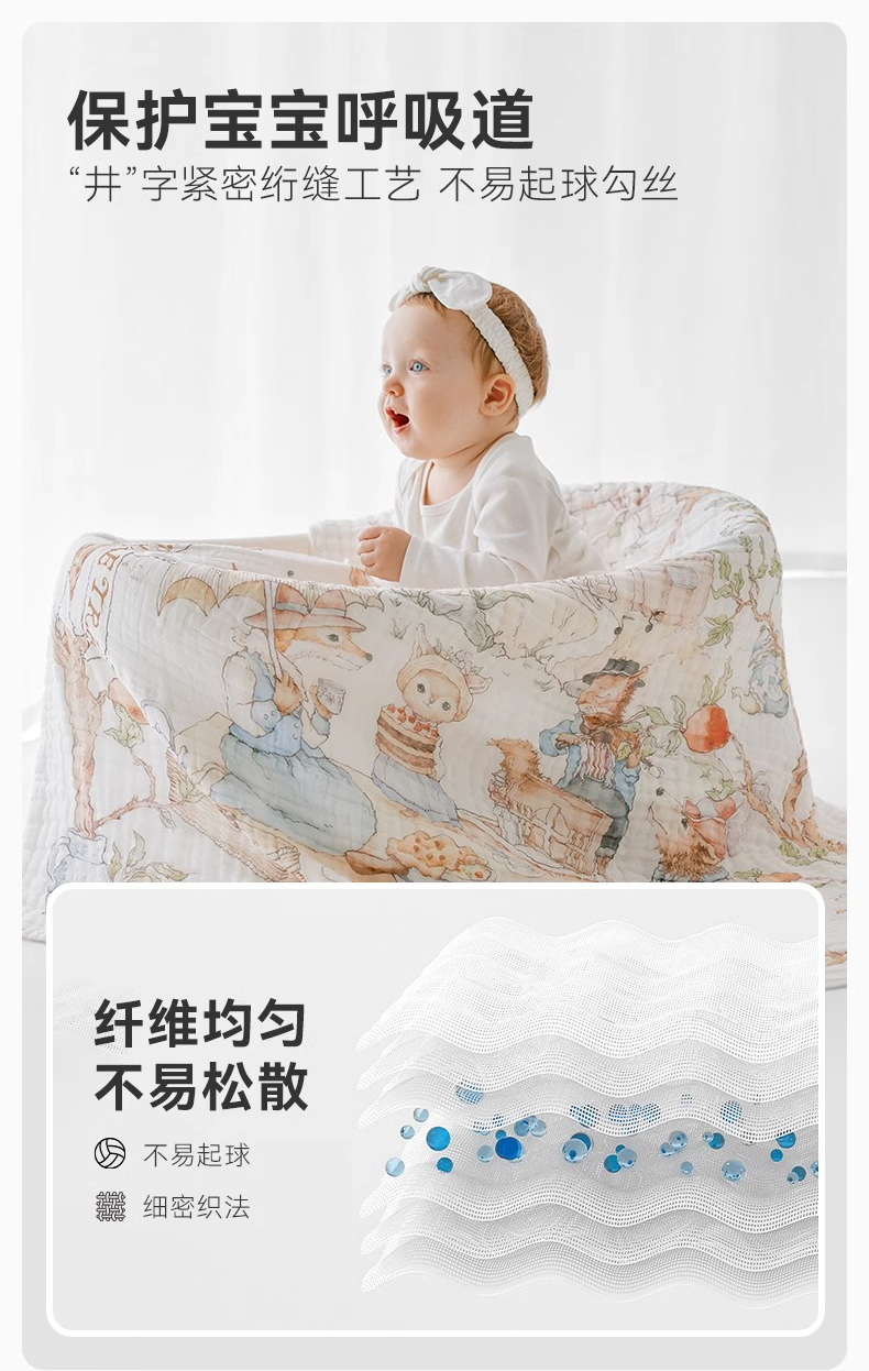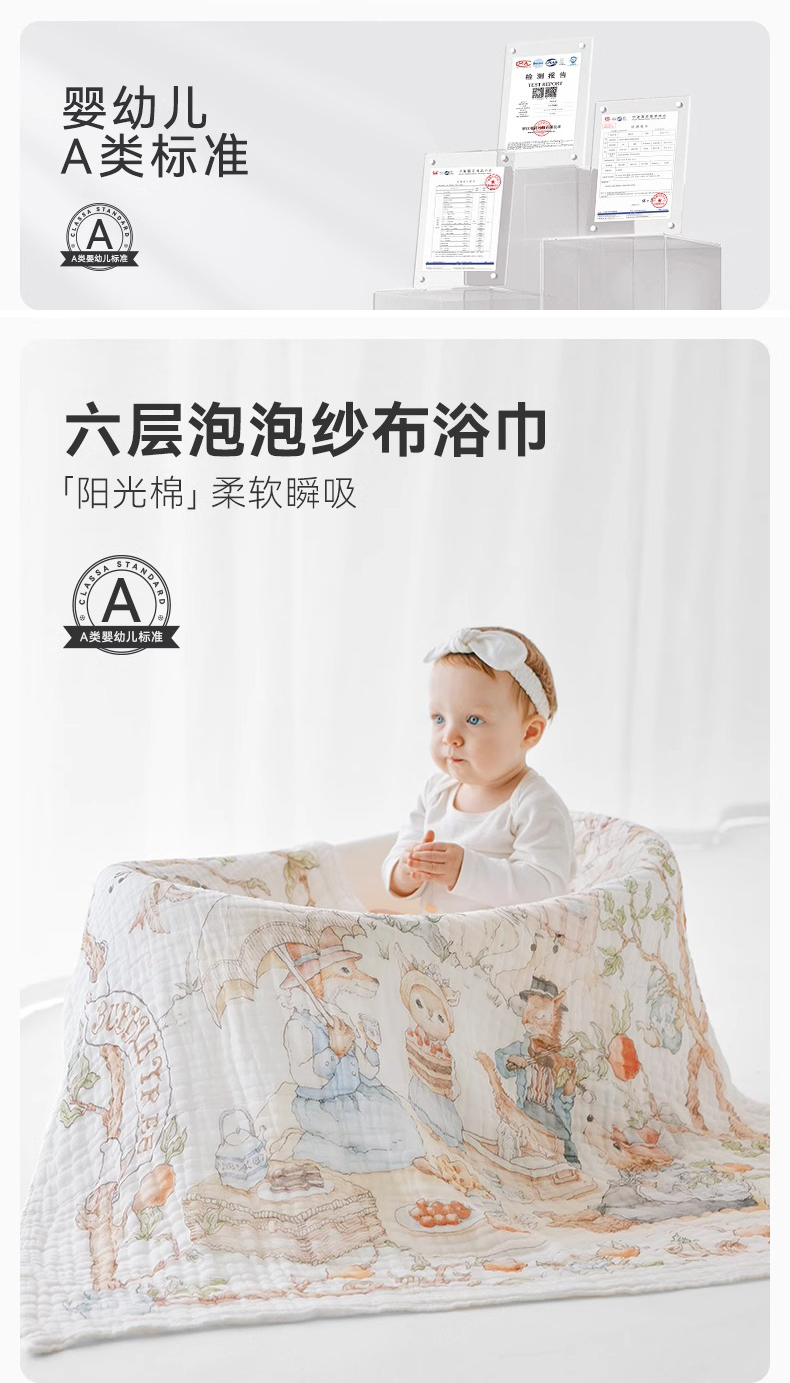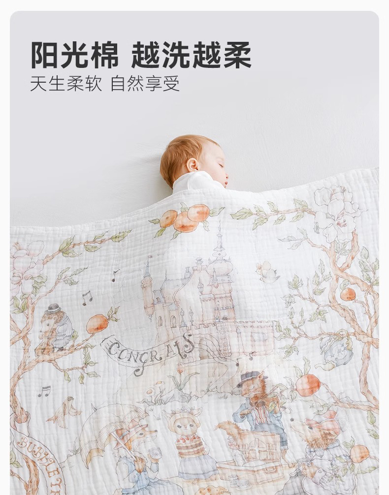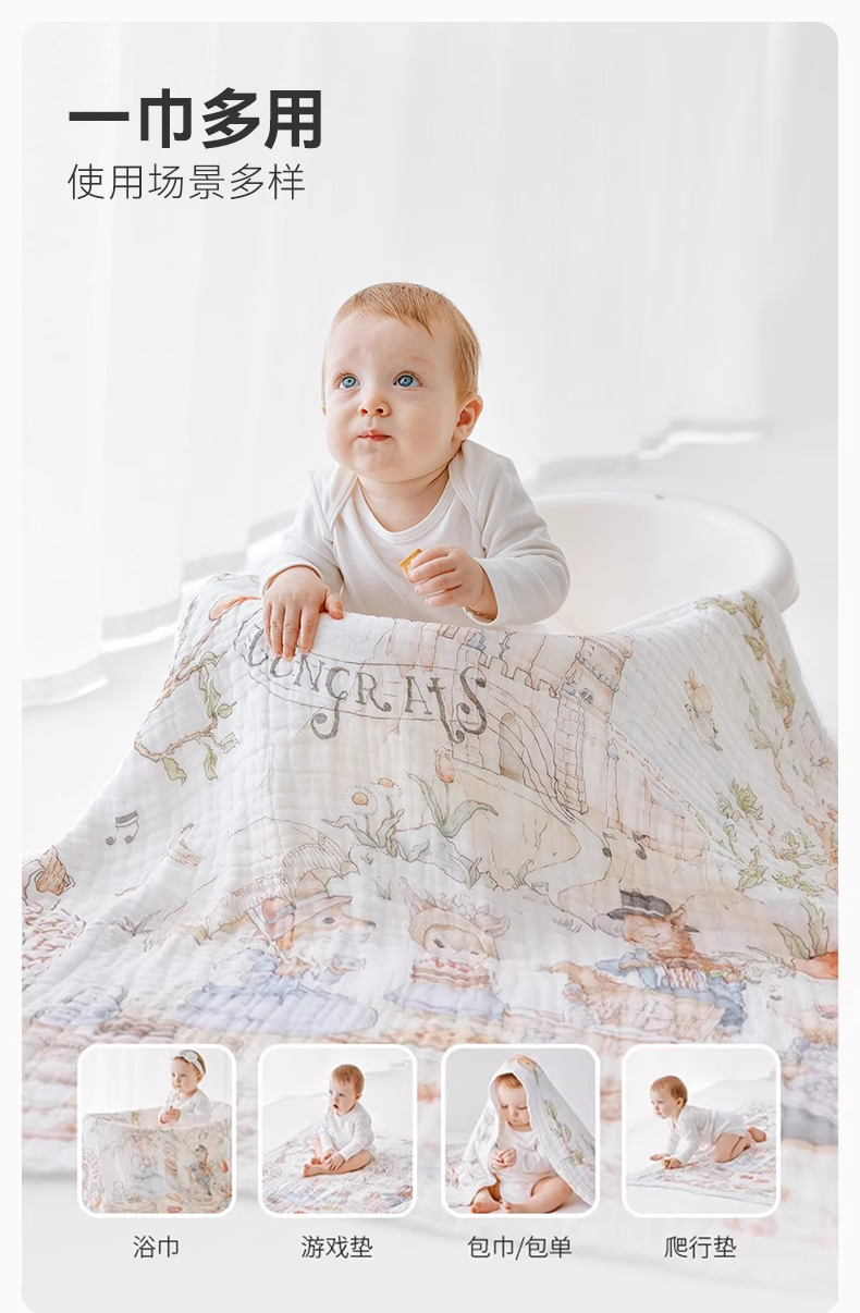 【云优选】BUBBLE TREE婴幼儿纱布浴巾新生儿宝宝专用儿童大裹巾6层纯棉a类