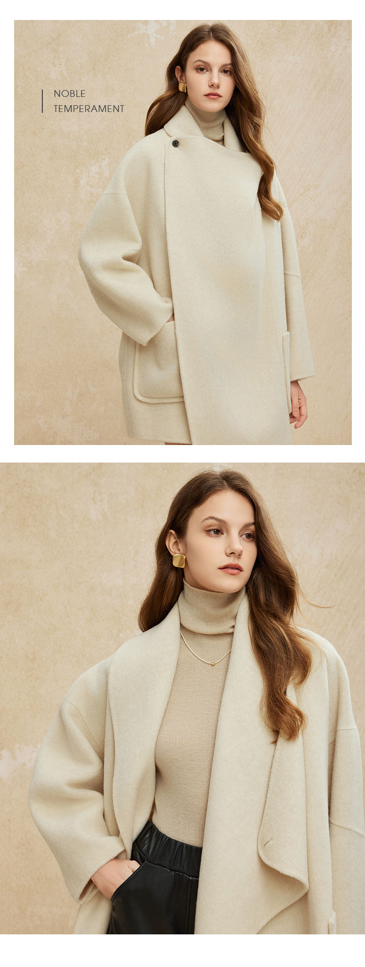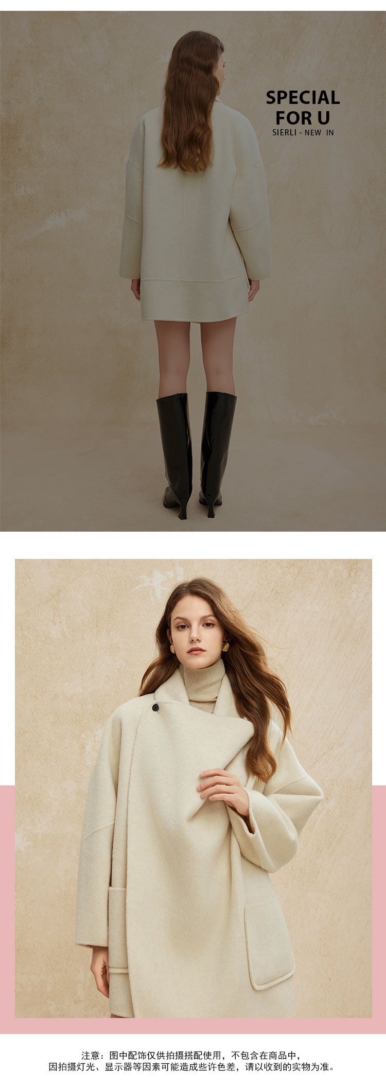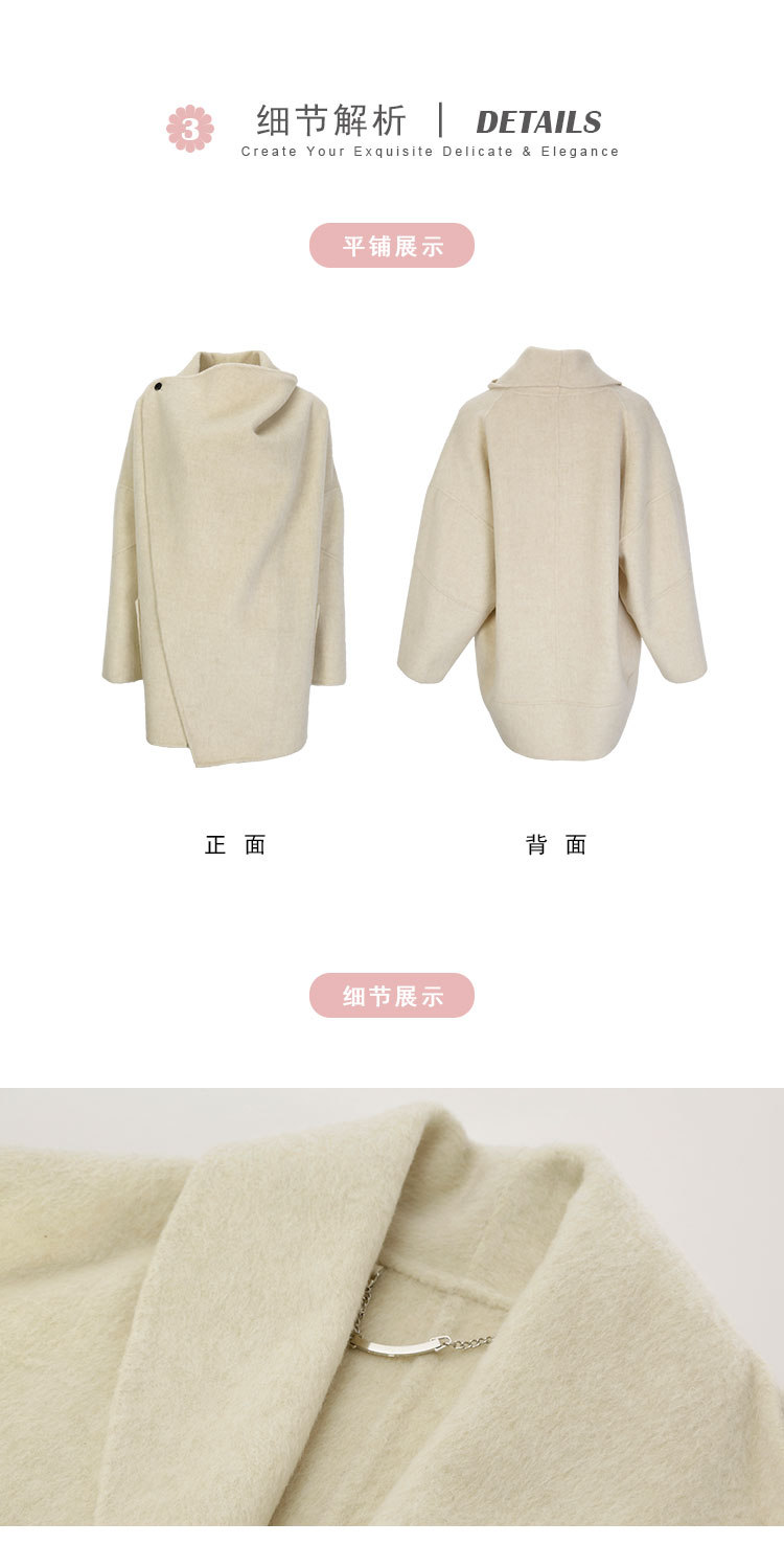 PH954斯尔丽24新款高支羊毛双面呢不对称翻领设计感松弛廓形大衣