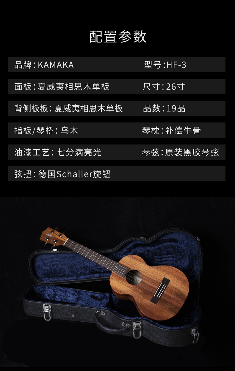 Kamaka HF3 夏威夷相思木手工全单尤克里里高端演奏指弹 趣弹音乐