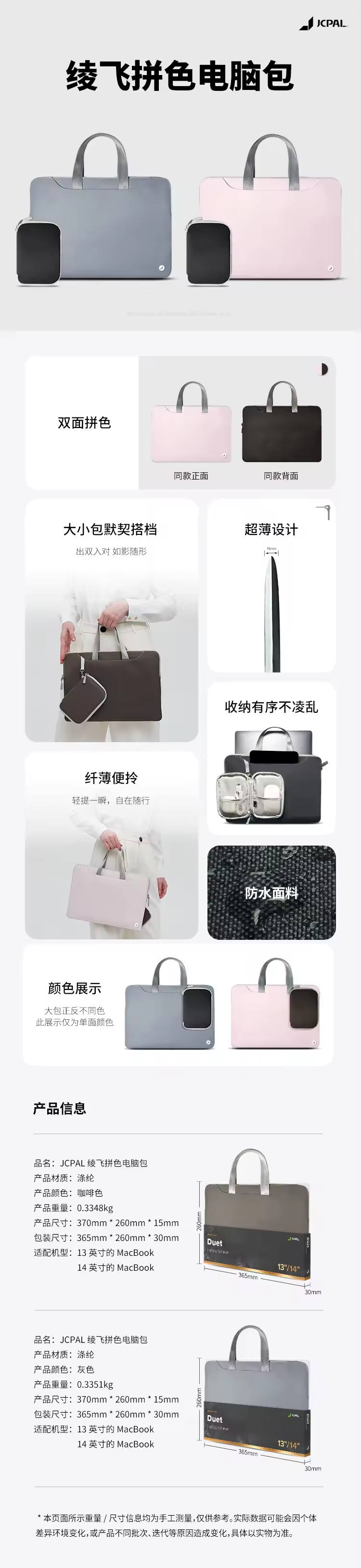JCPAL 绫飞拼色电脑包