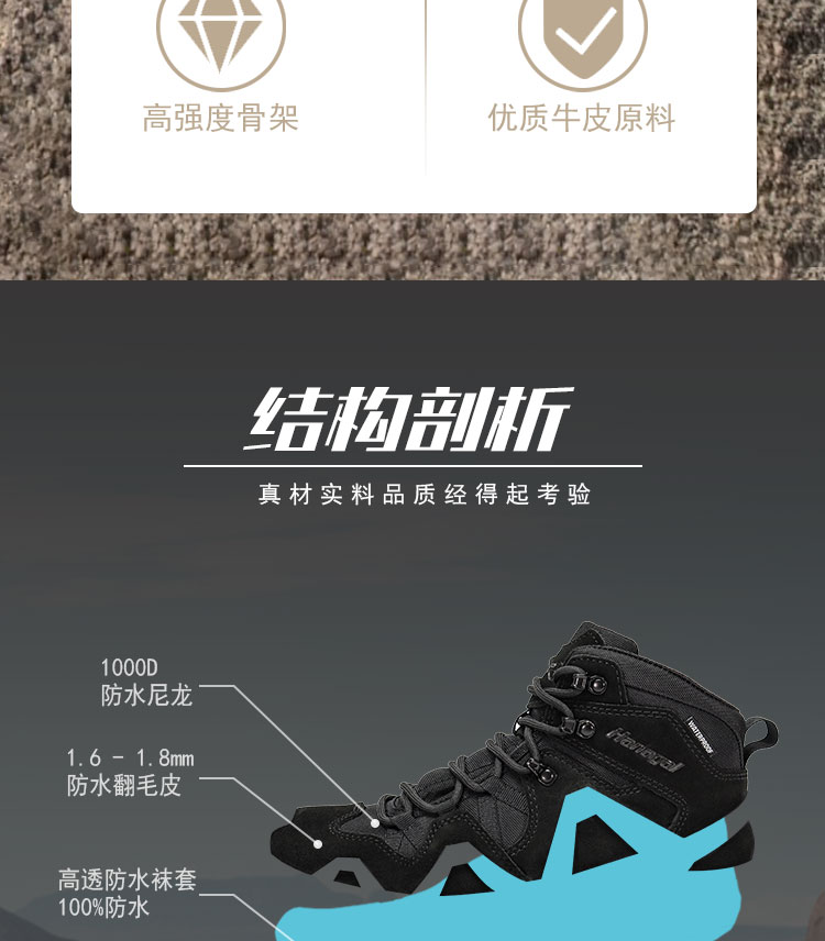 【新品388秒杀!】悍戈Hanagal高帮防水徒步登山鞋户外徒步运动鞋战术靴防水防滑耐磨反毛皮35828
