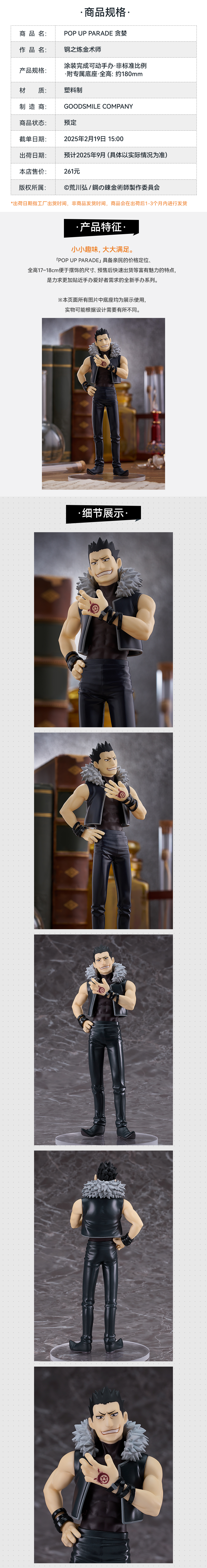 【GSC补款】POP UP PARADE 贪婪 钢之炼金术师