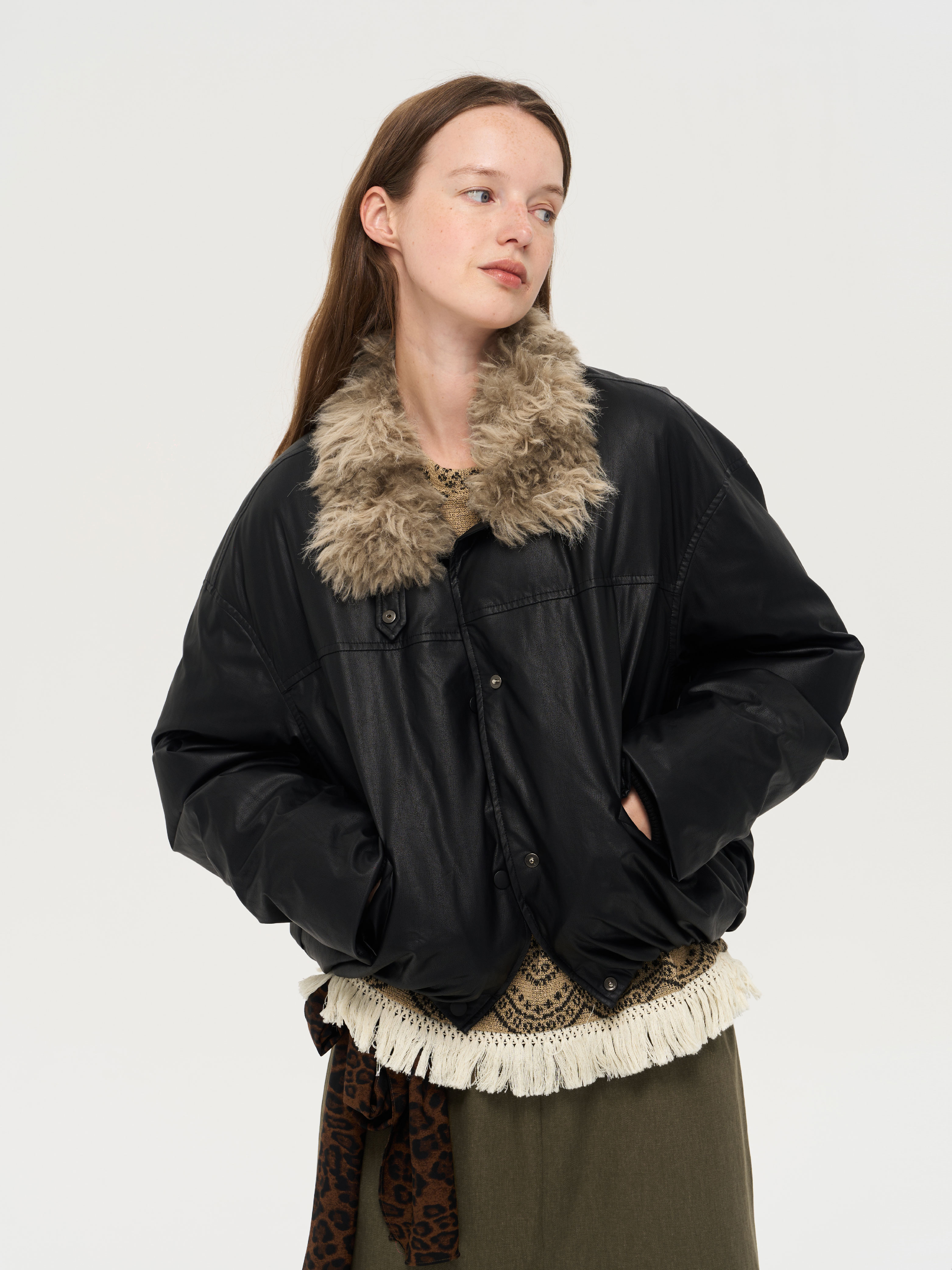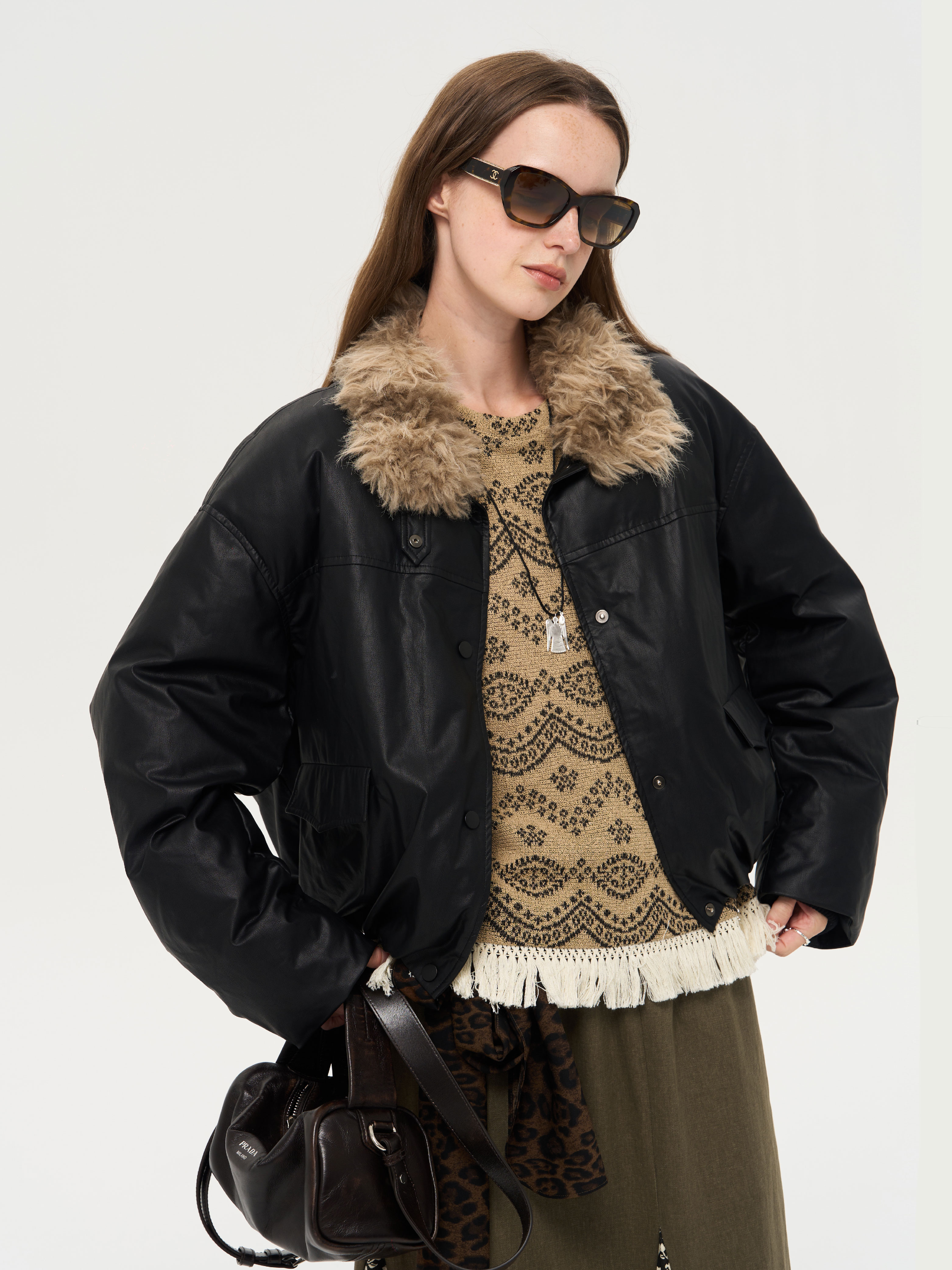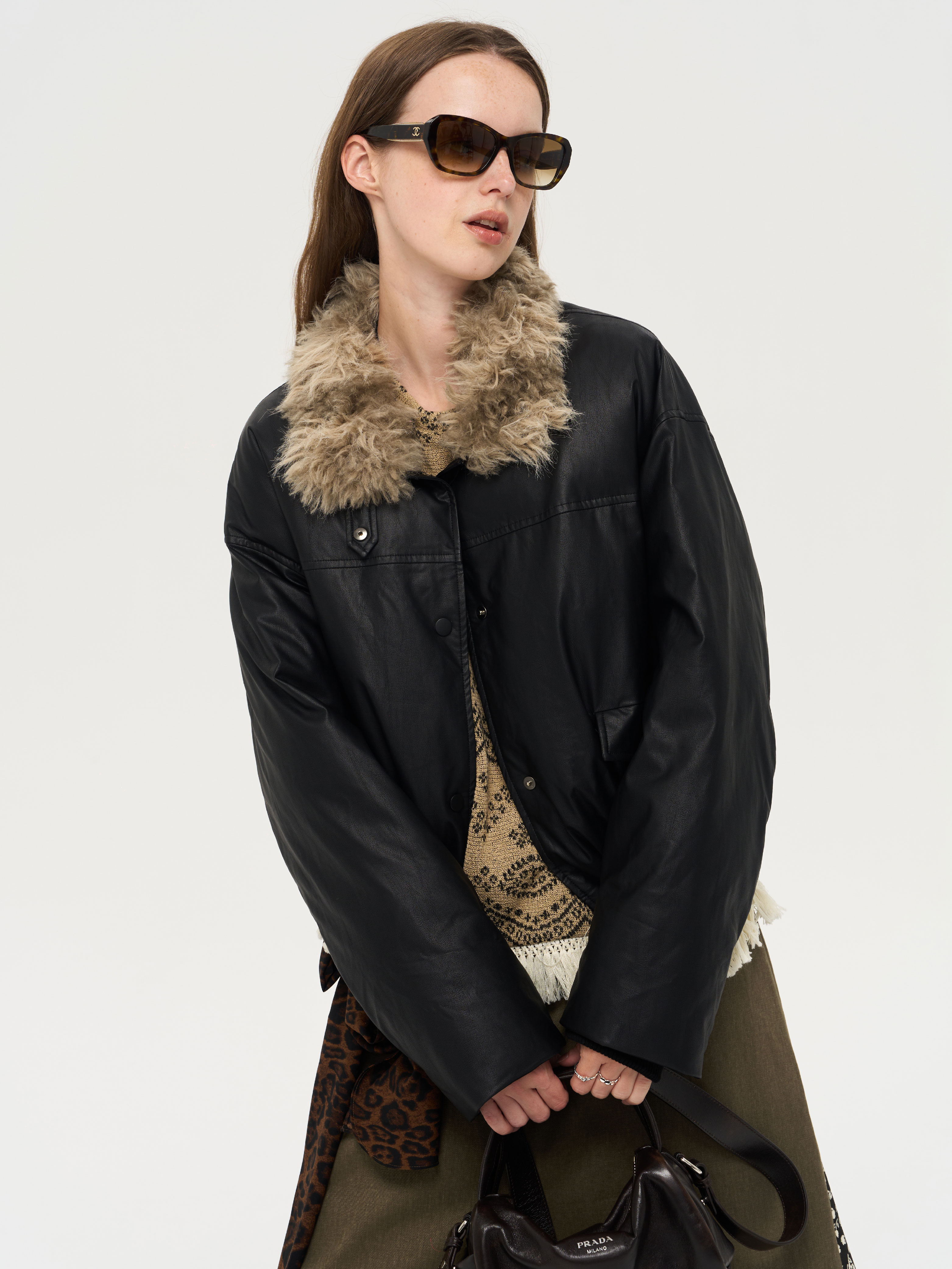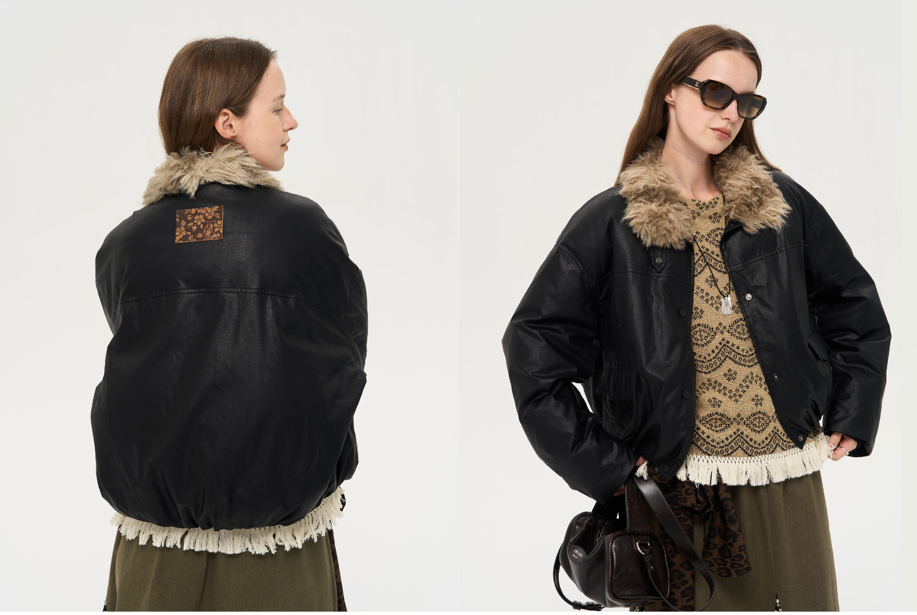 local tag/lt25awk39/冬日的肖像 温暖毛领环保皮夹克棉服