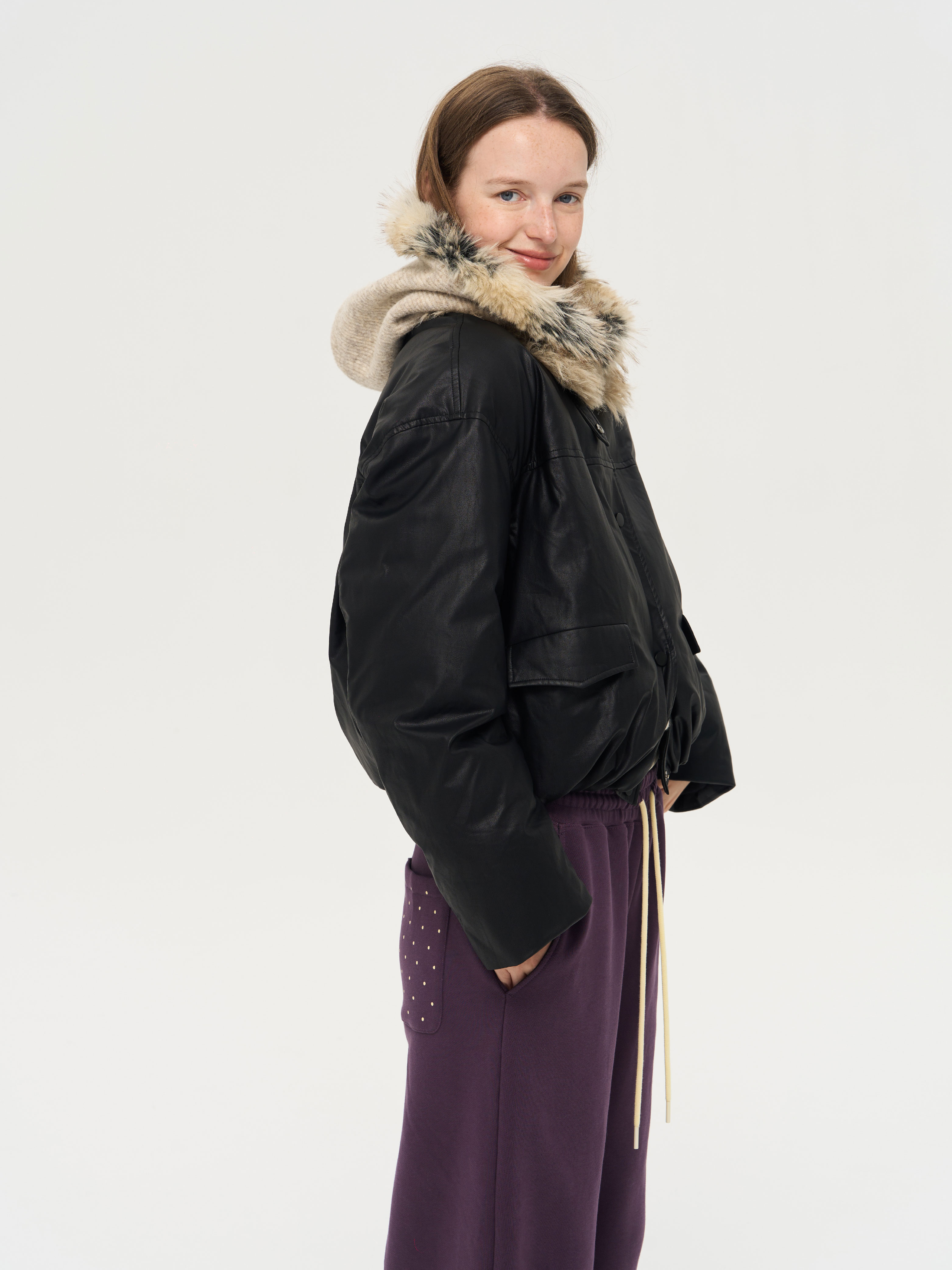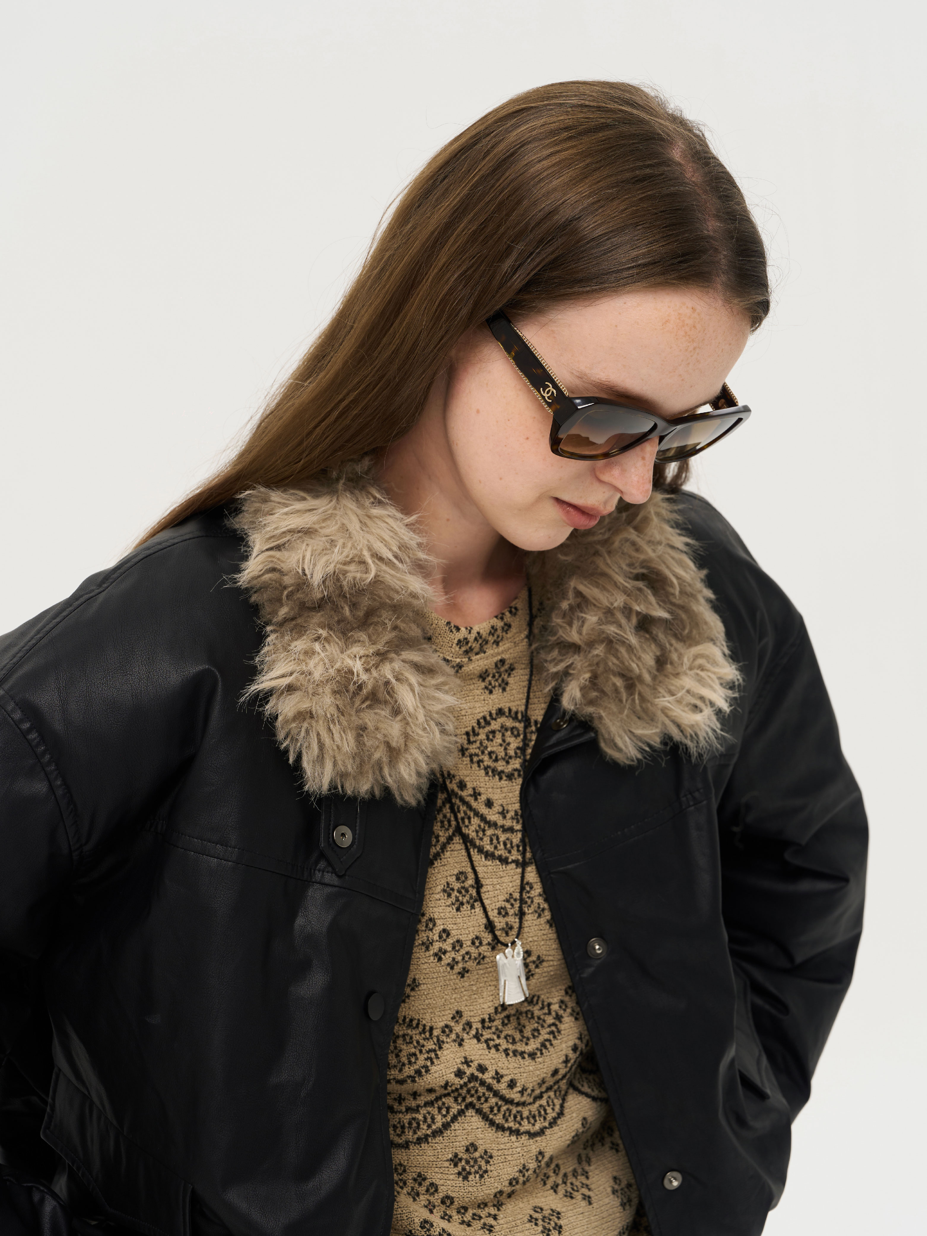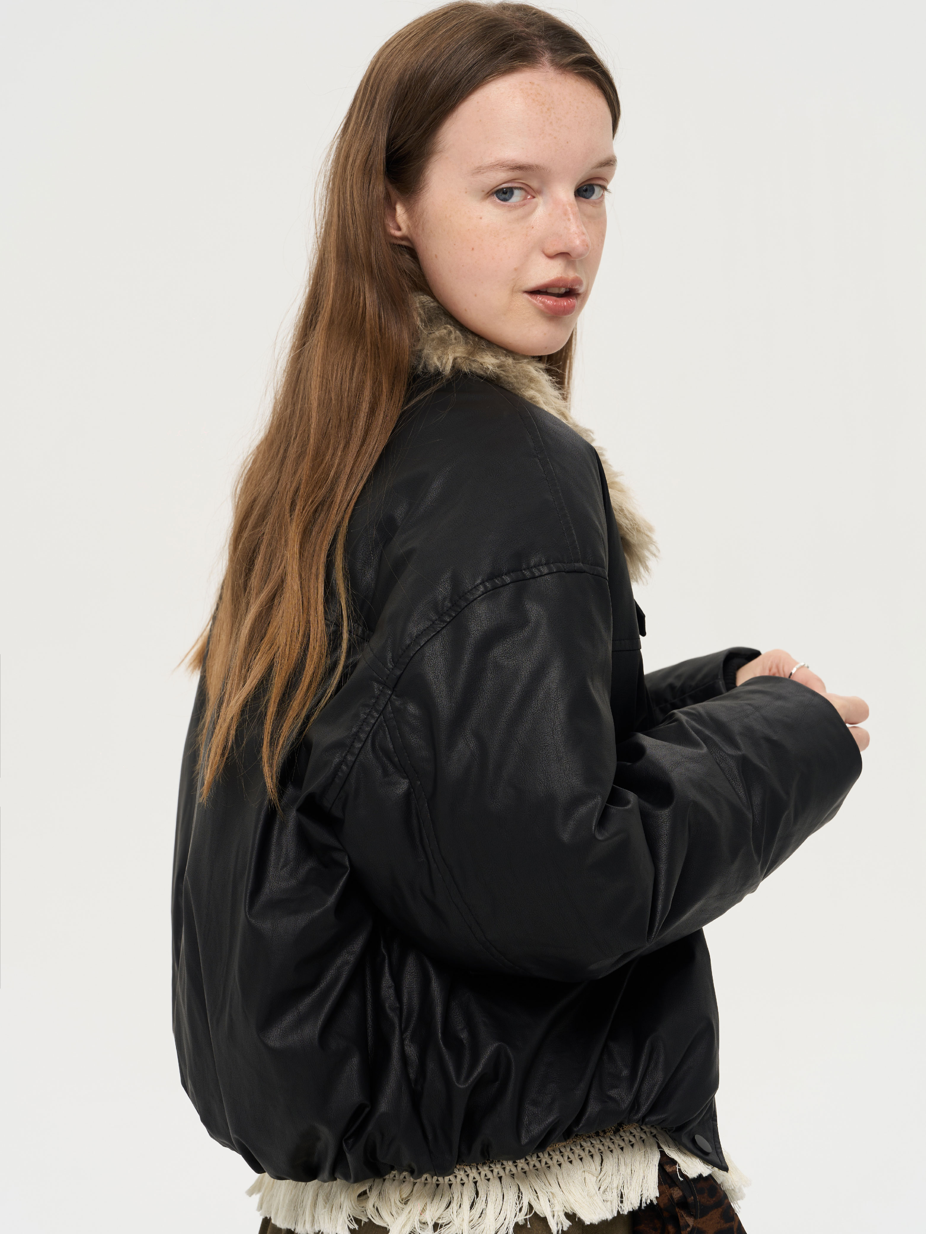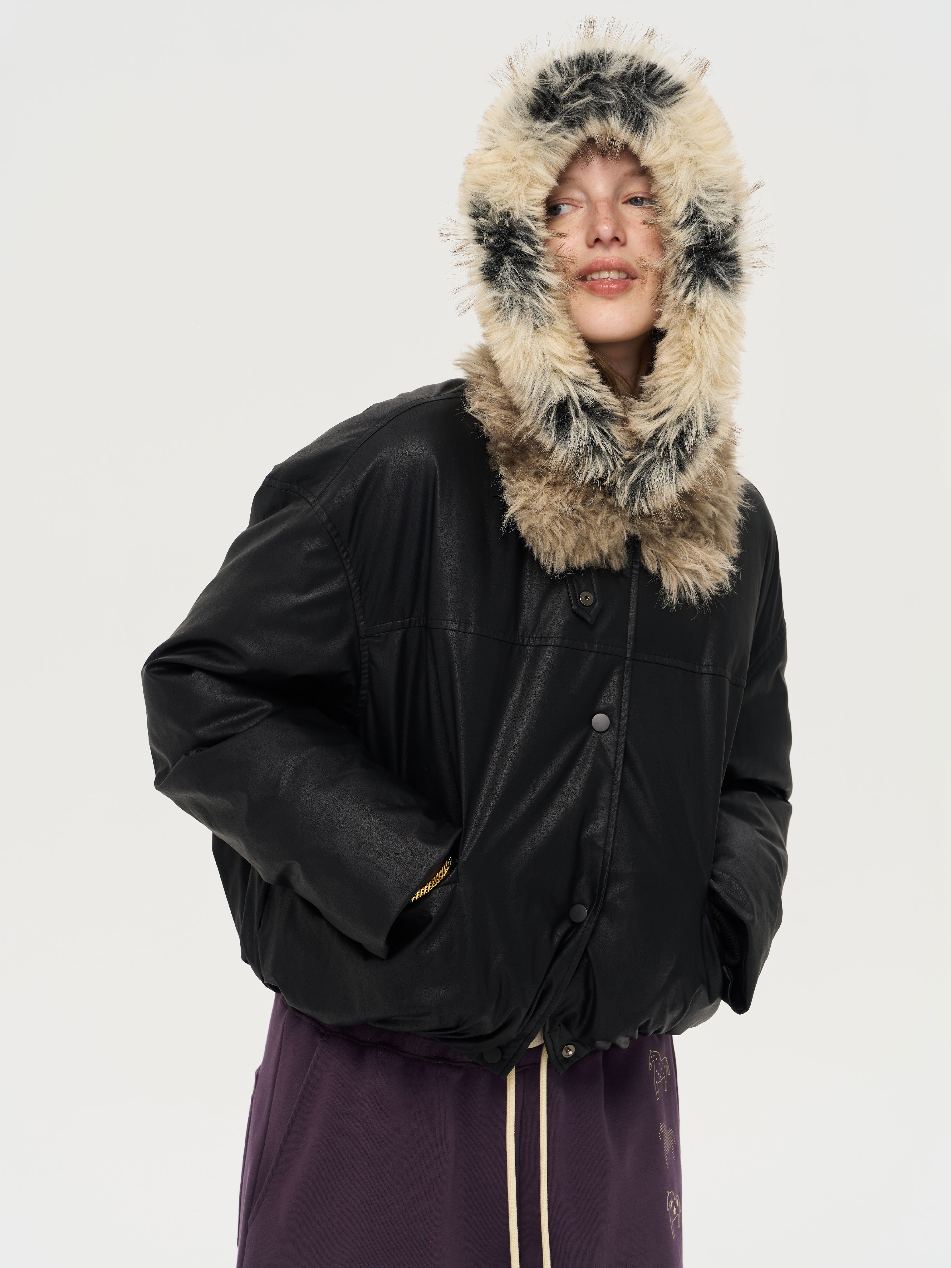 local tag/lt25awk39/冬日的肖像 温暖毛领环保皮夹克棉服