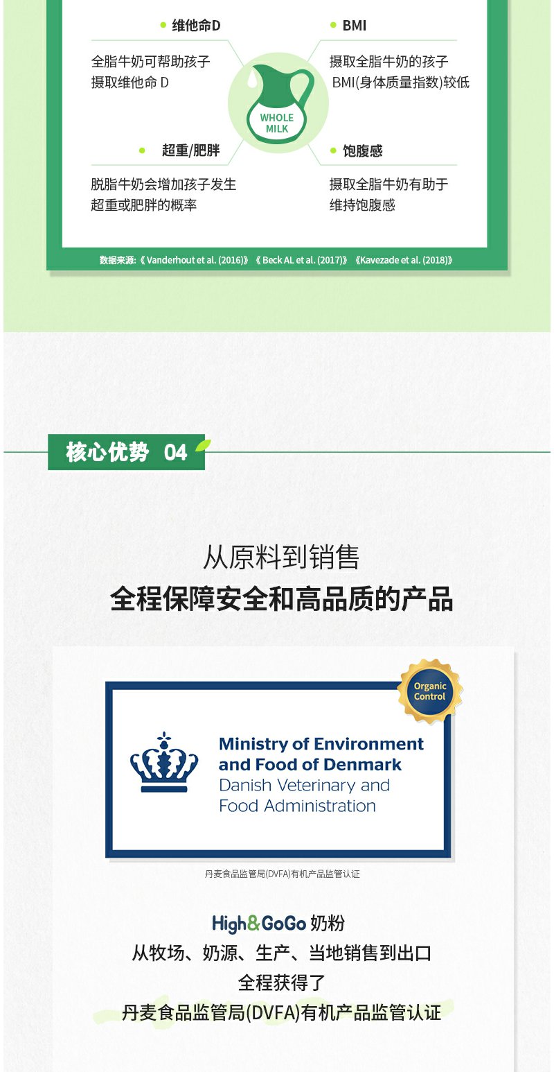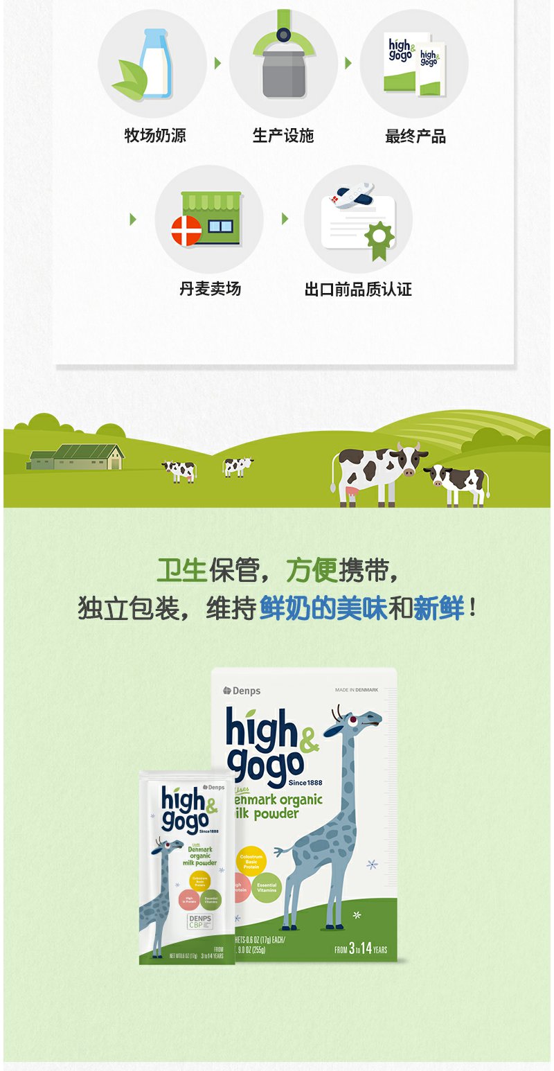 【成长奶粉】Denps丹普斯进口high&gogo长高高儿童学生成长CBP有机牛奶粉6盒装