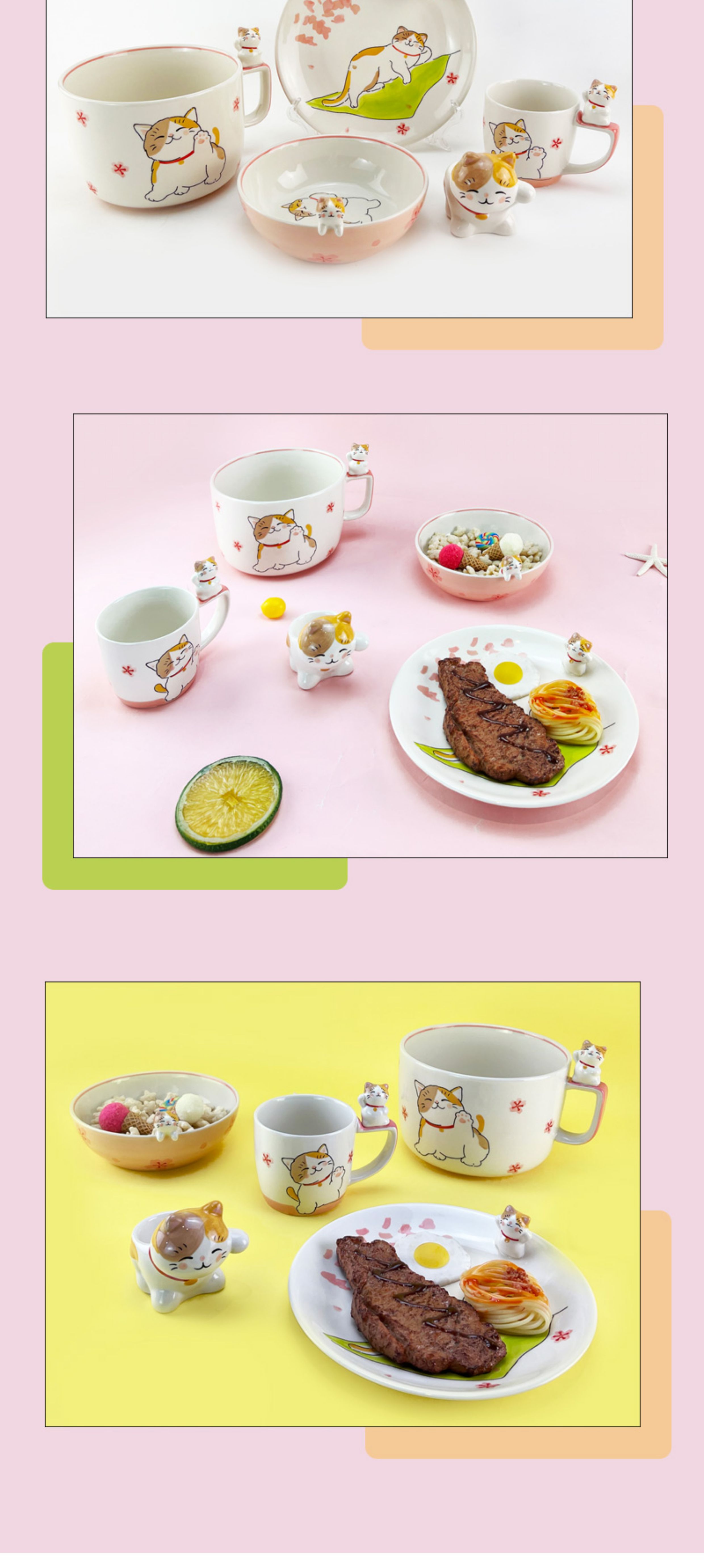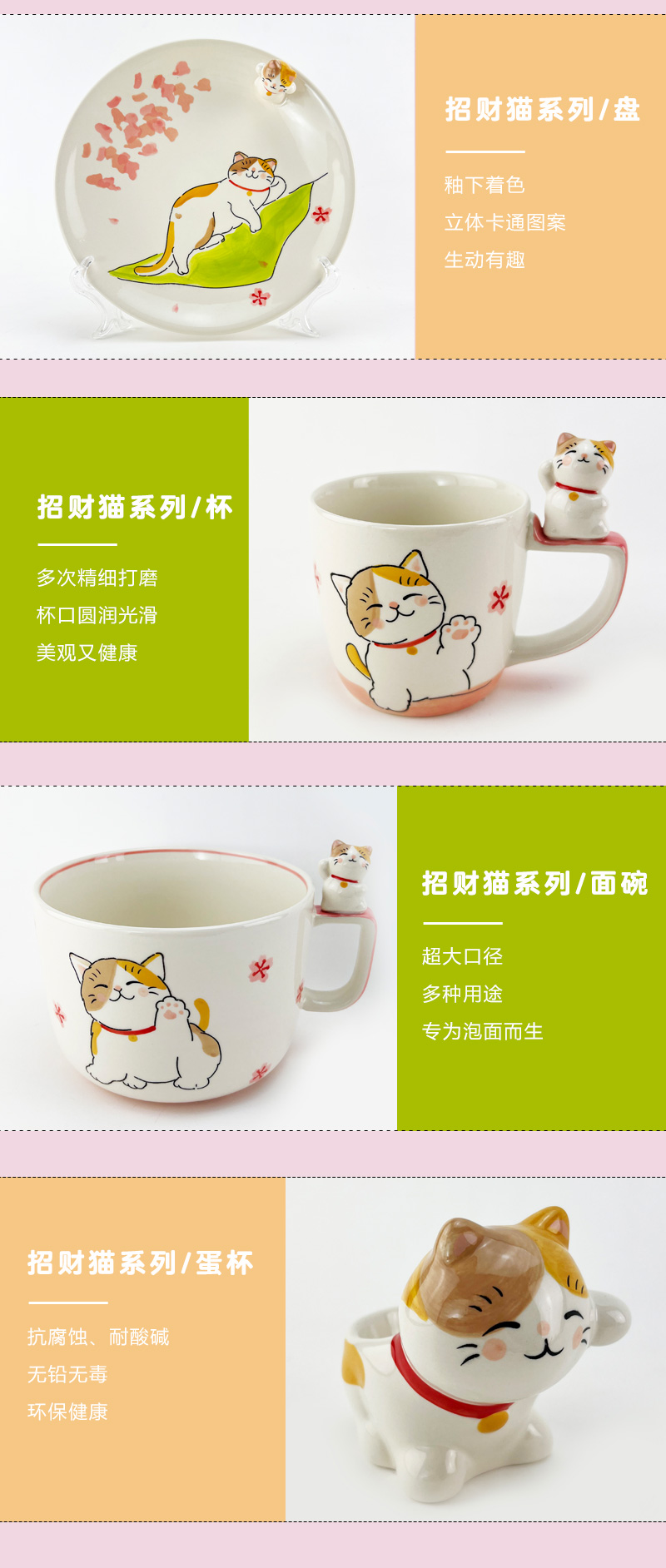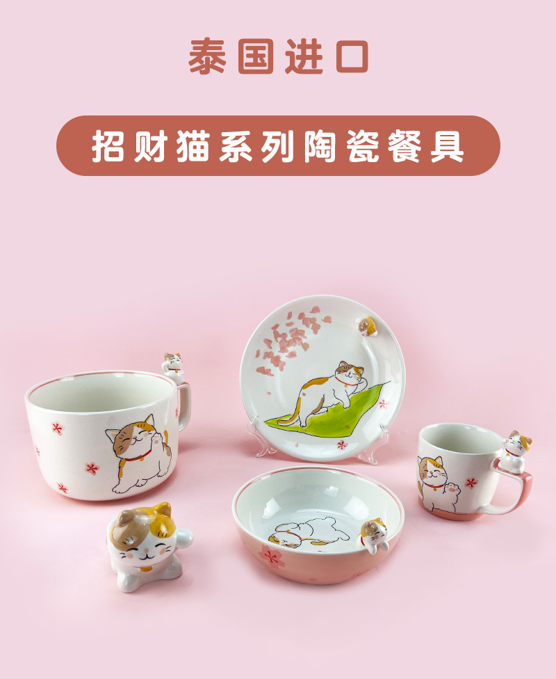 泰国进口儿童陶瓷餐具卡通立体招财猫水杯马克杯饭碗盘小朋友礼物