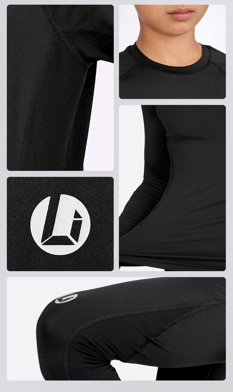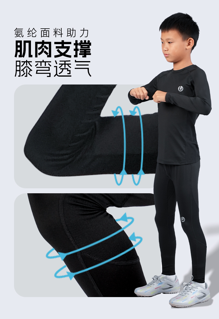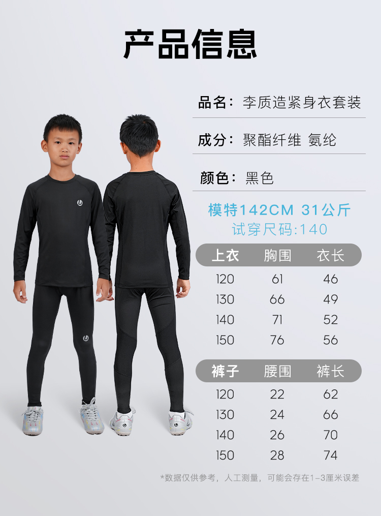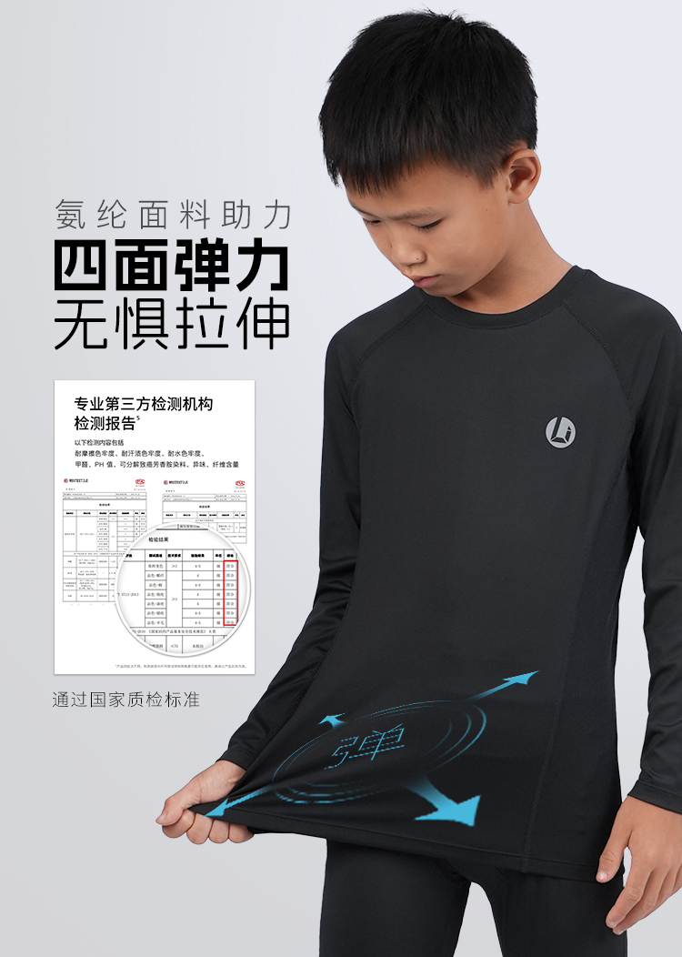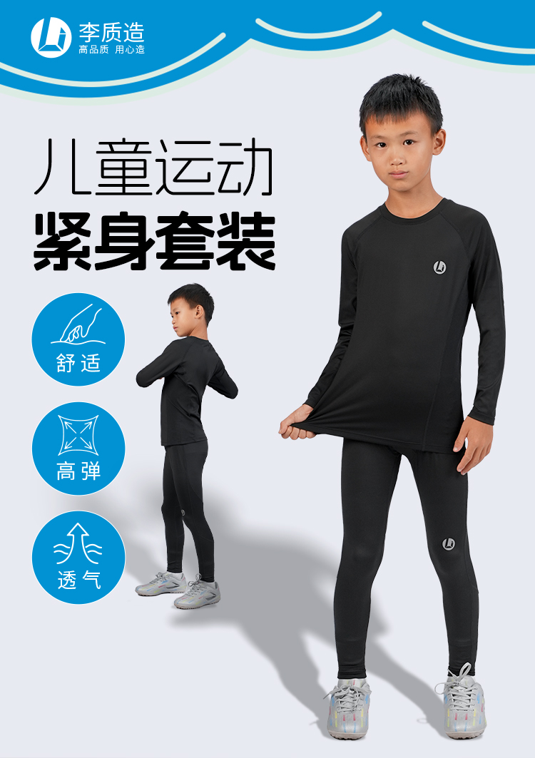 小李子李质造高弹透气运动训练打底衫儿童运动紧身衣紧身裤套装