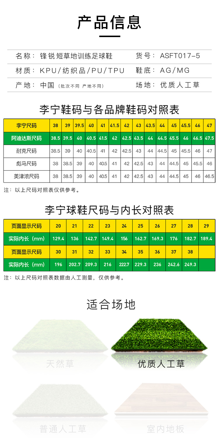 Lining/李宁蜂锐次顶AG/MG短钉短草地成人足球鞋男ASFT017-5
