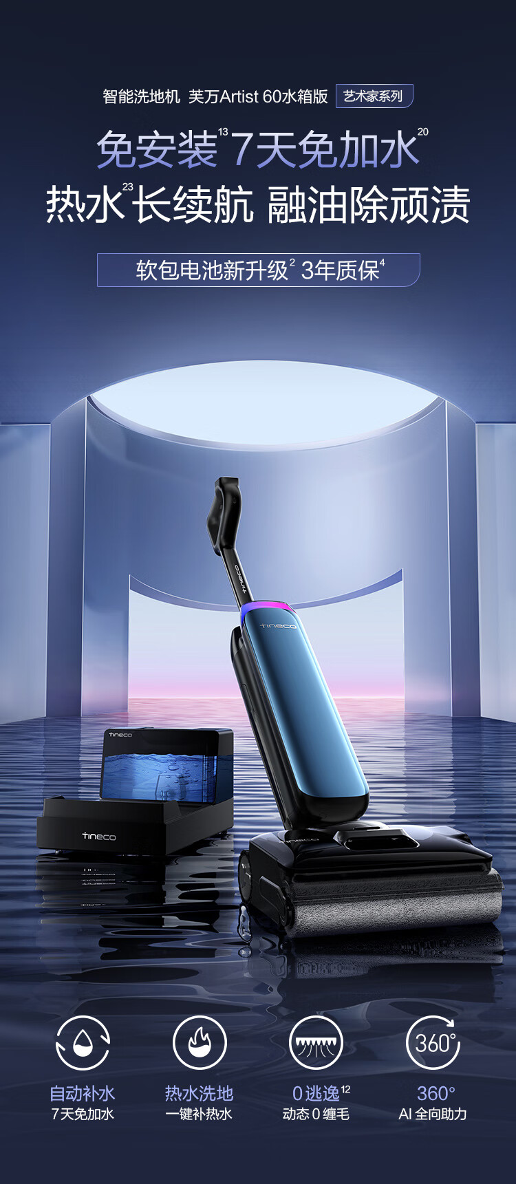 添可 艺术家A60洗地机 躺平0缠吸拖一体艺术家居家干净