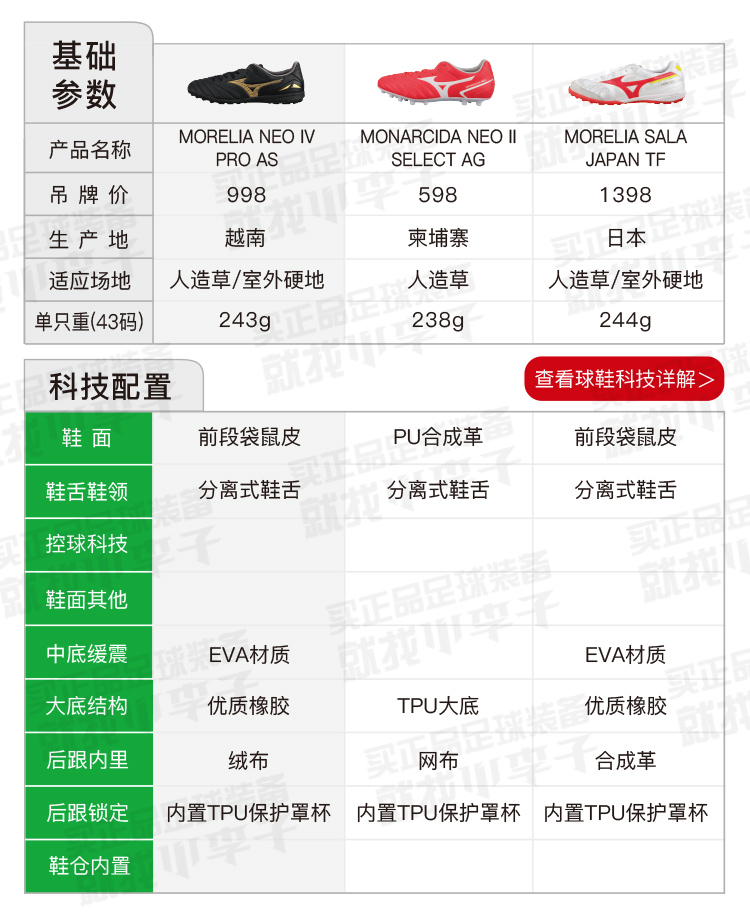 Mizuno/美津浓莫雷拉MORELIA NEO 4PRO次顶AS碎钉袋鼠皮成人足球鞋男P1GD233450