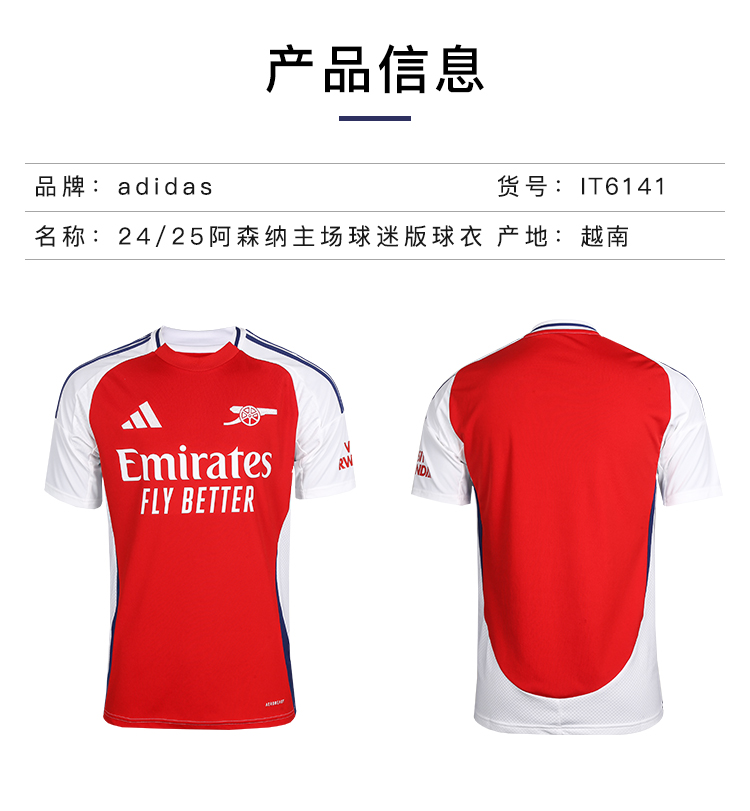 小李子ADIDAS阿迪达斯24/25赛季阿森纳主场球迷版球衣短袖成人男IT6141