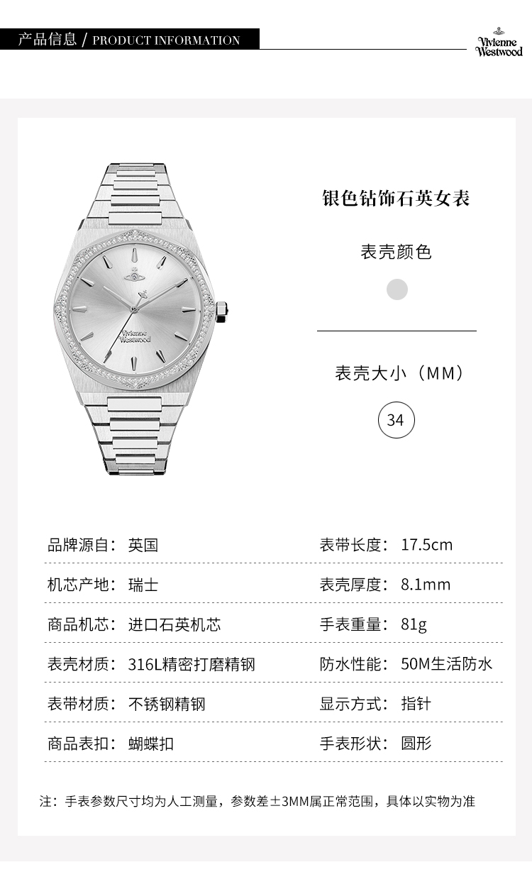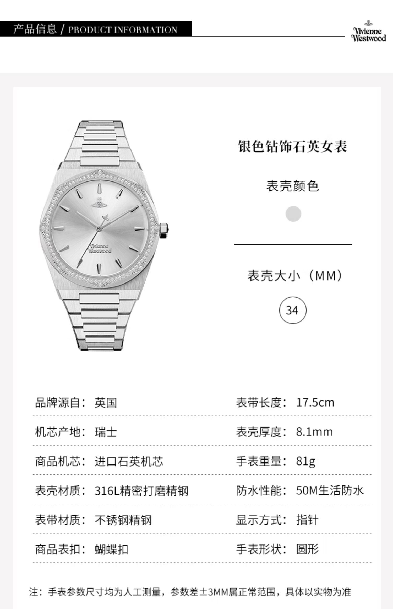 vivienne westwood/西太后机械手表白月光镶钻女表