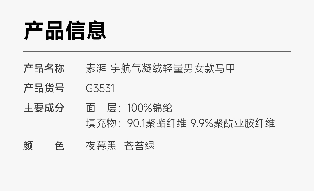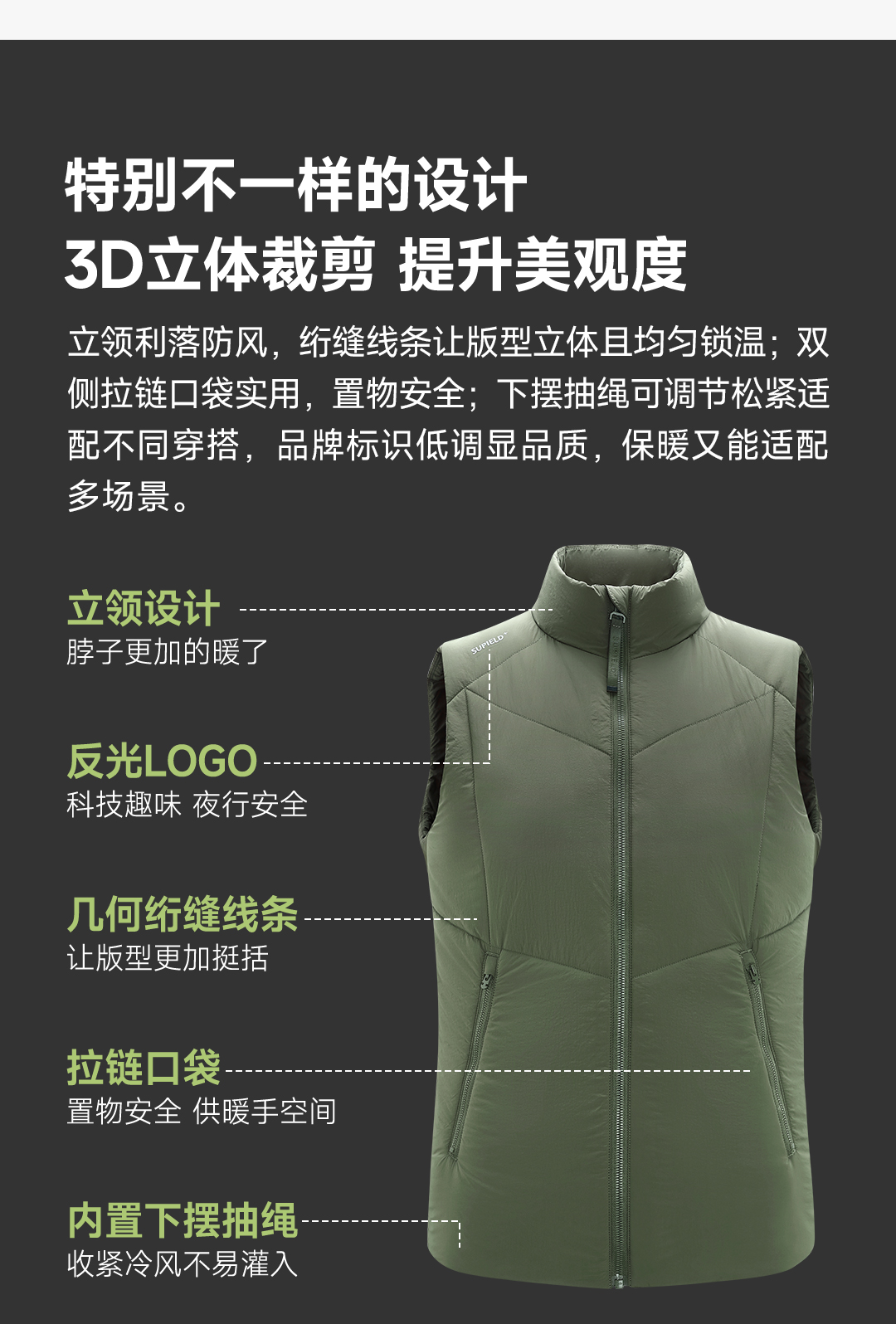 混知推荐【3D立体剪裁 轻量暖和】素湃宇航气凝绒轻薄马甲G3531 高蓬松度 轻盈柔软
