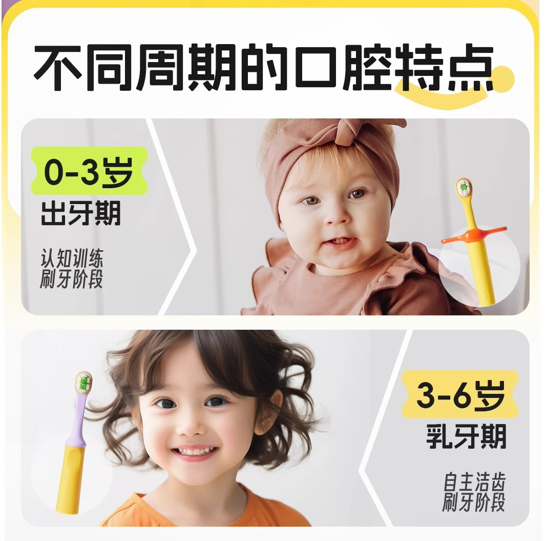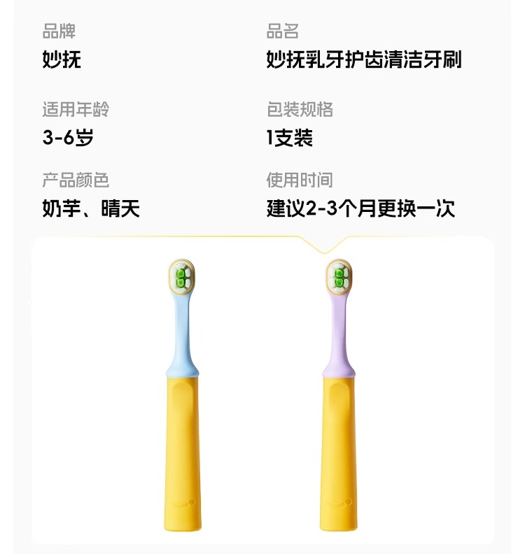 妙抚涨芽芽儿童专用乳牙3-6岁护齿清洁牙刷(单支装,颜色随机)