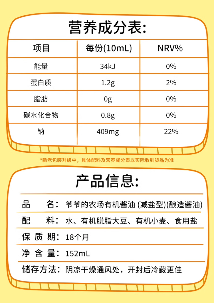 爷爷的农场有机酱油(减盐型)152ml