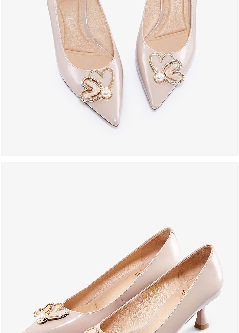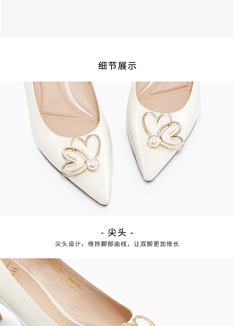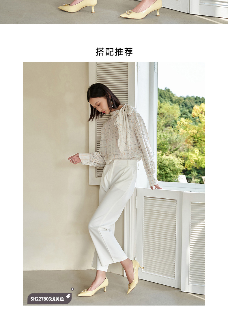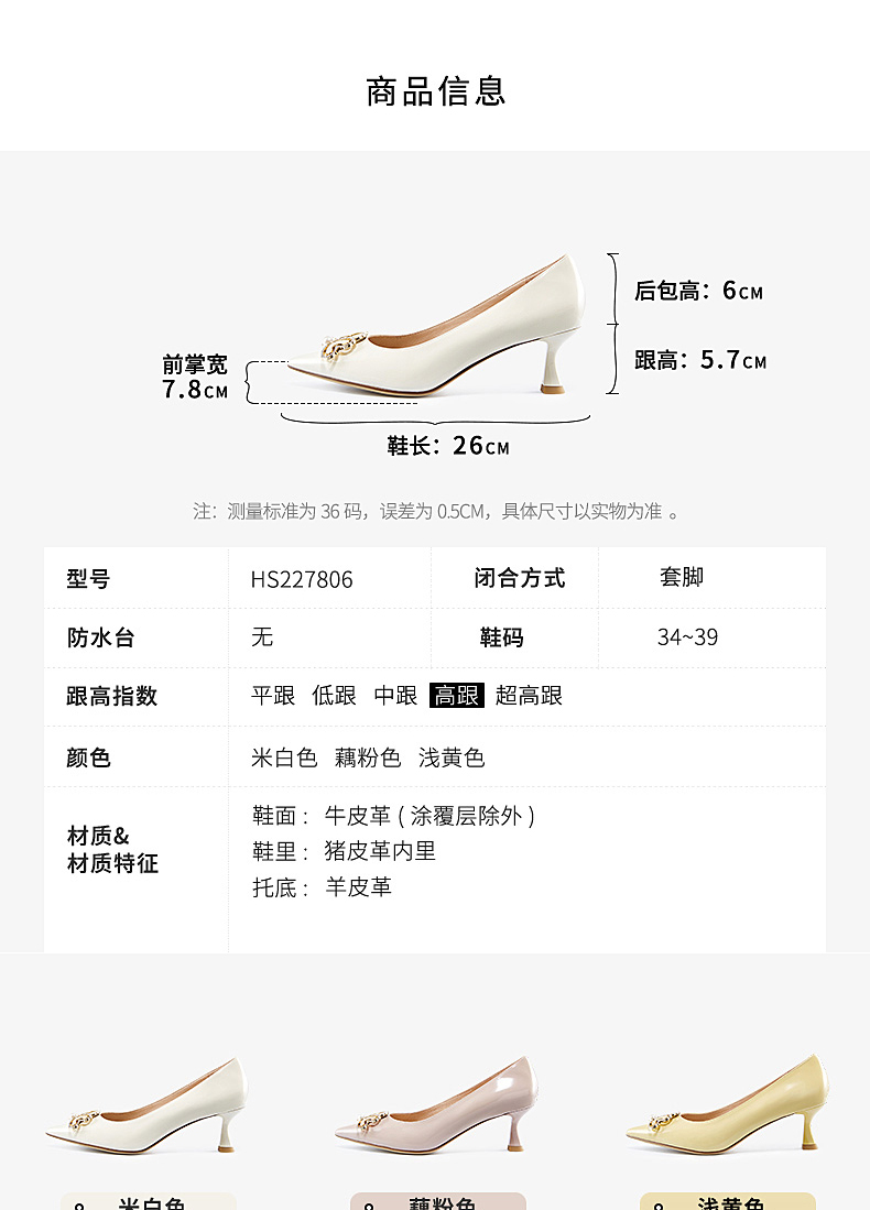 哈森女鞋2022春季新款欧美细跟尖头时装鞋约会饰扣浅口女单鞋HS227806