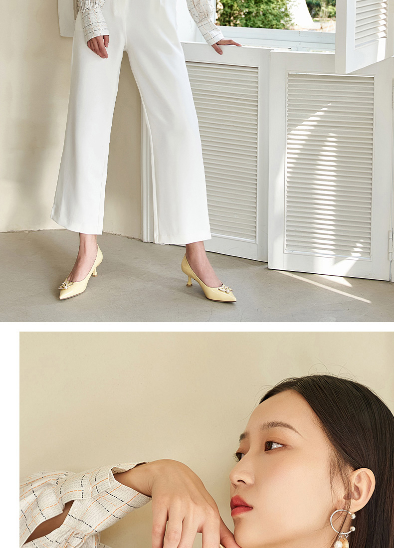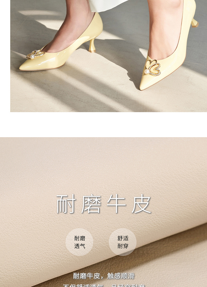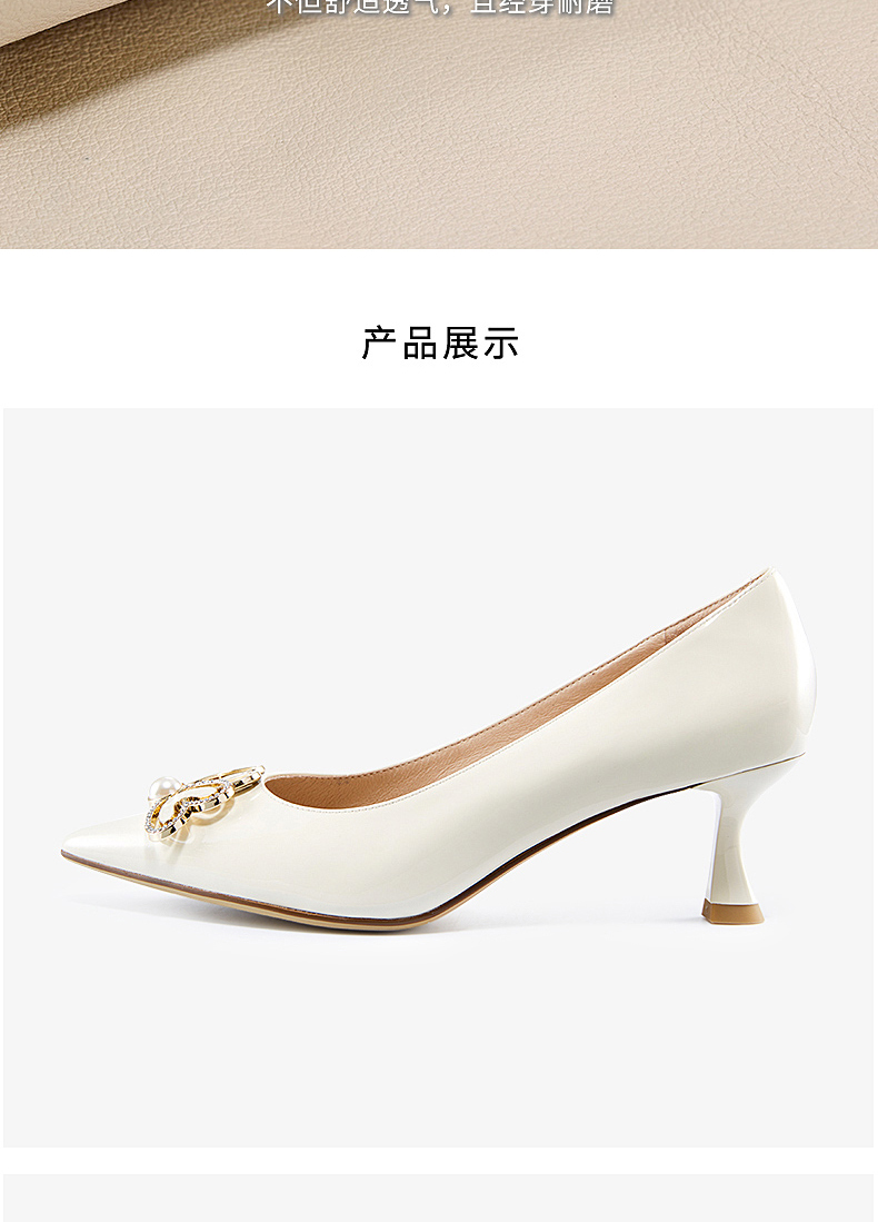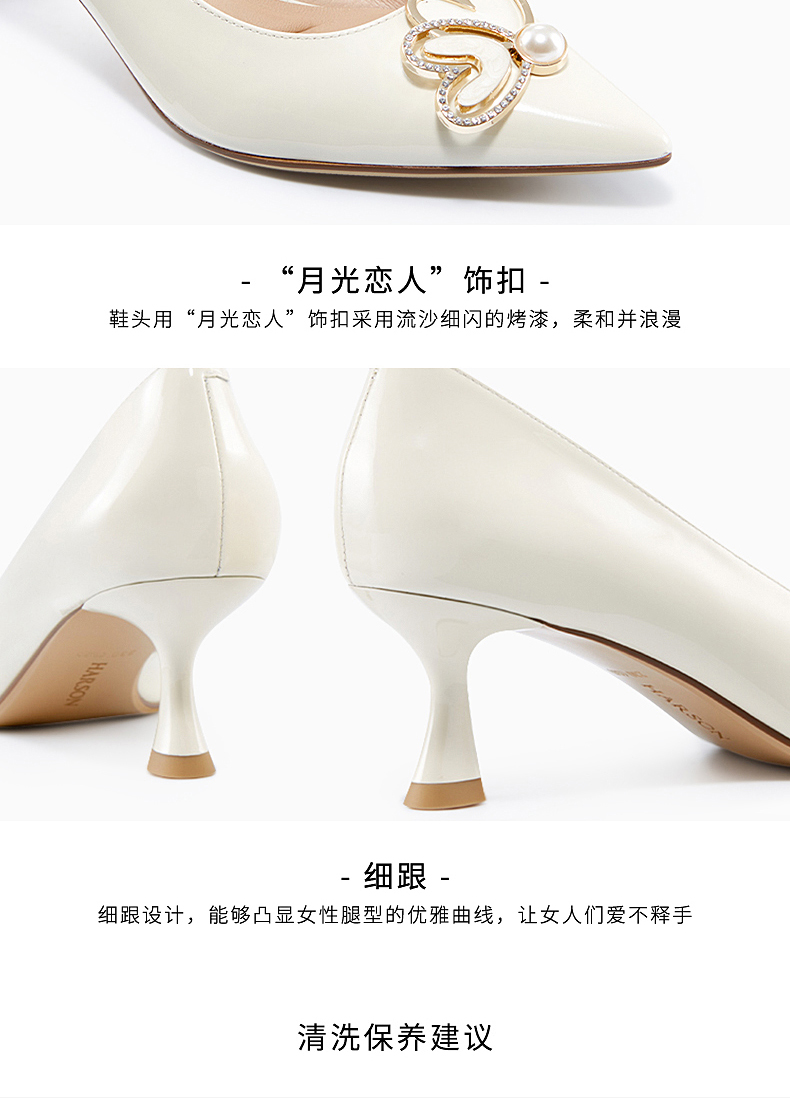 哈森女鞋2022春季新款欧美细跟尖头时装鞋约会饰扣浅口女单鞋HS227806