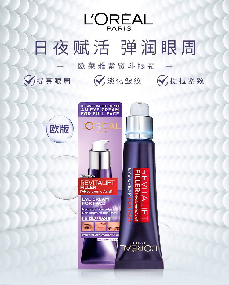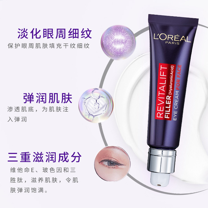 欧莱雅 紫熨斗眼霜玻尿酸保湿紧致淡化细纹 30ml