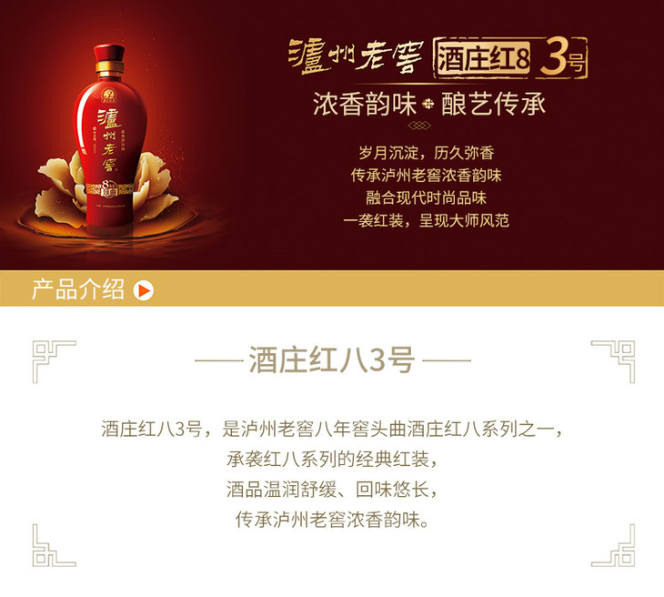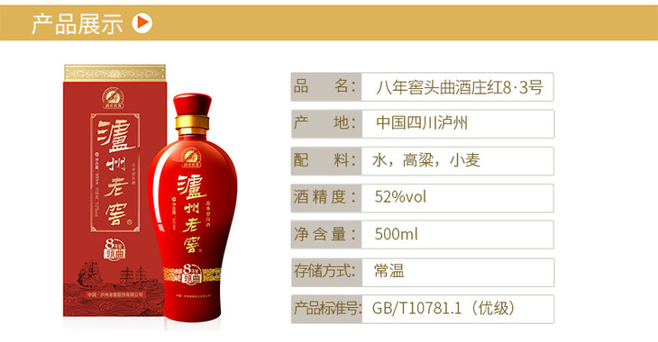52度 泸州老窖八年窖 头曲酒 酒庄红8.3号 500ml 泸州老窖官方旗舰店