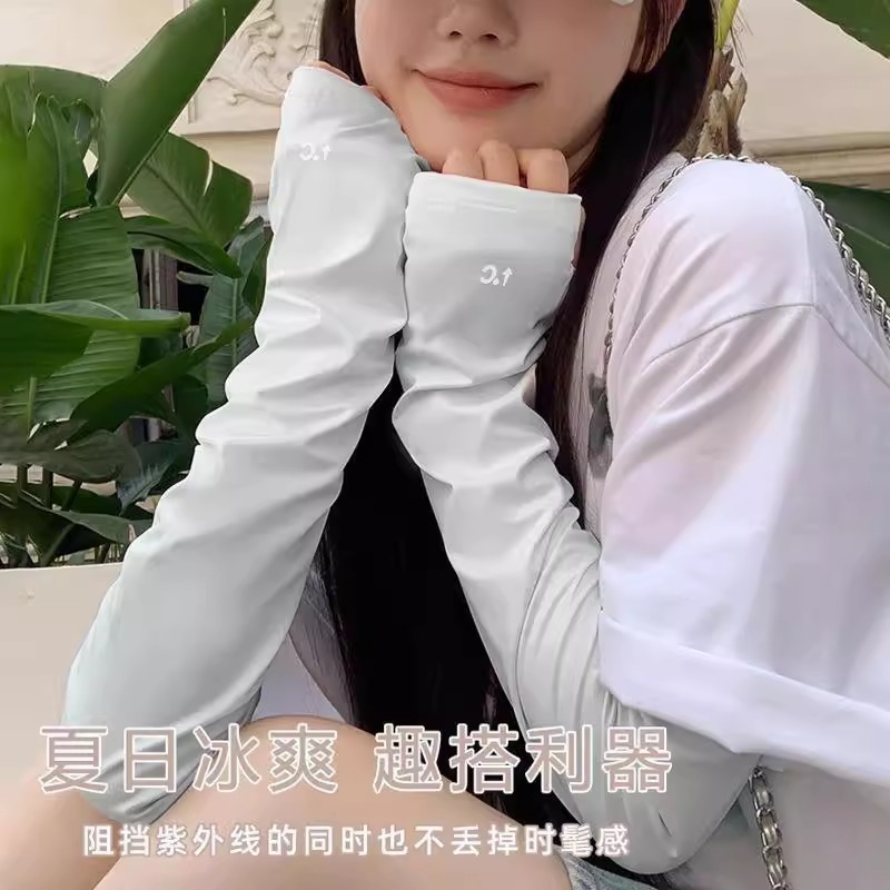 2025爆款宽松冰丝袖套℃百搭时尚防晒冰袖夏女骑行手袖休闲风防紫