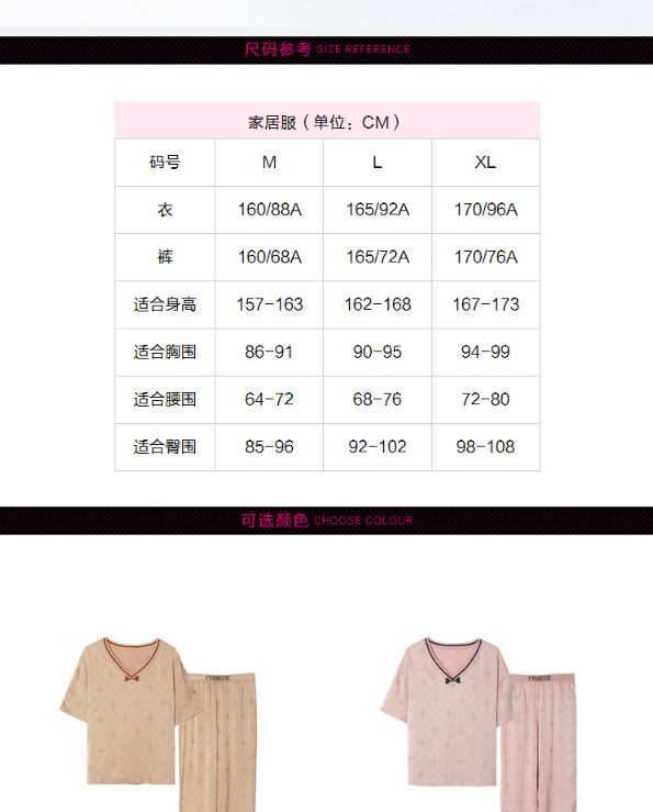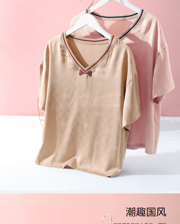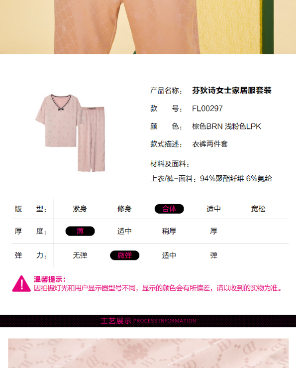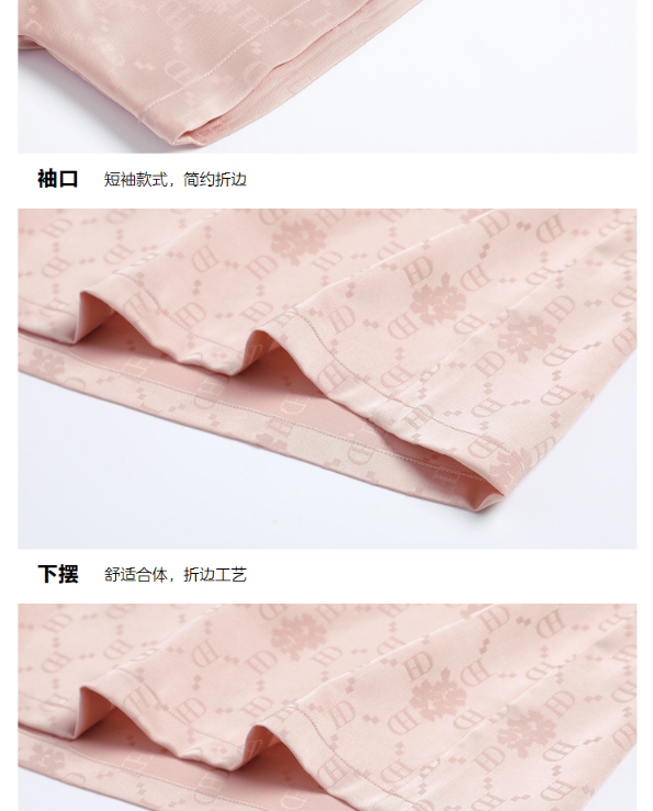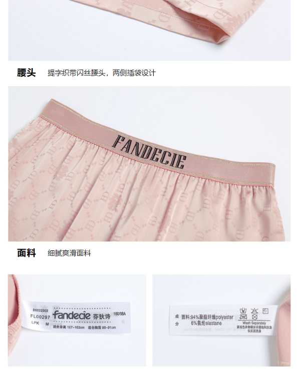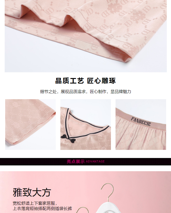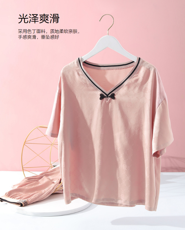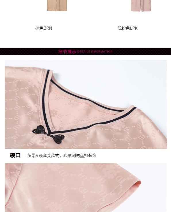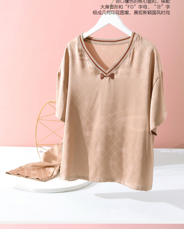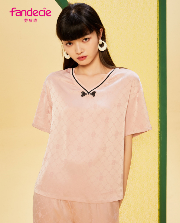 芬狄诗春夏国风印花睡衣女V领色丁薄款家居服套装FL00297