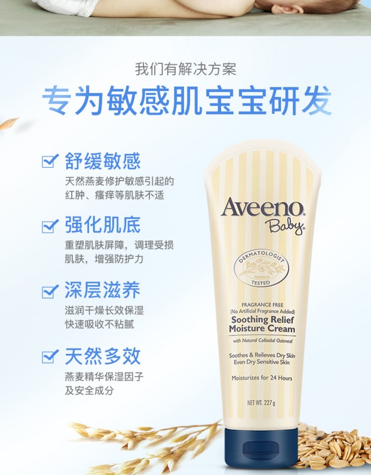 云优选【Aveeno艾维诺】 天然婴儿燕舒缓柔嫩润肤乳227g